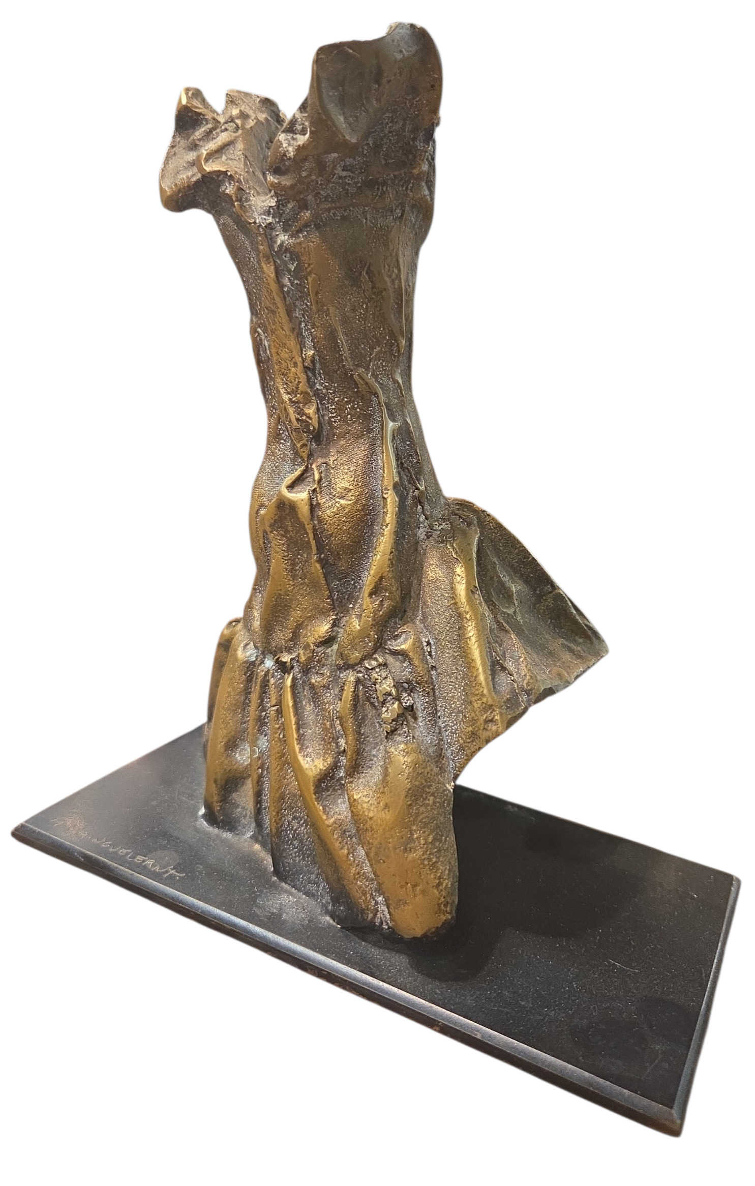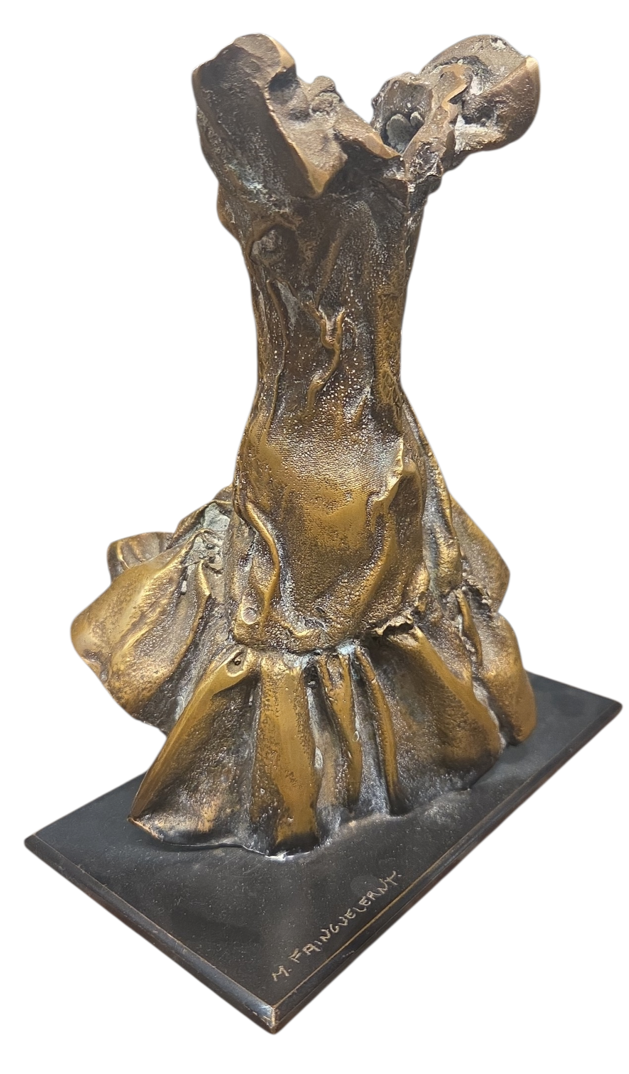 Magnífica escultura do artista plástico Mauro Fainguelernt. A obra apresenta a estética característica do autor: formas fluidas, alongadas e uma expressividade que domina o espaço. Uma peça indispensável para colecionadores de arte contemporânea brasileira que buscam elegância e investimento.