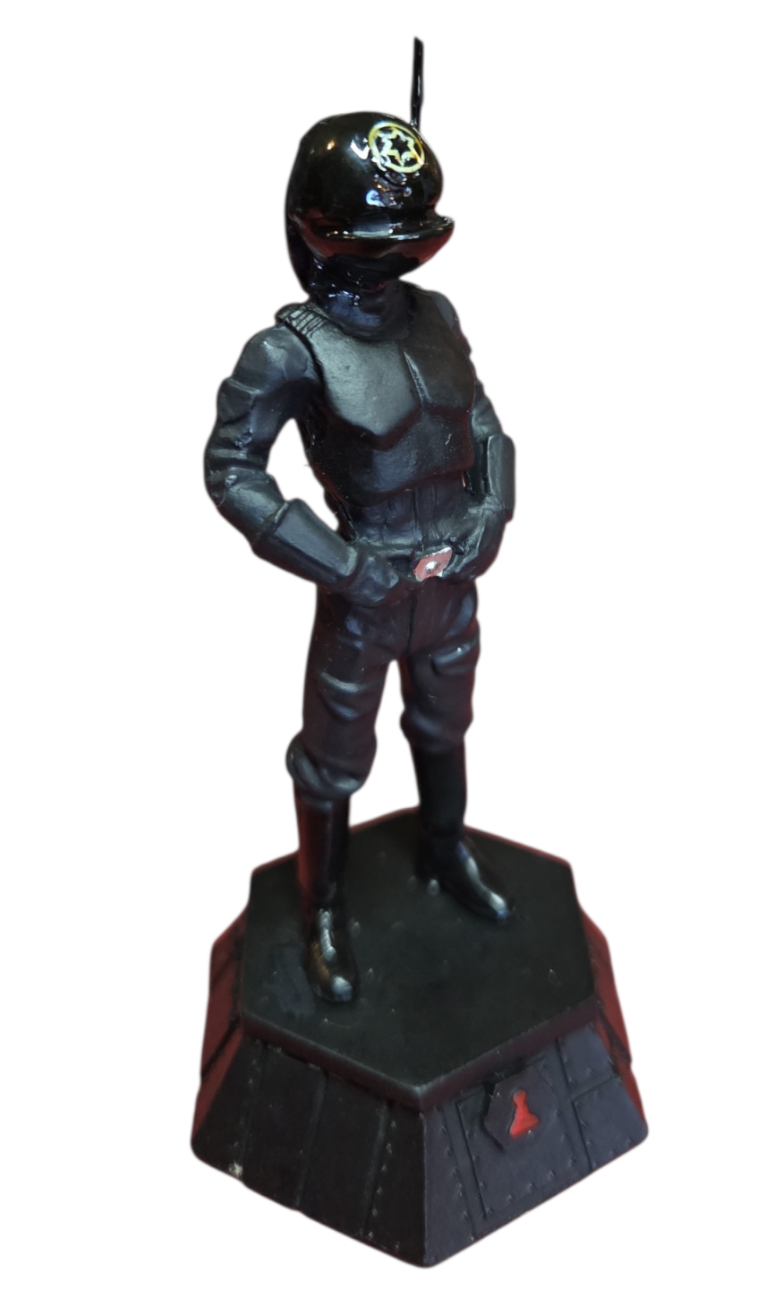 Adicione uma peça de precisão e autoridade imperial à sua coleção com esta estátua do Imperial Gunner. Esta figura detalhada faz parte da prestigiada coleção de xadrez de Star Wars, ocupando a posição estratégica de Peão Negro (Black Pawn).