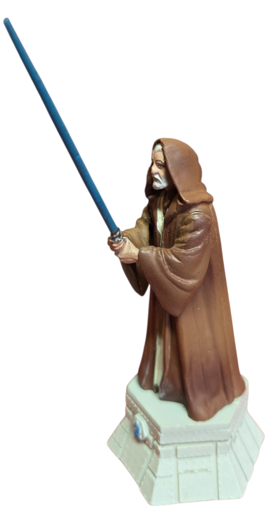 Adicione a sabedoria do lendário "Old Ben" à sua coleção com esta figura detalhada de Obi-Wan Kenobi. Esta peça faz parte da celebrada coleção de xadrez de Star Wars da DeAgostini, representando o Cavaleiro Branco (White Knight).