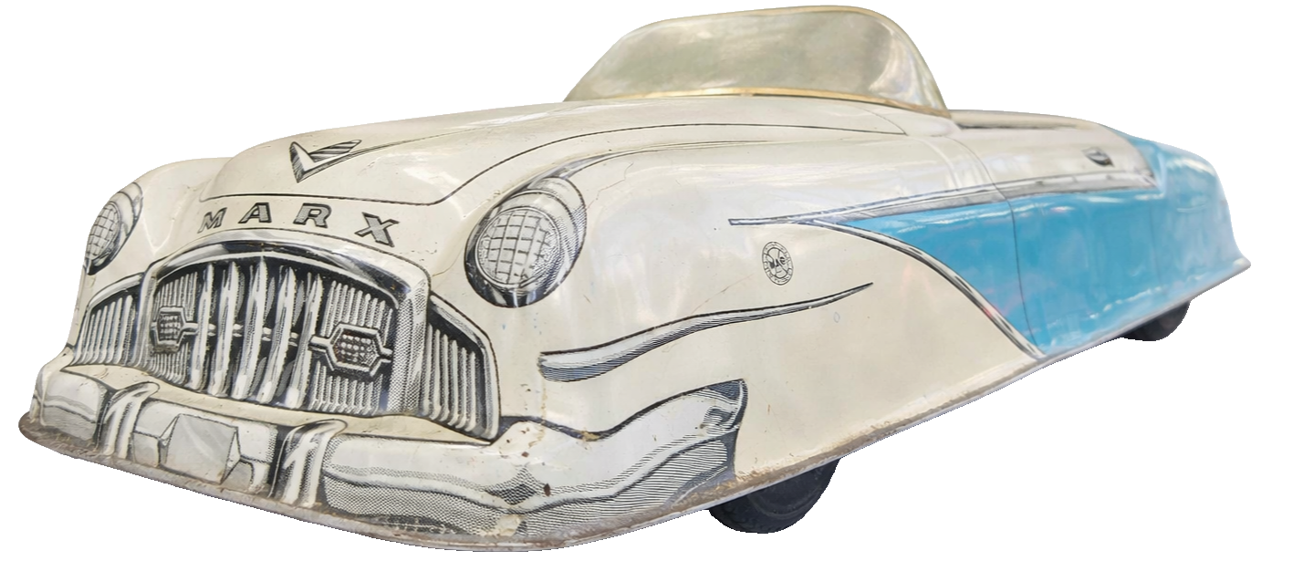 Autêntico carrinho americano da renomada fabricante Marx, produzido entre as décadas de 1940 e 1950. Peça original de época, representando fielmente o design e o charme dos brinquedos metálicos do pós-guerra.