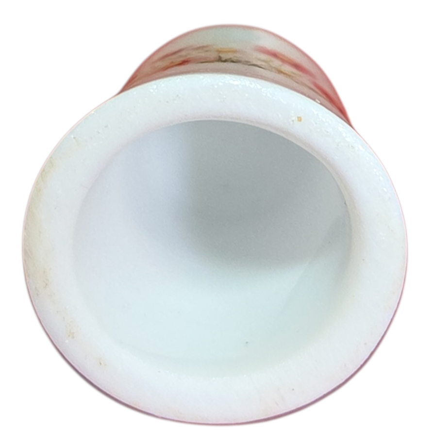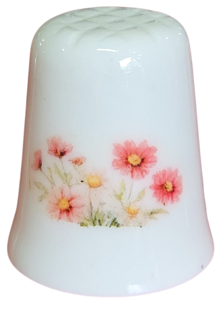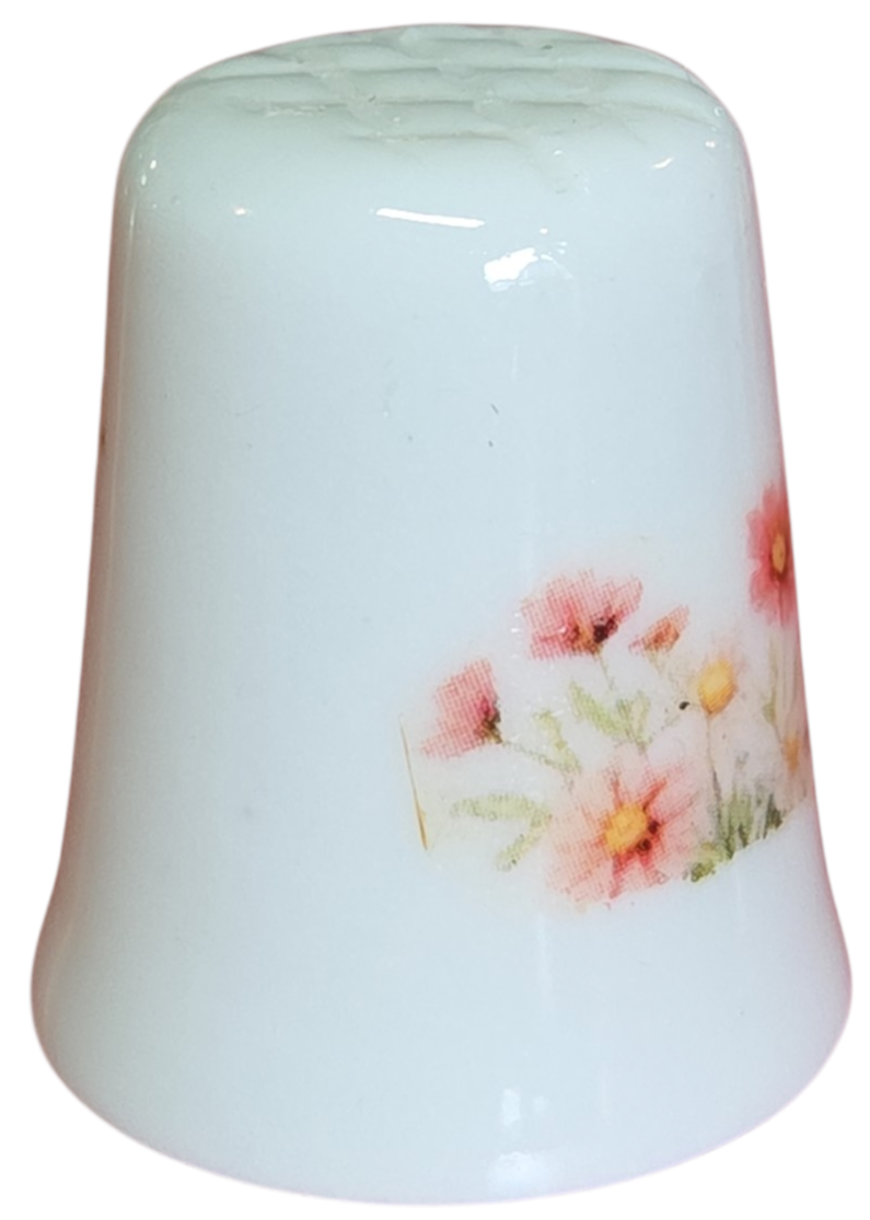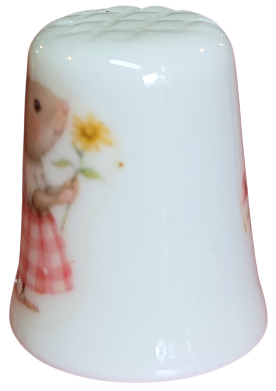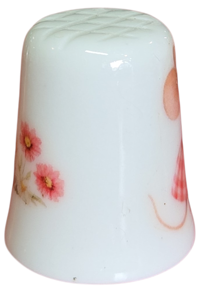 Este delicado dedal colecionável em porcelana branca apresenta uma temática romântica e bucólica. Com um acabamento acetinado e ilustrações em tons pastéis, é uma peça charmosa que se destaca pela delicadeza dos detalhes.