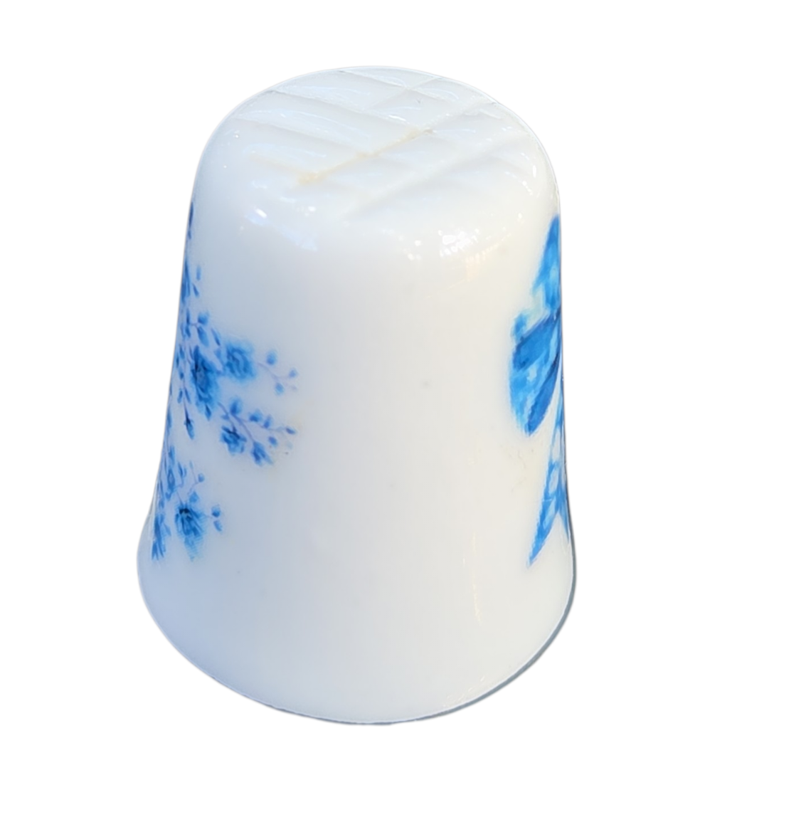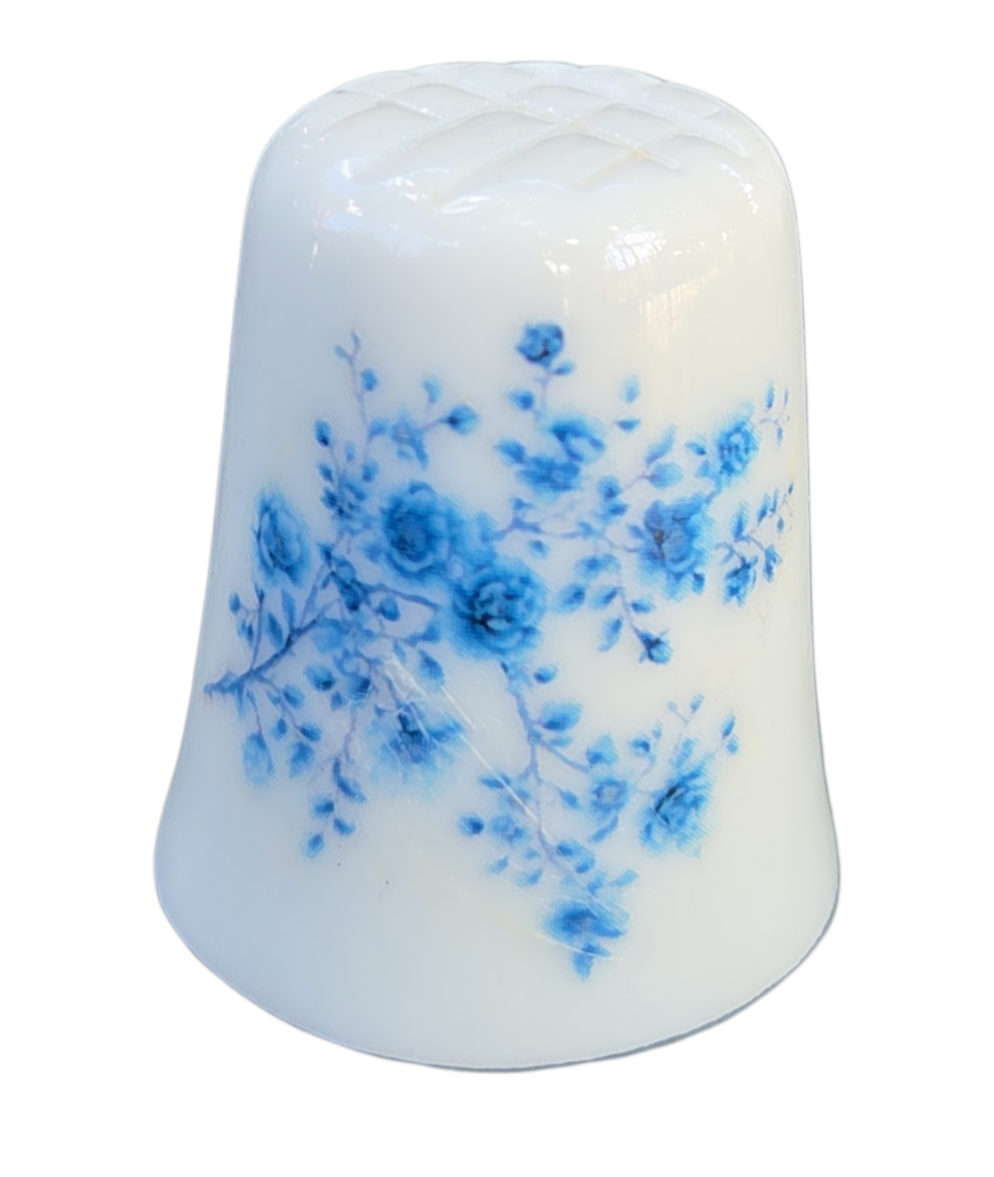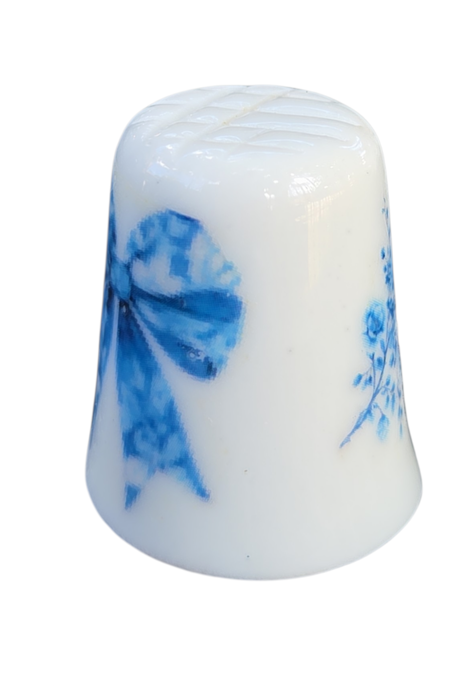 Esta peça destaca-se pela delicadeza de seus detalhes decorativos: de um lado, um rico arranjo de mini flores em tons de azul; do outro, um laço ornamental com estampa interna floral, conferindo elegância e simetria à peça.