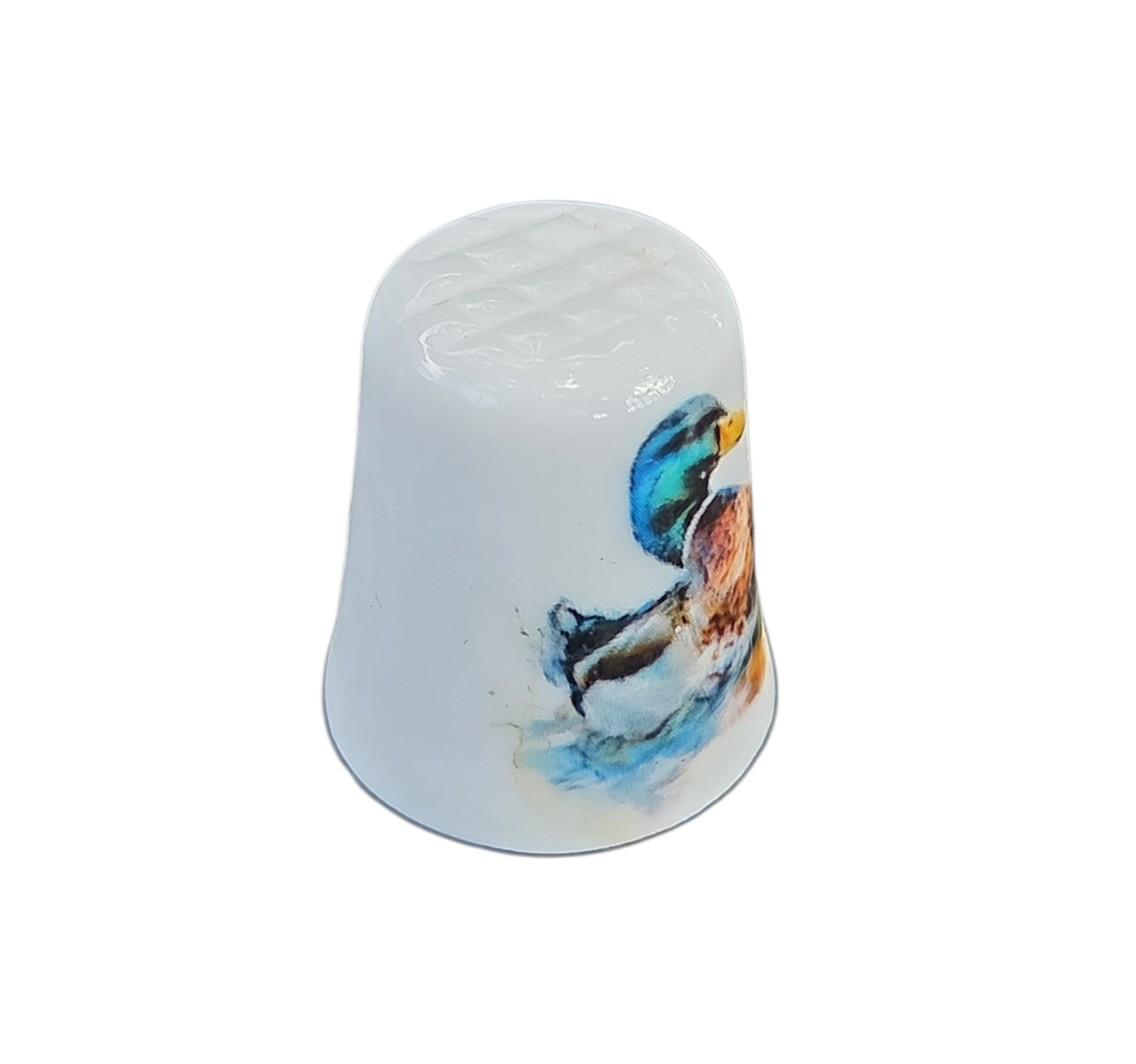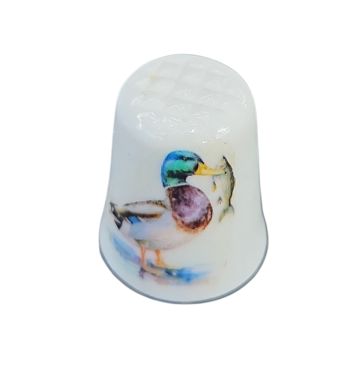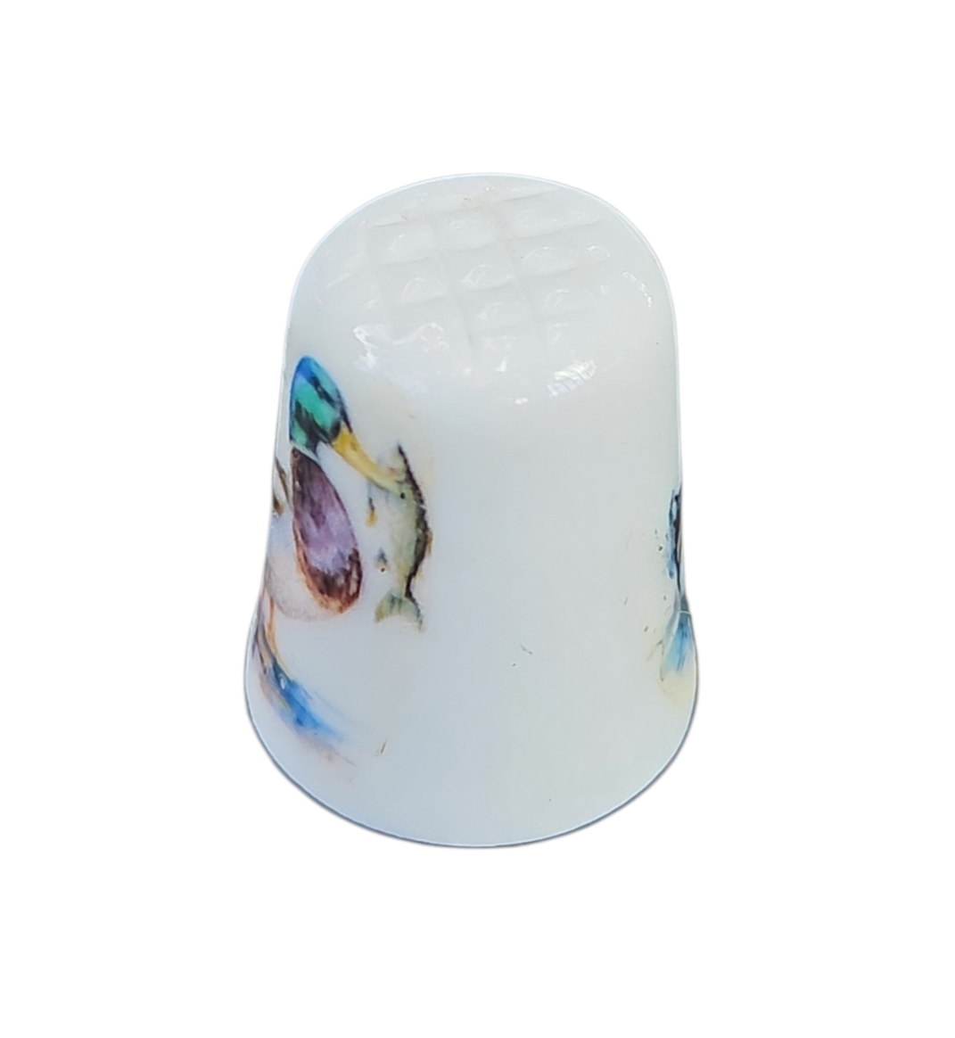 Este elegante dedal é uma peça indispensável para colecionadores de porcelana e entusiastas de temática ornitológica. Confeccionado em porcelana branca de alta qualidade, apresenta um acabamento vitrificado que realça a delicadeza do material e a vivacidade das cores.