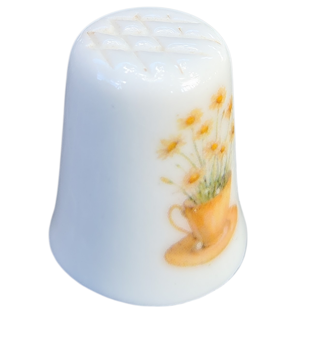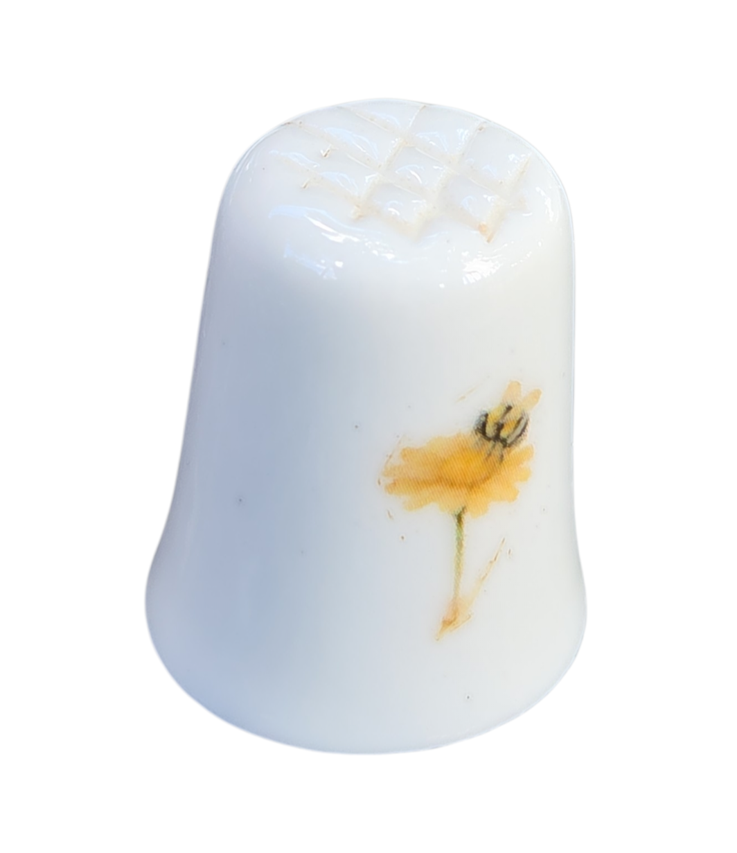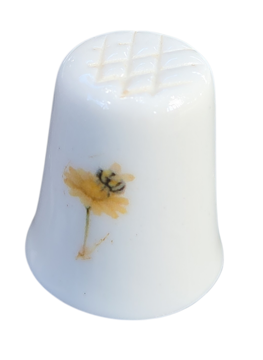 O design destaca-se pela composição harmoniosa: de um lado, um gracioso arranjo de camomilas (margaridas) brotando de uma xícara de chá em tons quentes; do outro, a ilustração de uma abelha polinizando uma flor, simbolizando a natureza em equilíbrio.