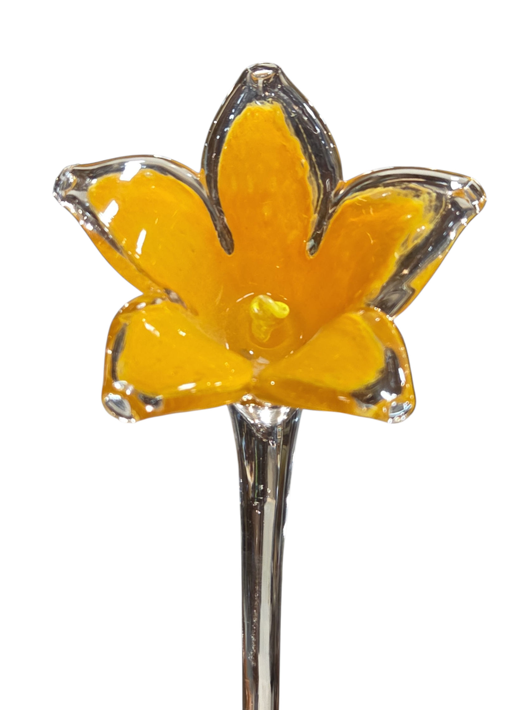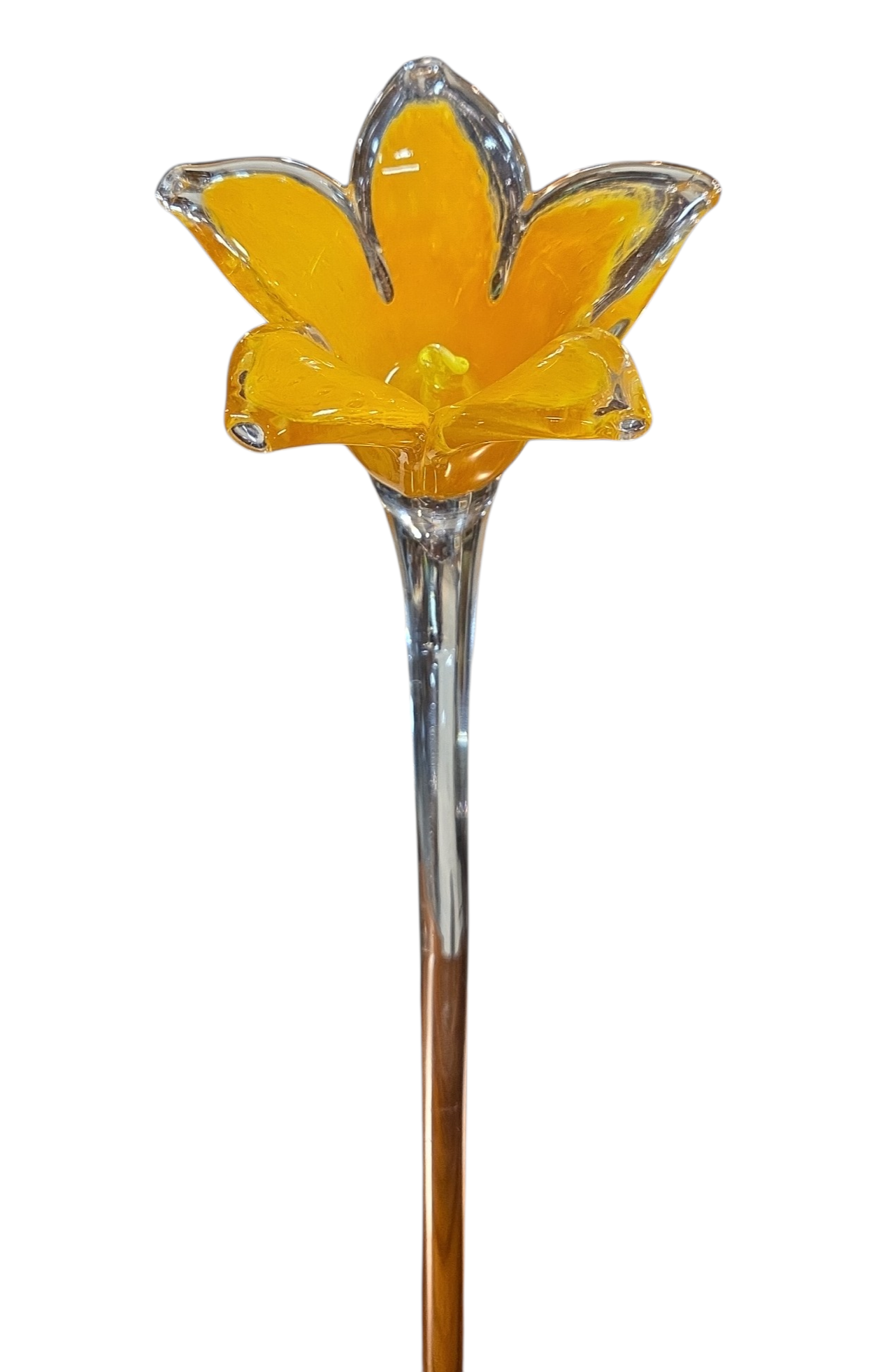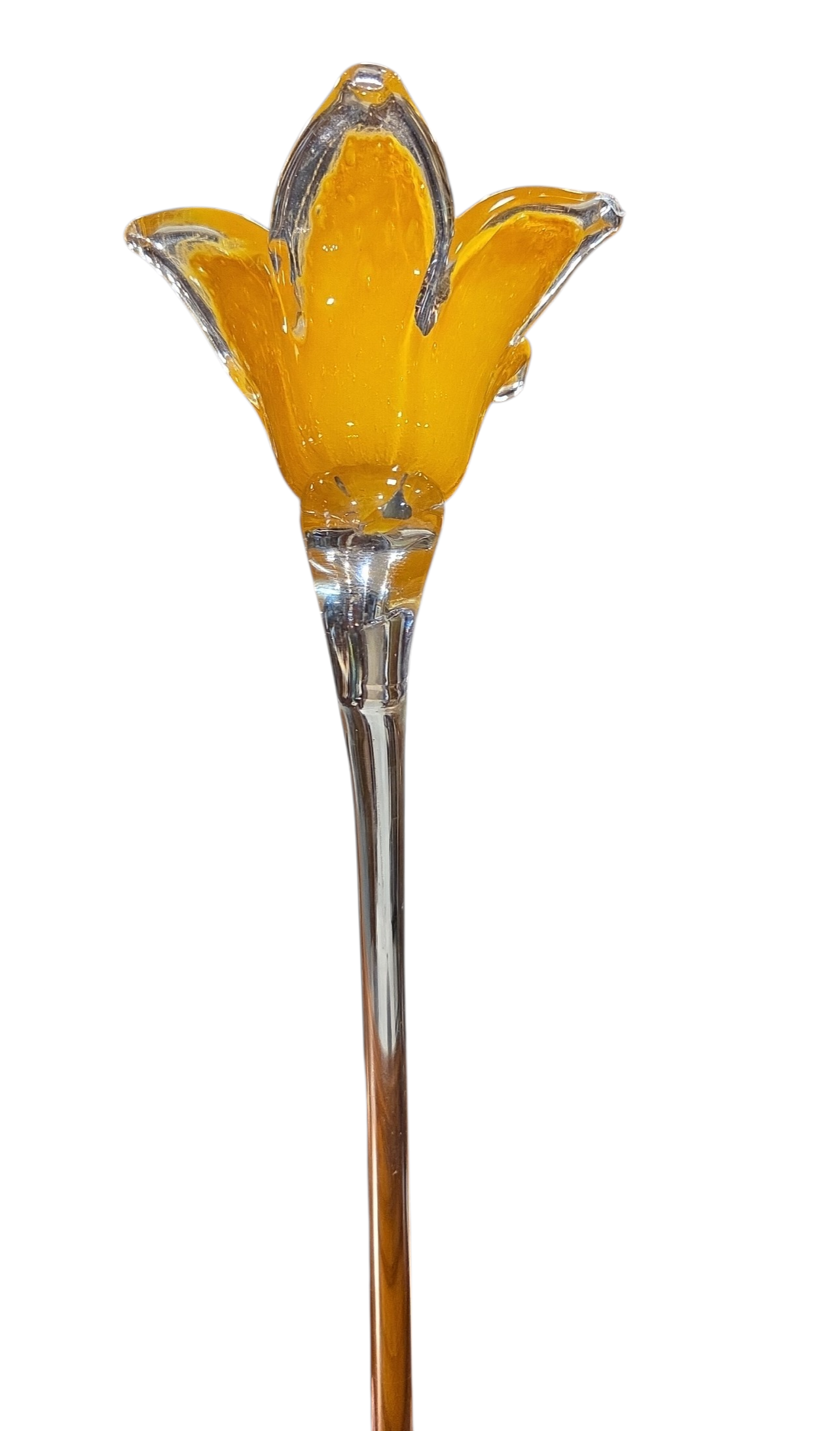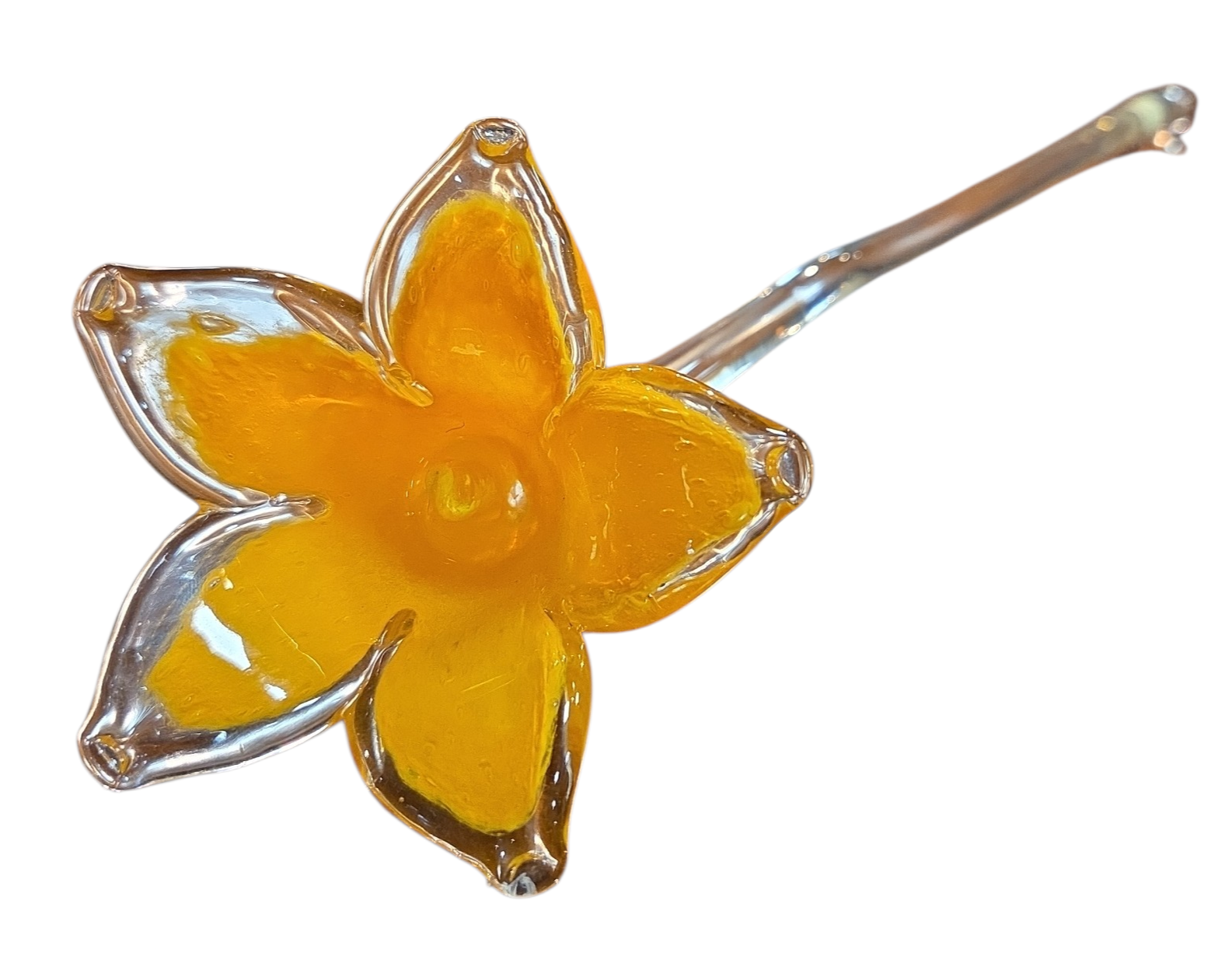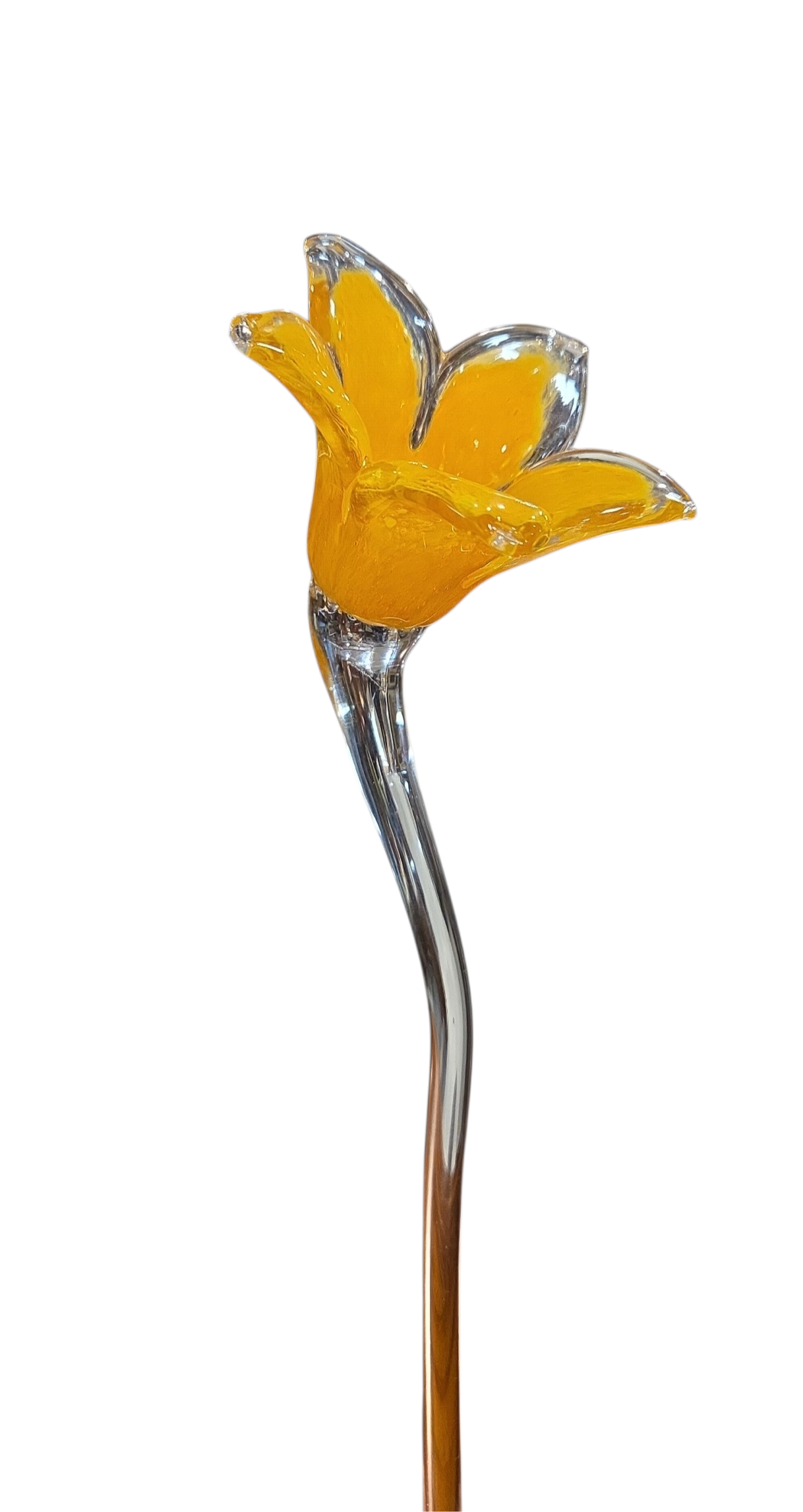 Elegante flor decorativa artesanal, modelada à mão em cristal Murano. Esta peça une o charme do design orgânico com a sofisticação da técnica vidreira, ideal para compor arranjos ou ser o destaque solitário em um vaso fino.