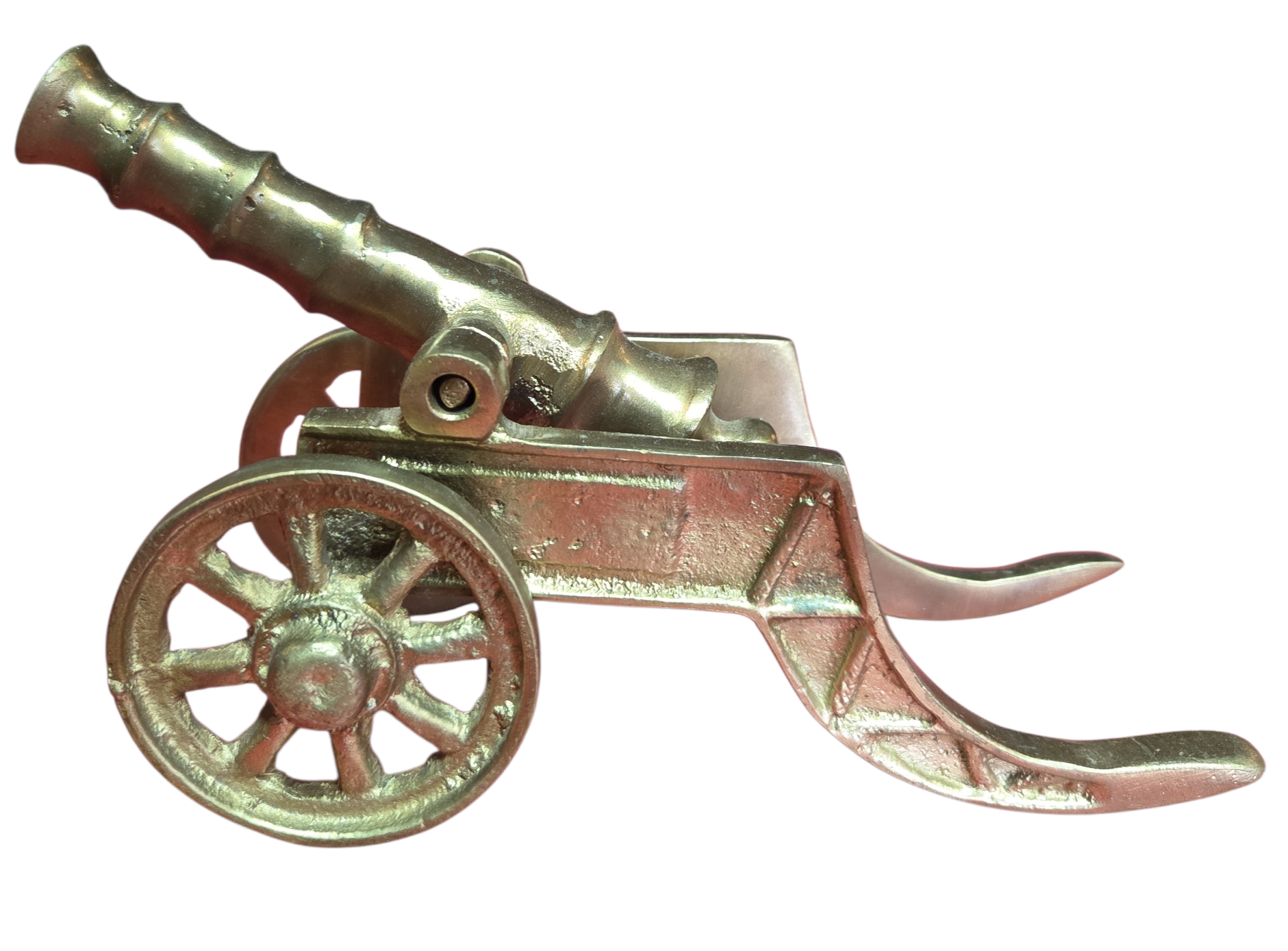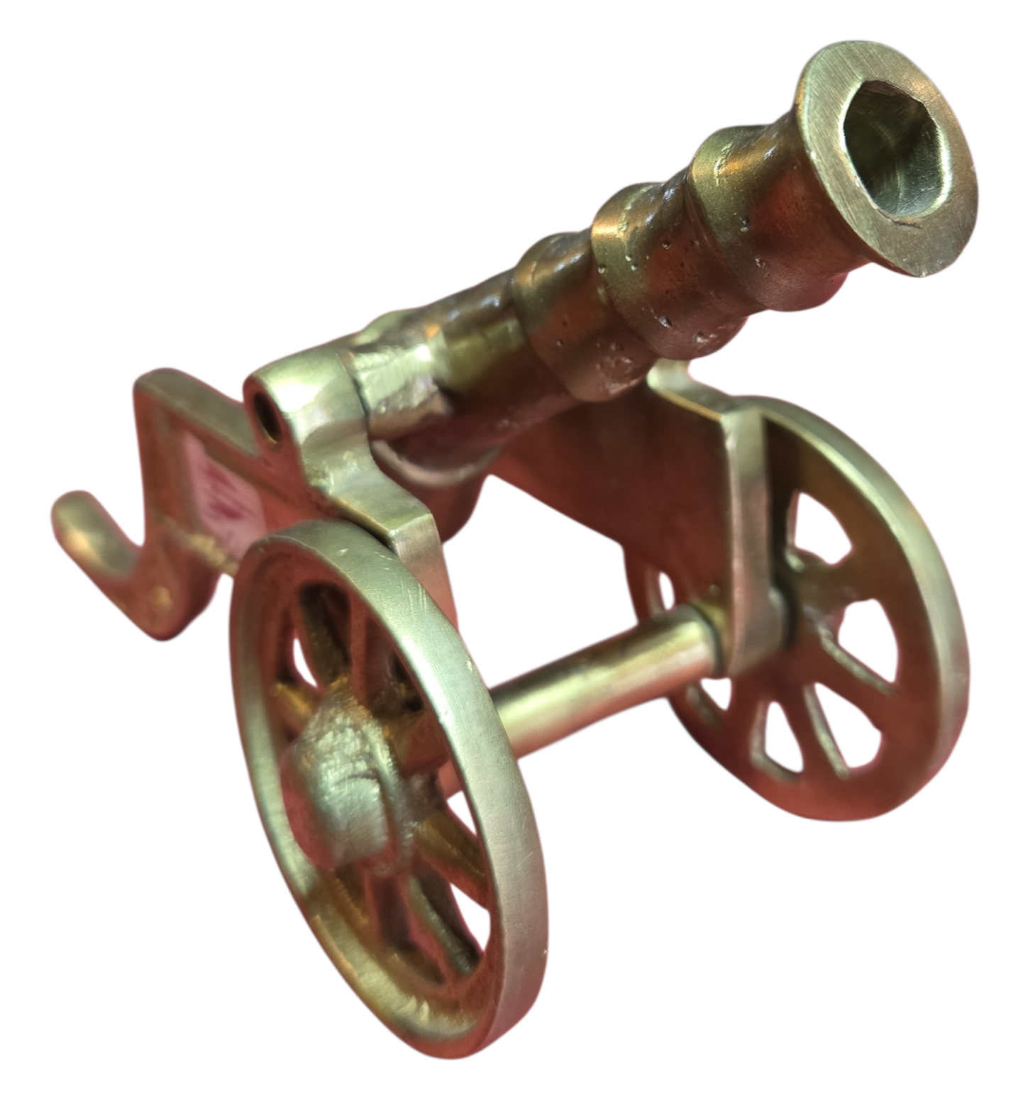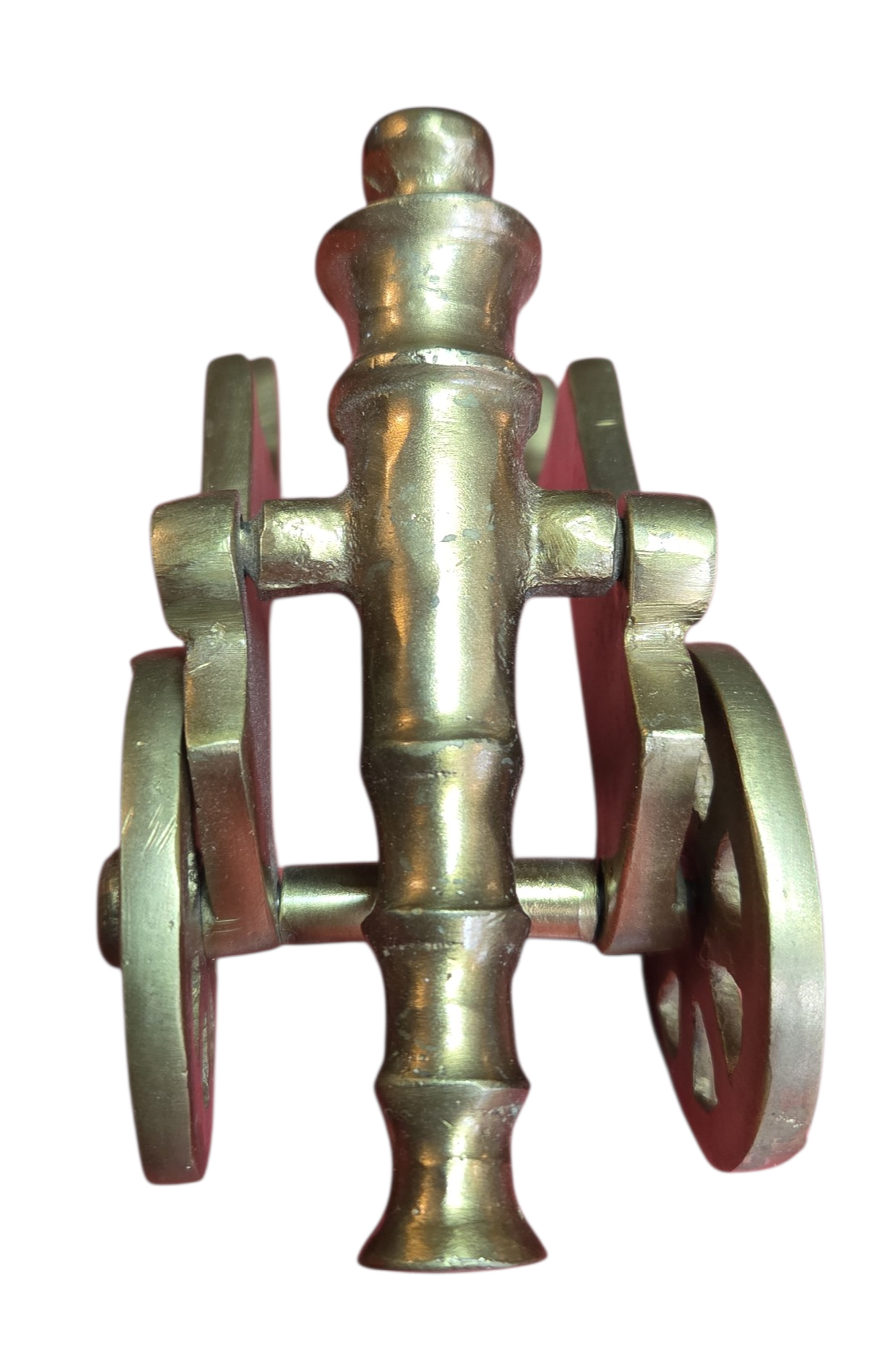 Peça decorativa de canhão antigo, confeccionada inteiramente em bronze. Uma peça que une robustez e detalhamento, ideal para compor mesas de escritório, estantes ou coleções de antiguidades.