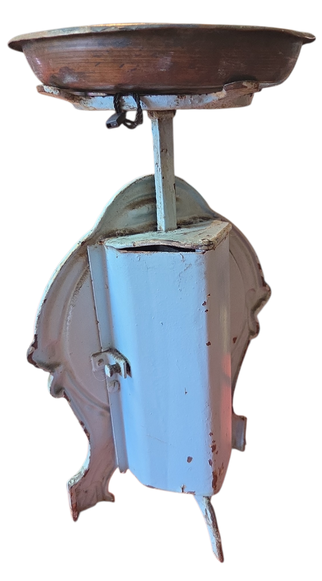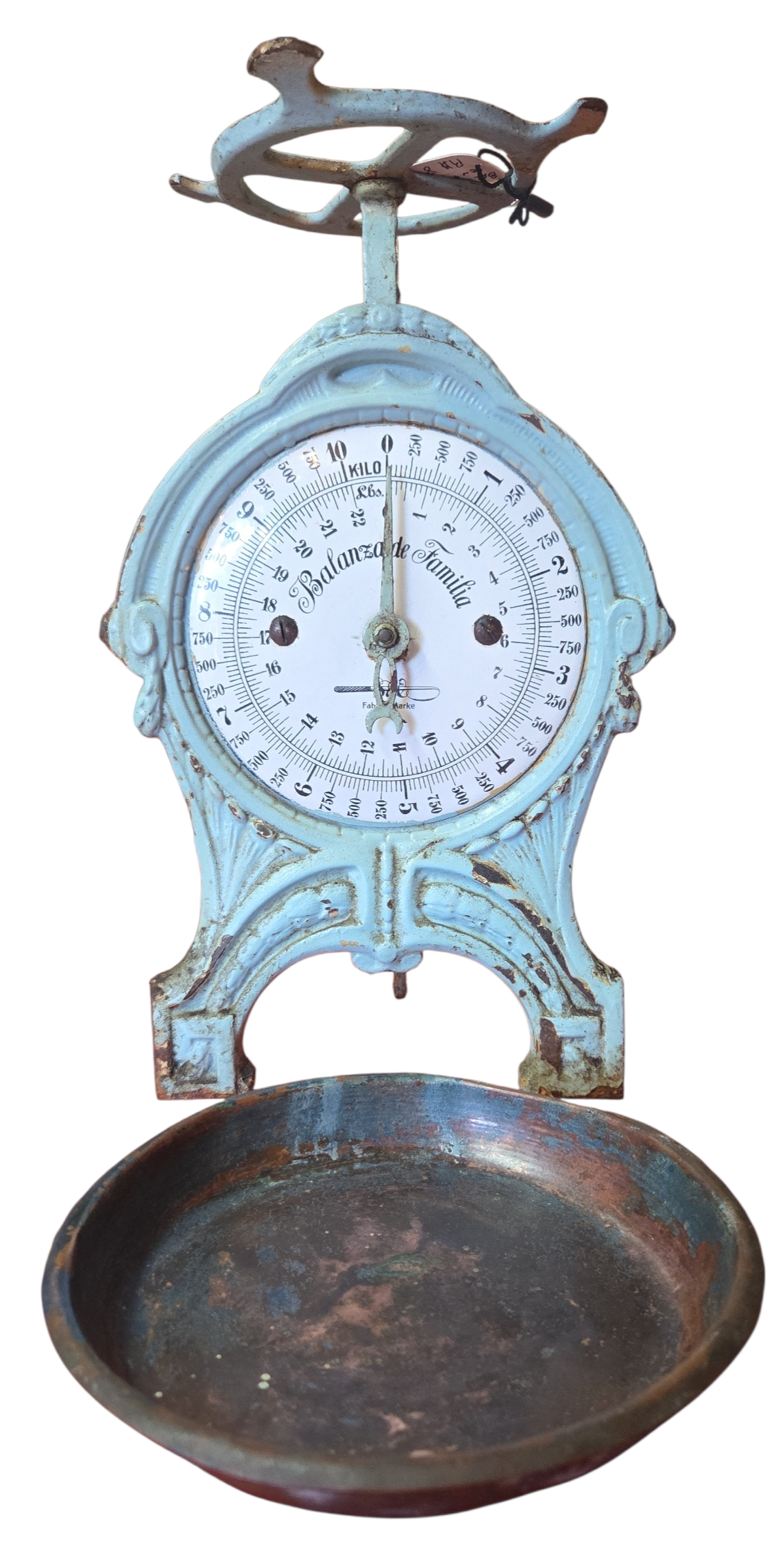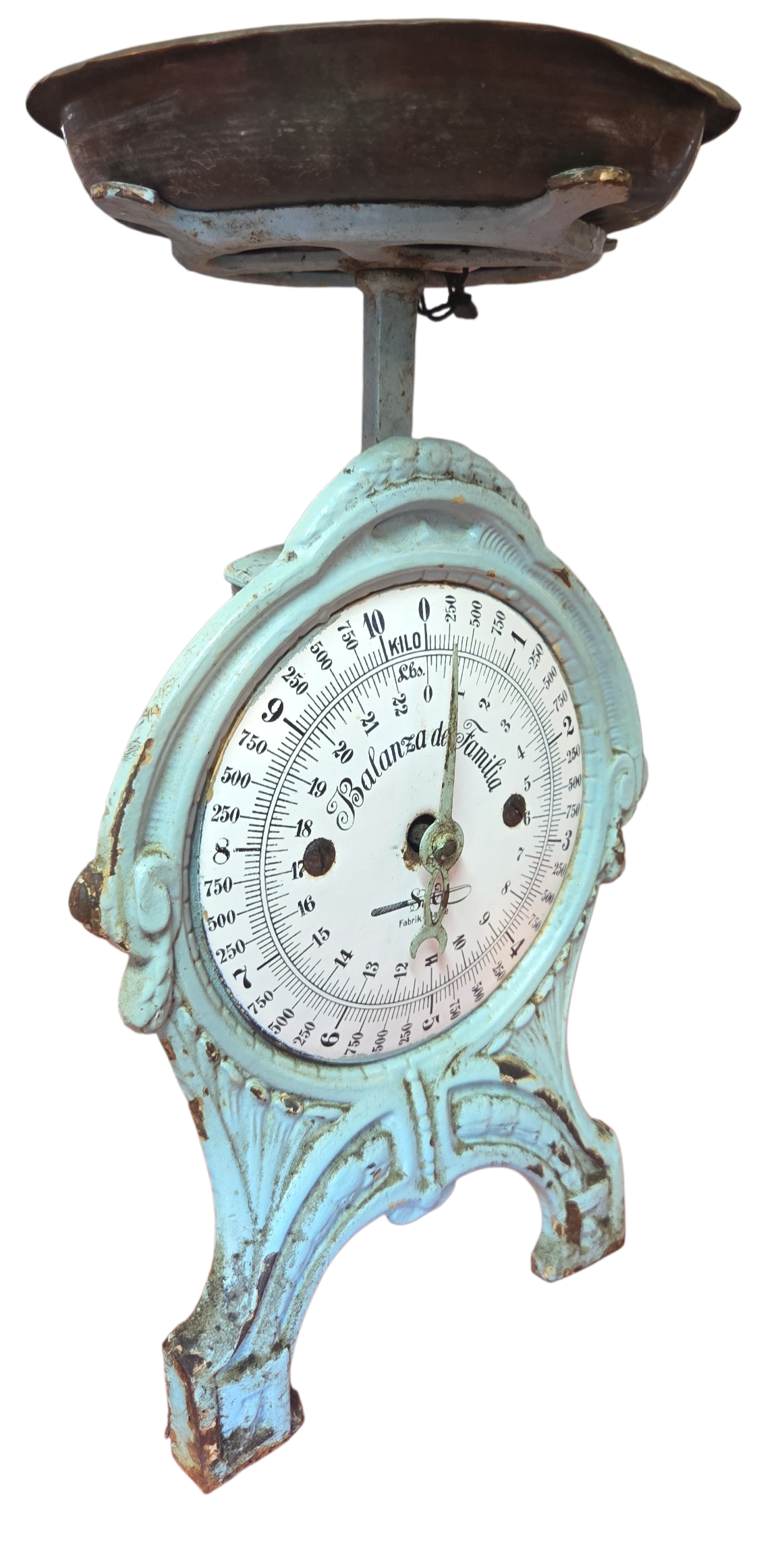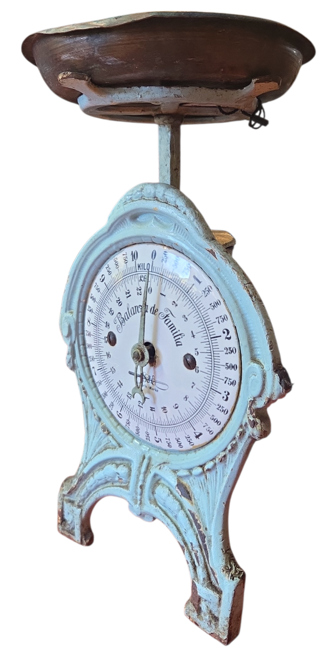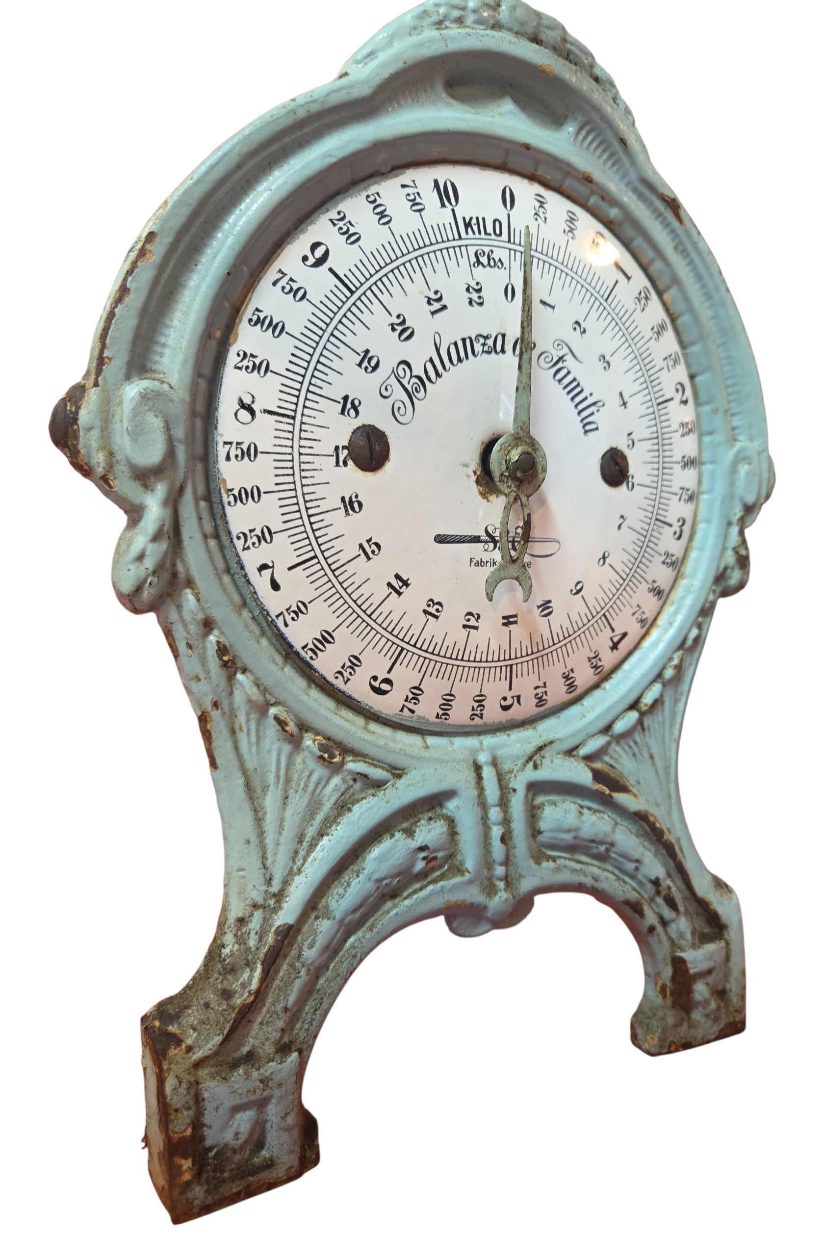 Uma joia da engenharia mecânica alemã do final do século XIX / início do XX. Esta balança centenária ostenta o prestigiado selo Fabrik Marke, garantindo sua origem e padrão de fabricação industrial germânica. Construída em ferro fundido de alta densidade, a peça apresenta uma pátina autêntica que preserva décadas de história familiar. Os detalhes em relevo e a precisão do mecanismo de época fazem desta balança uma peça de museu particular, ideal para quem busca itens com procedência e rigor técnico.