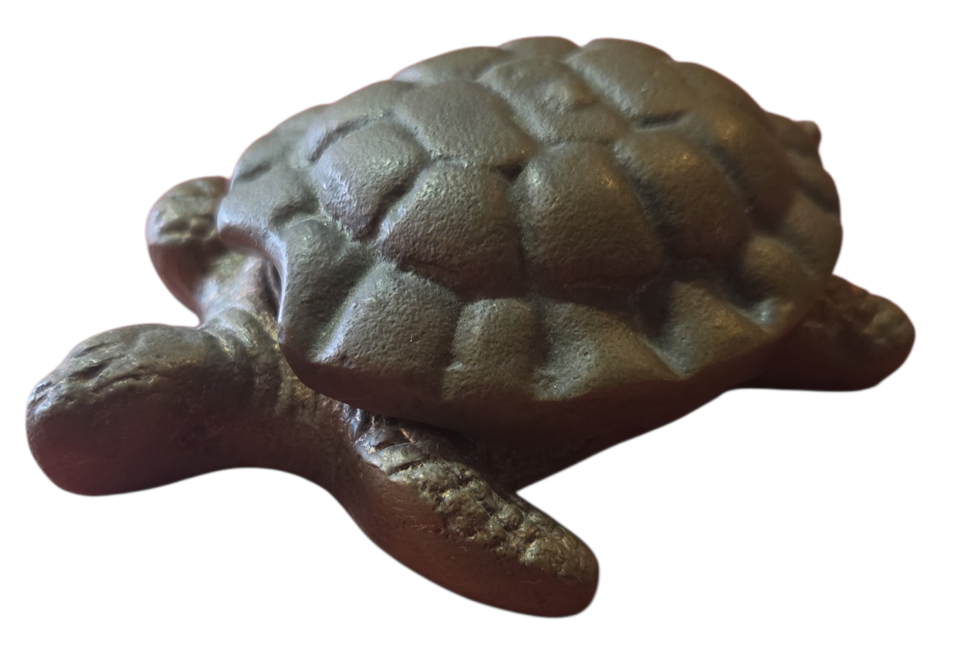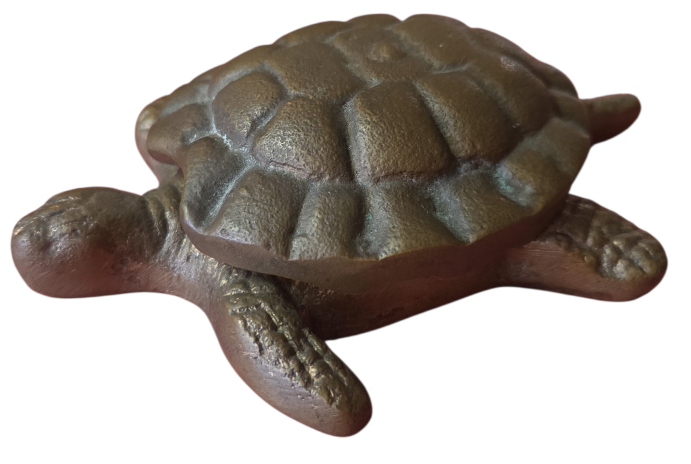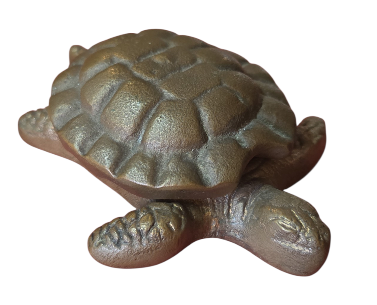 Adicione um toque de elegância atemporal ao seu ambiente com este magnífico cinzeiro em formato de tartaruga. Fundido em bronze de alta qualidade, esta peça se destaca pelo seu trabalho artesanal e riqueza de detalhes na carapaça e membros.