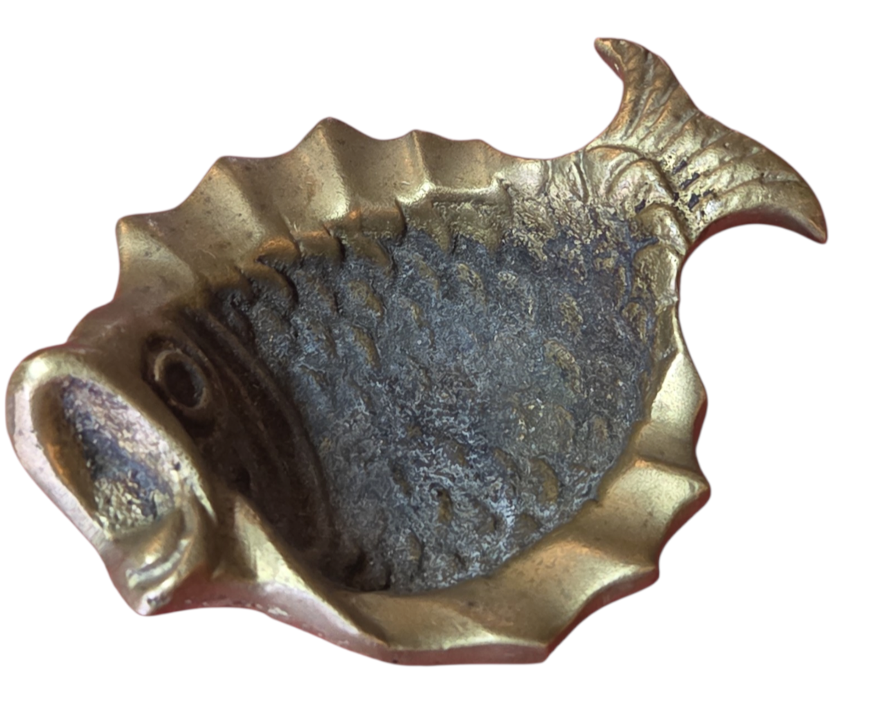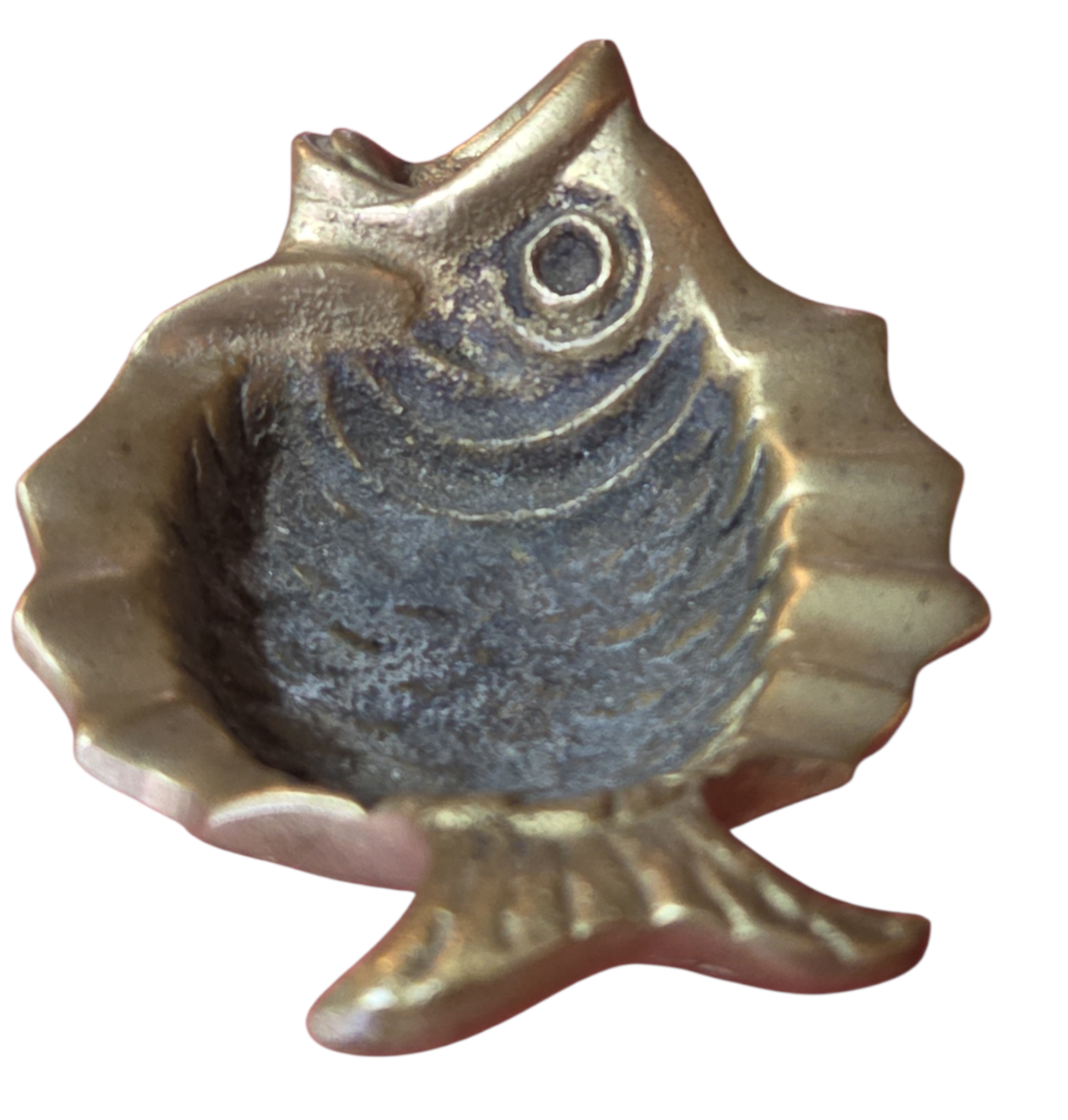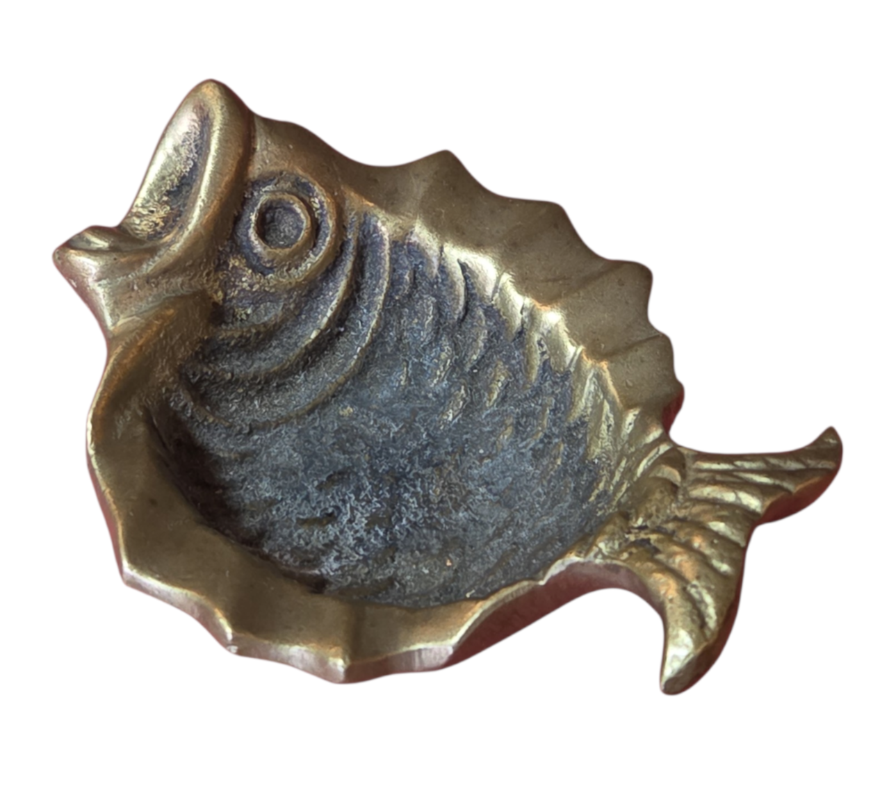 Lindo cinzeiro em formato de peixe, confeccionado em metal maciço bronze com pátina original do tempo.
