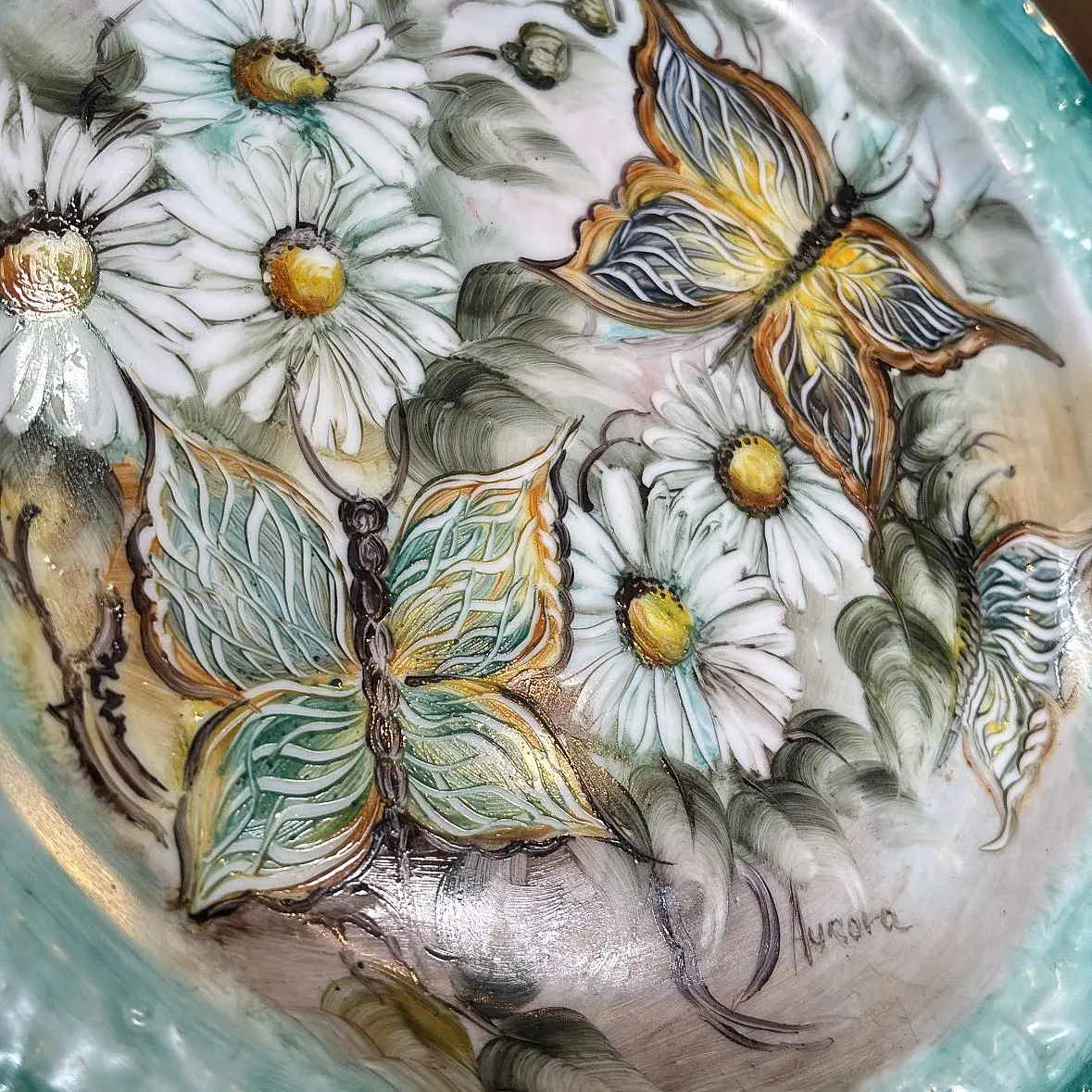 Lindo prato de parede em porcelana, pintado à mão, assinado