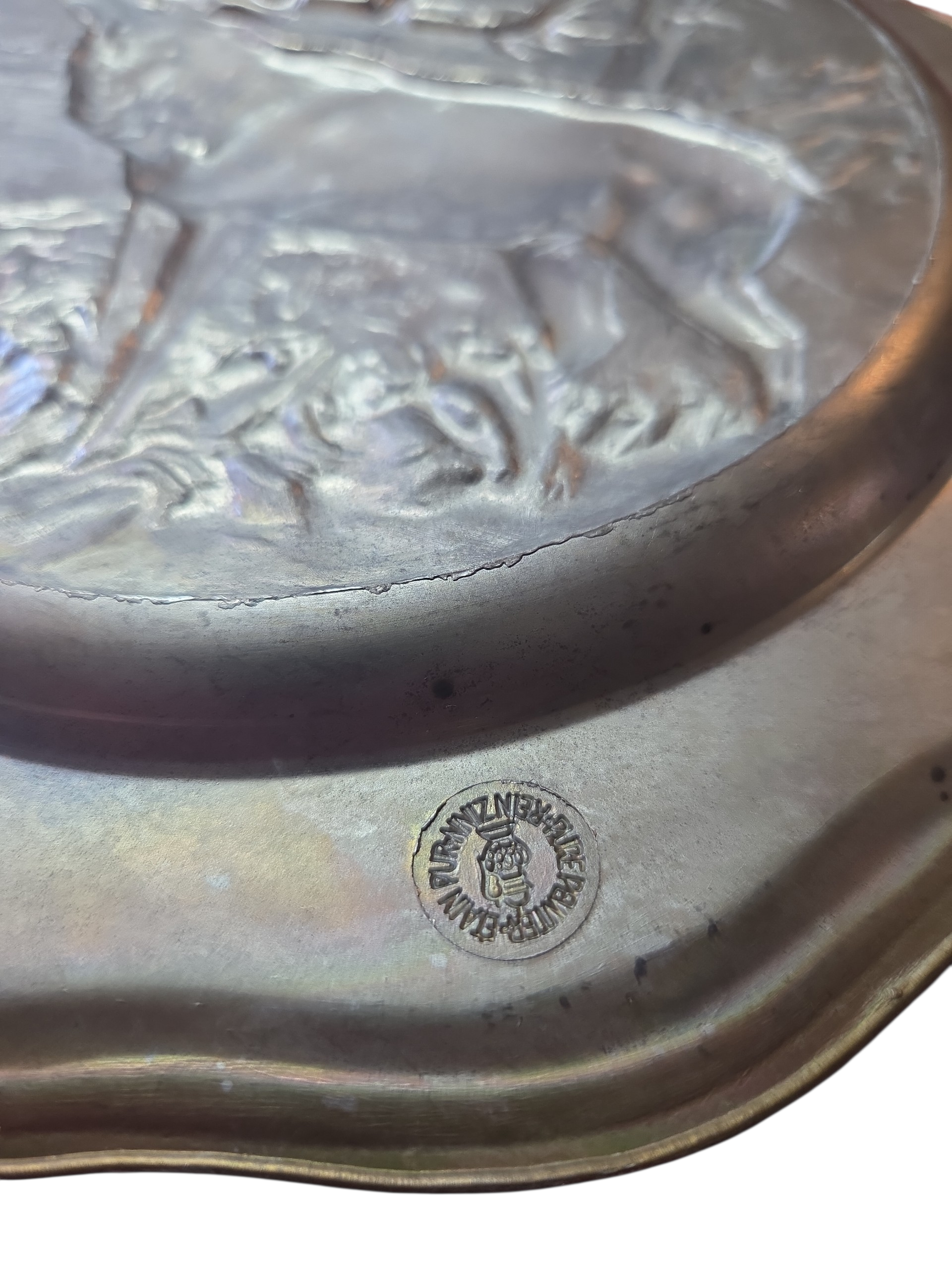 Adicione um toque de história alemã à sua decoração com este prato em estanho puro (Rein Zinn). Esta peça vintage destaca-se pelo acabamento fosco característico e pela resistência do material, apresentando o selo de autenticidade gravado no verso. Com design clássico e bordas trabalhadas, é perfeito tanto para exposição em suportes de parede quanto para compor mesas de jantar com temática rústica ou medieval. Uma peça robusta que atravessa gerações sem perder o brilho prateado profundo.