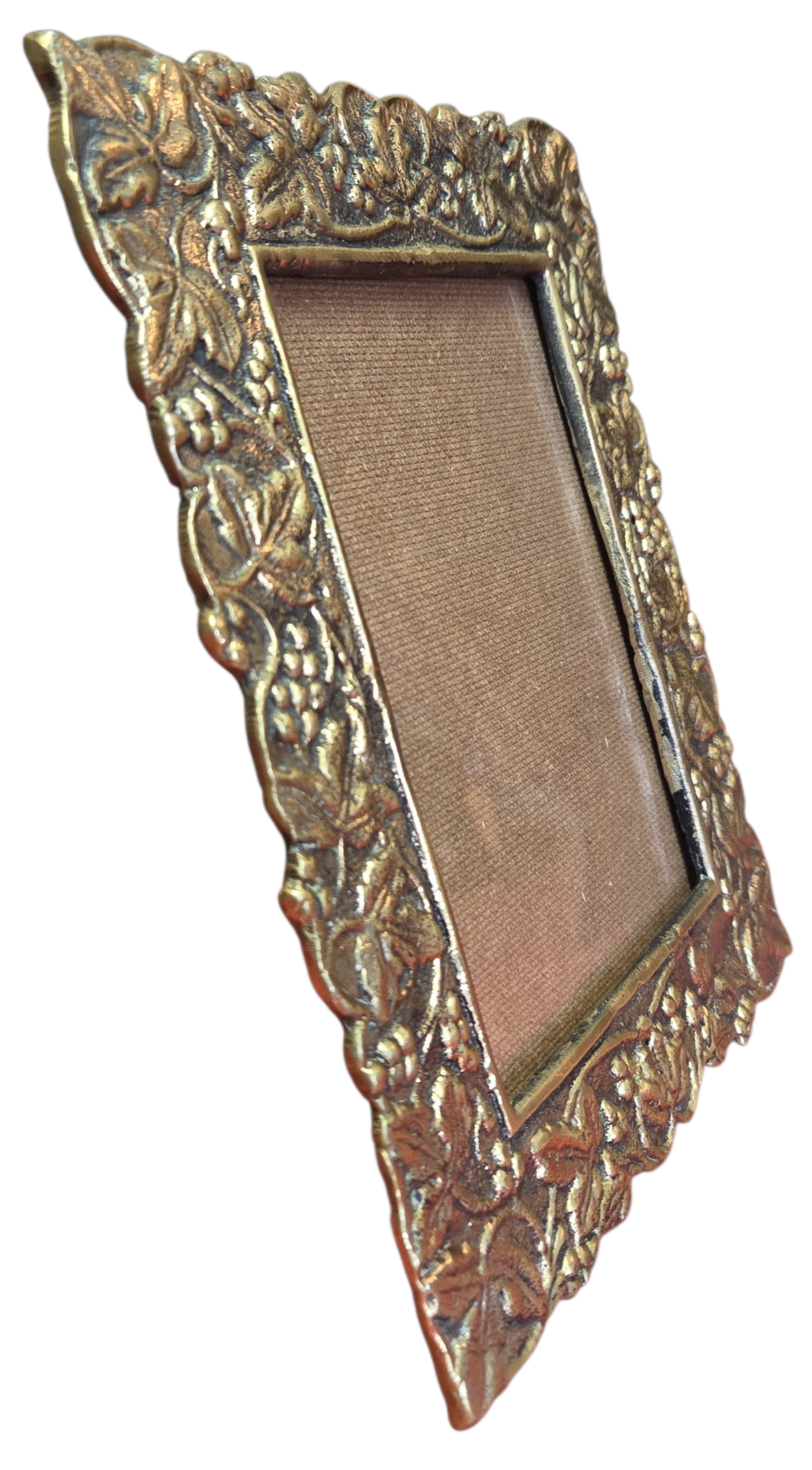 Belíssimo porta-retrato vertical confeccionado em bronze de alta qualidade. Esta peça apresenta um trabalho de fundição detalhado com ornamentos clássicos, ideal para compor decorações sofisticadas ou ambientes que prezam pelo estilo vintage.