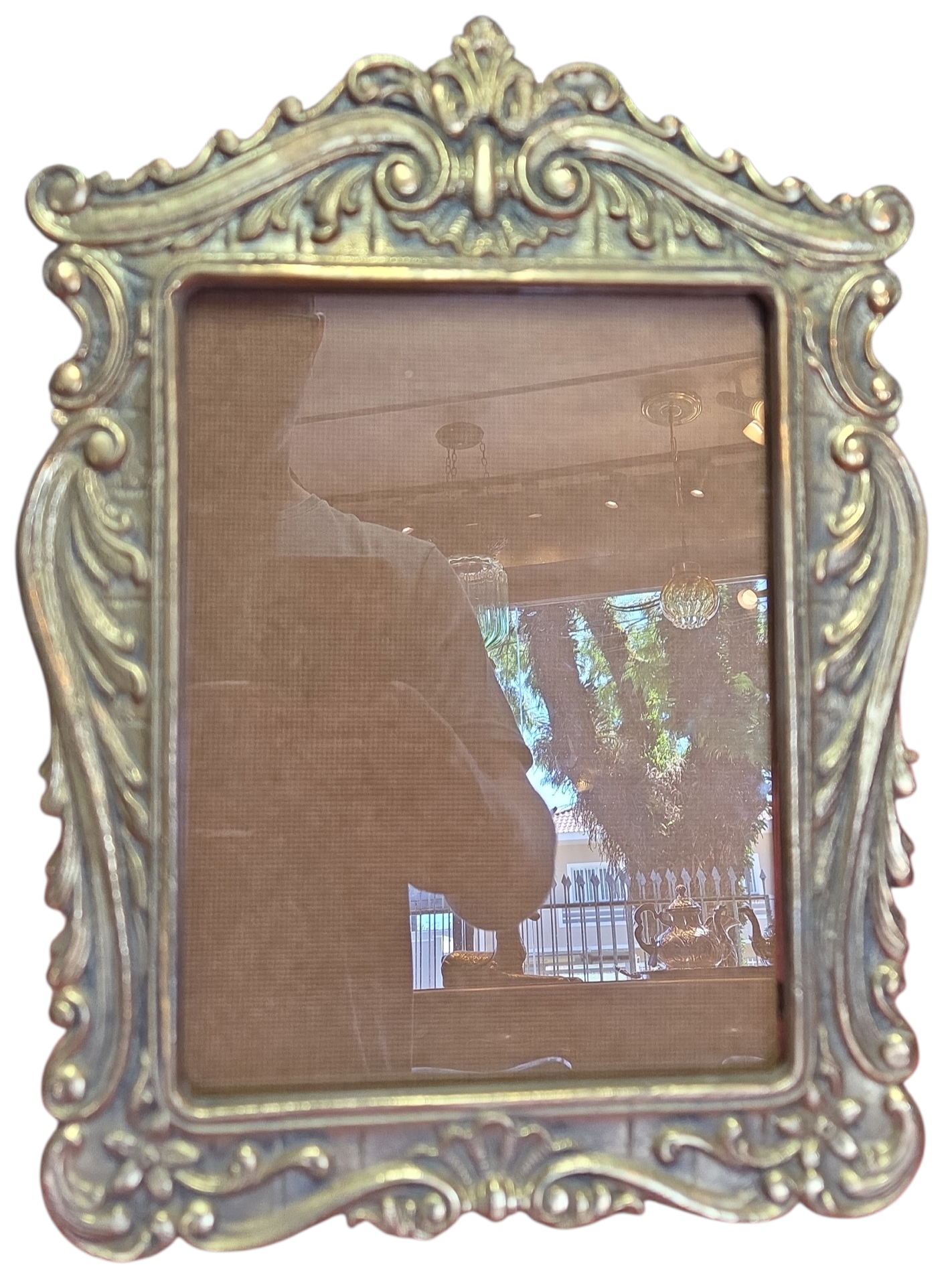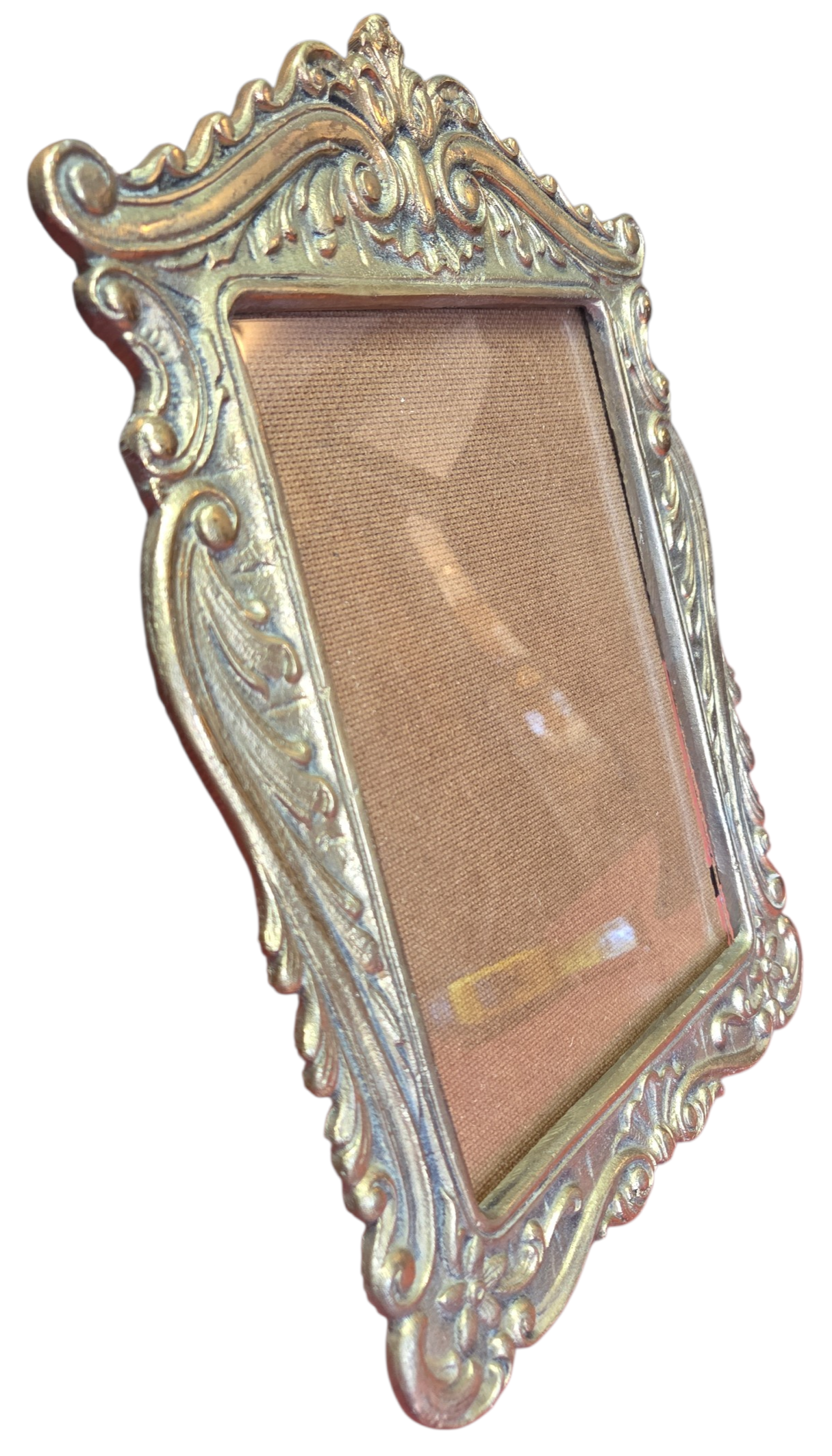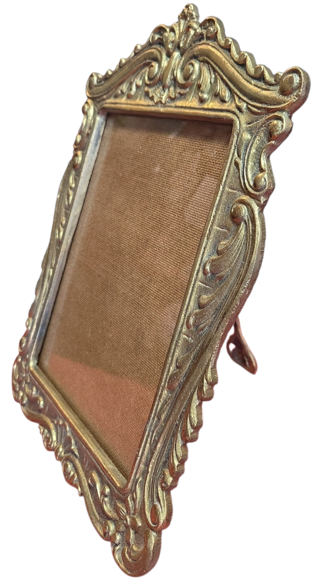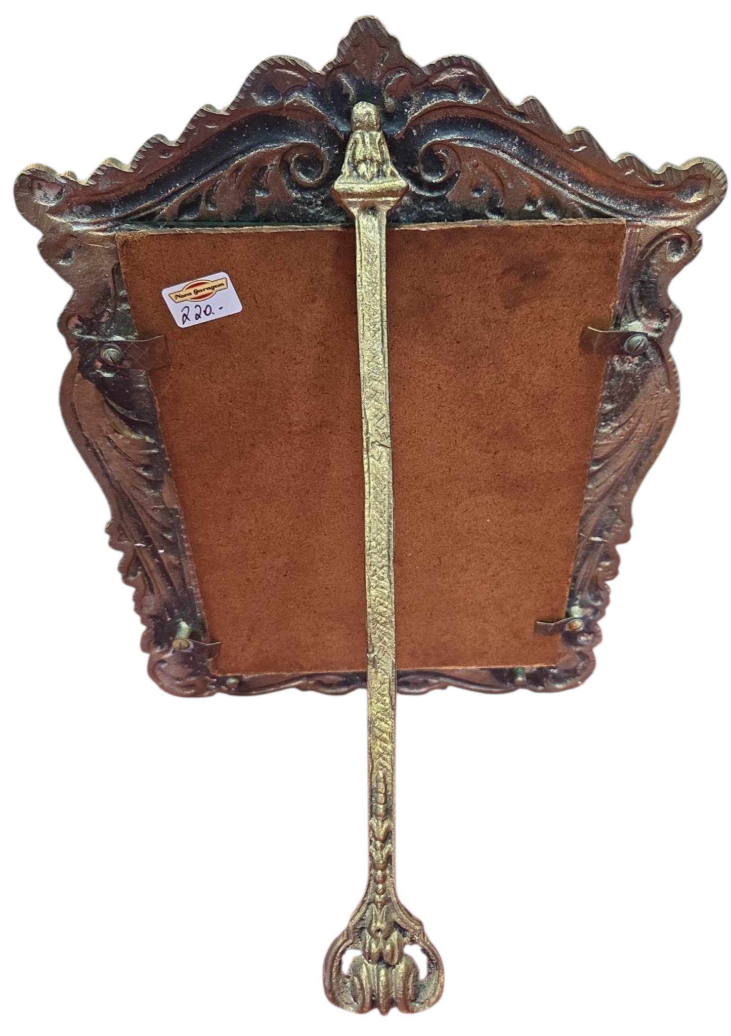 Belíssimo porta-retrato vertical confeccionado em bronze de alta qualidade. Esta peça apresenta um trabalho de fundição detalhado com ornamentos clássicos, ideal para compor decorações sofisticadas ou ambientes que prezam pelo estilo vintage.