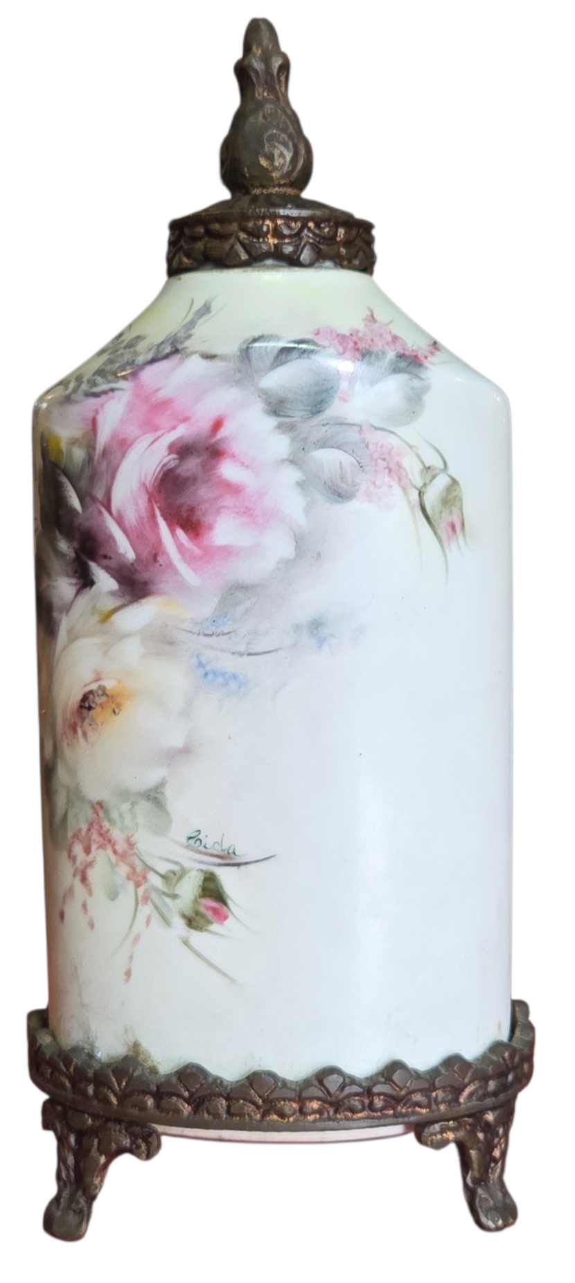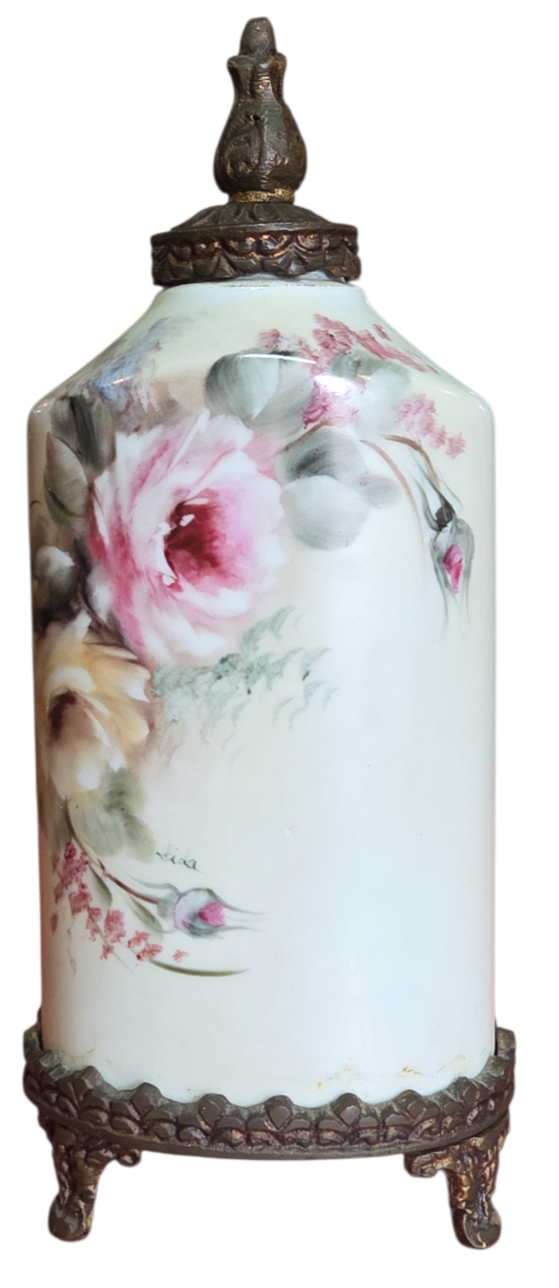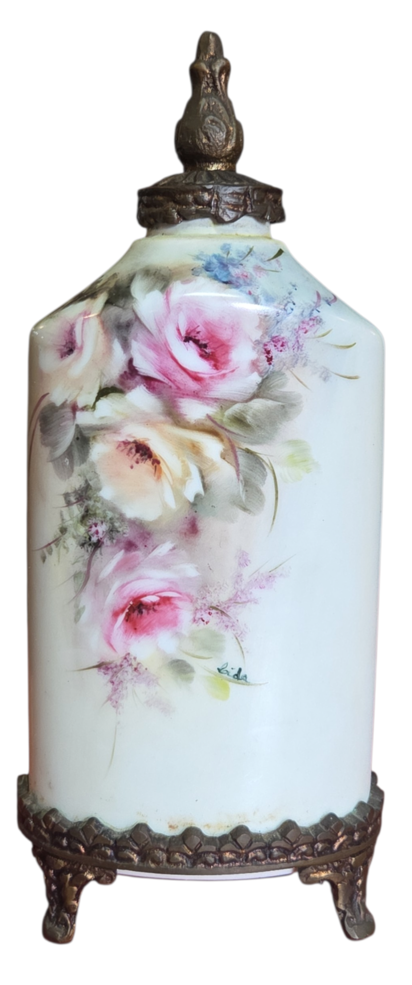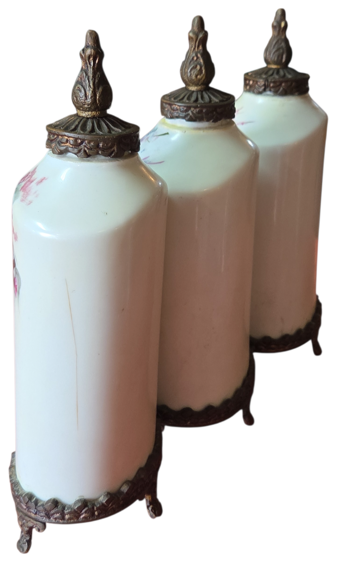Apresentamos este magnífico trio de potiches (vasos com tampa) em porcelana de alta qualidade, apresentando um formato sextavado que confere modernidade à silhueta clássica. Cada peça é adornada com uma belíssima pintura floral feita à mão, destacando rosas em tons de rosa, creme e toques de azul, com acabamento artístico que confere profundidade e realismo à peça.