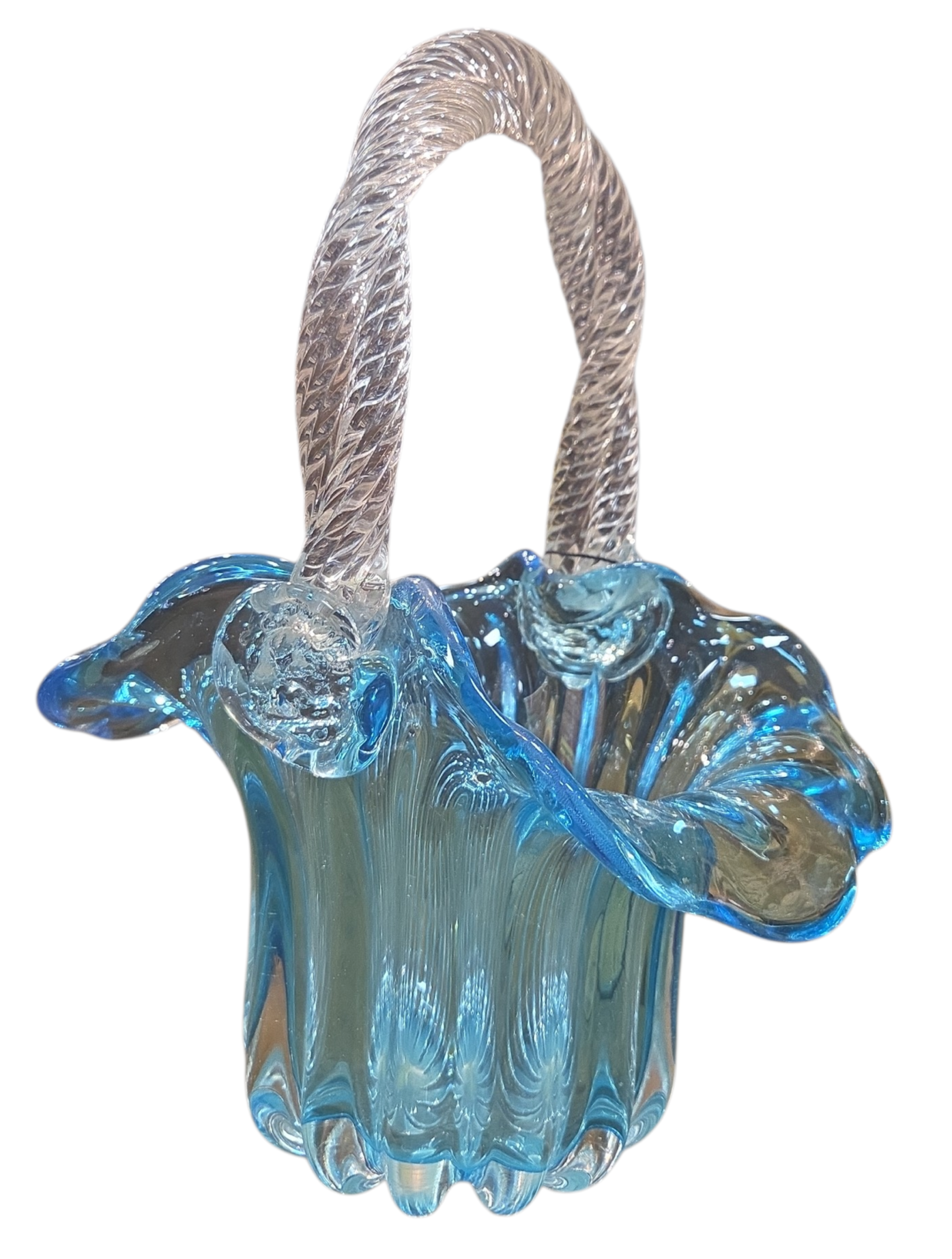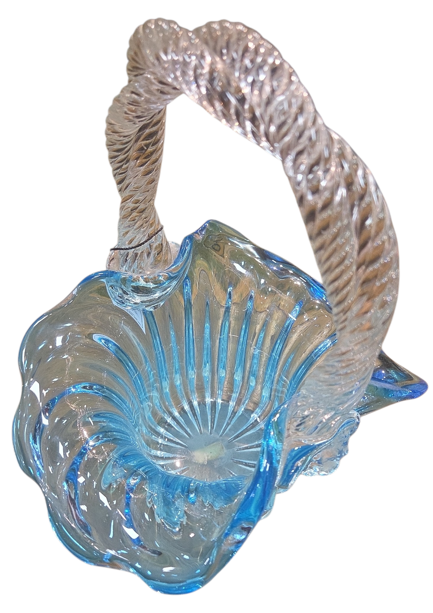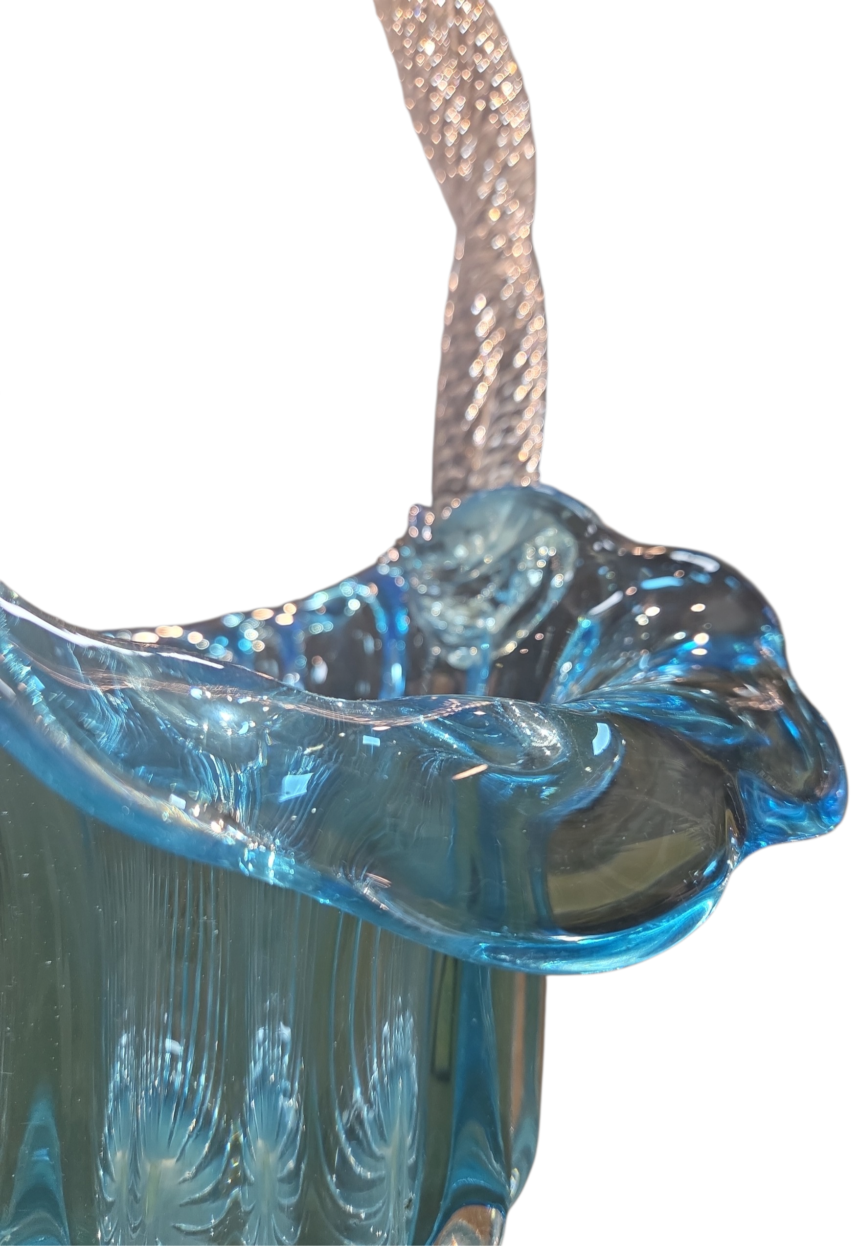 Mais do que um objeto, uma obra de arte. Esta cesta em Murano captura a luz de forma mágica, trazendo a tradição da ilha de Veneza diretamente para o seu lar. O design orgânico e as cores vibrantes são resultados de um trabalho manual minucioso, onde o mestre artesão transforma vidro em poesia.