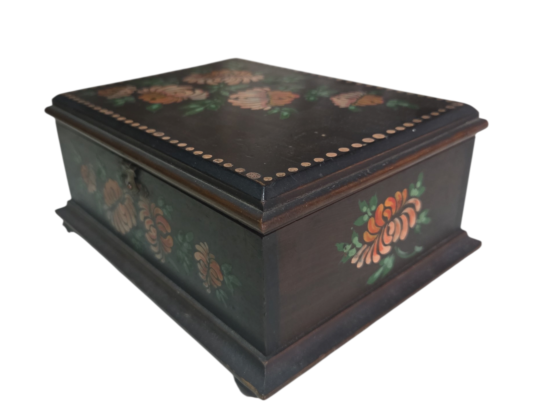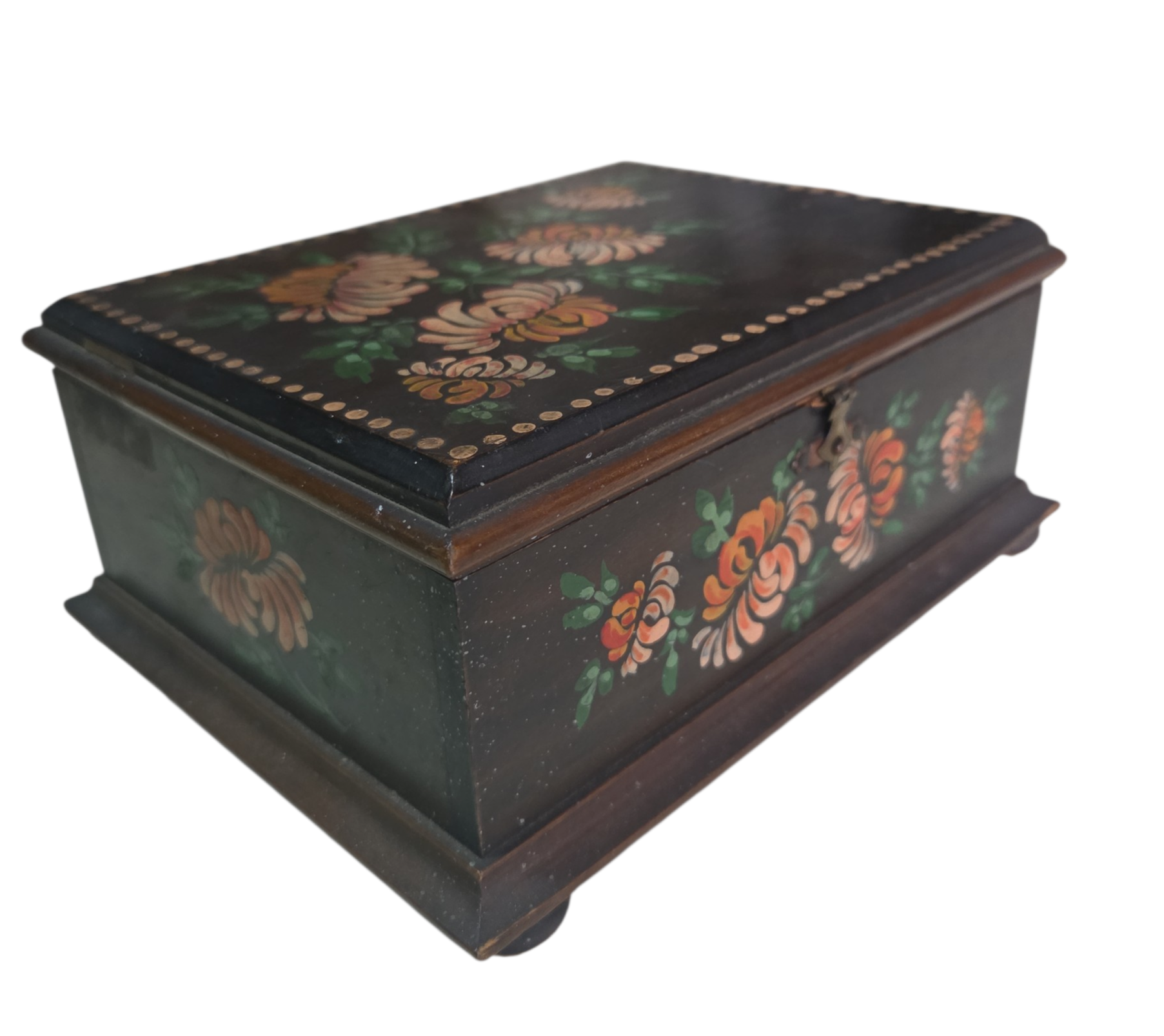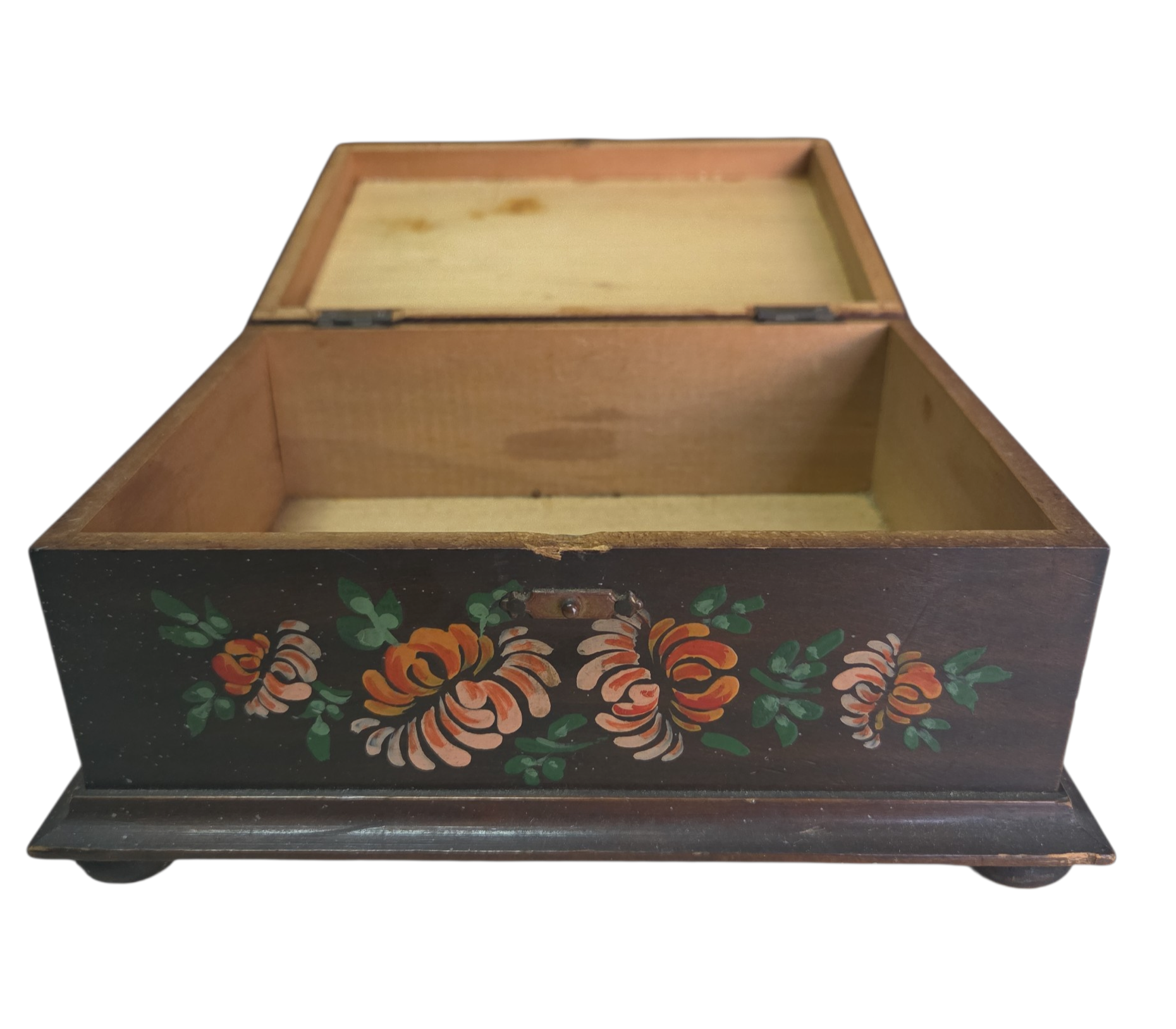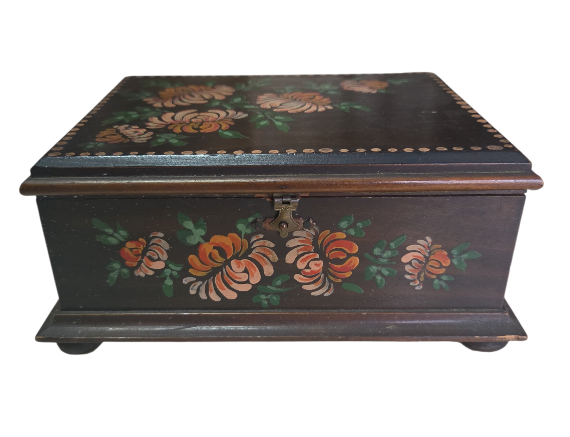 Adicione um toque de acolhimento ao seu ambiente com esta caixa de madeira artesanal. A tampa apresenta uma pintura floral rica em detalhes, com tons vibrantes, Perfeita para organizar pequenos objetos ou para decorar mesinhas de cabeceira e aparadores com personalidade.