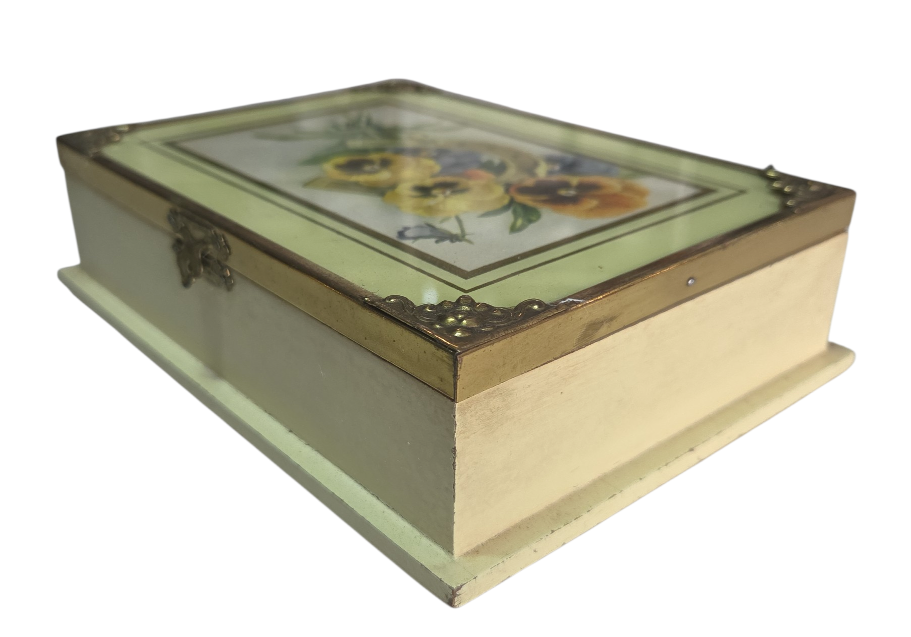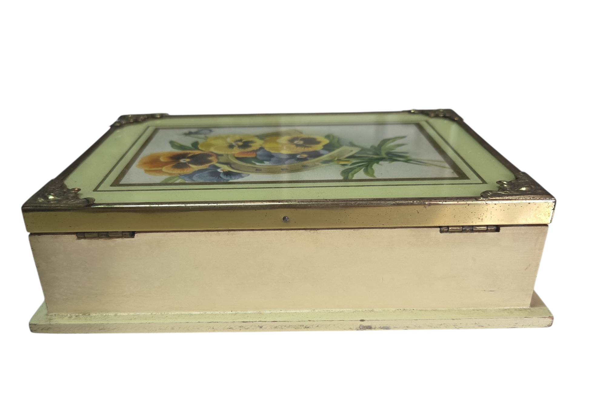 Encante-se com a delicadeza desta caixa exclusiva. Unindo o clássico símbolo da ferradura para atrair boas energias ao romantismo das flores, esta peça é adornada com refinados detalhes em metal dourado na tampa que conferem um brilho luxuoso. Ideal para guardar joias, recordações ou para decorar seu aparador com um toque de elegância e proteção.