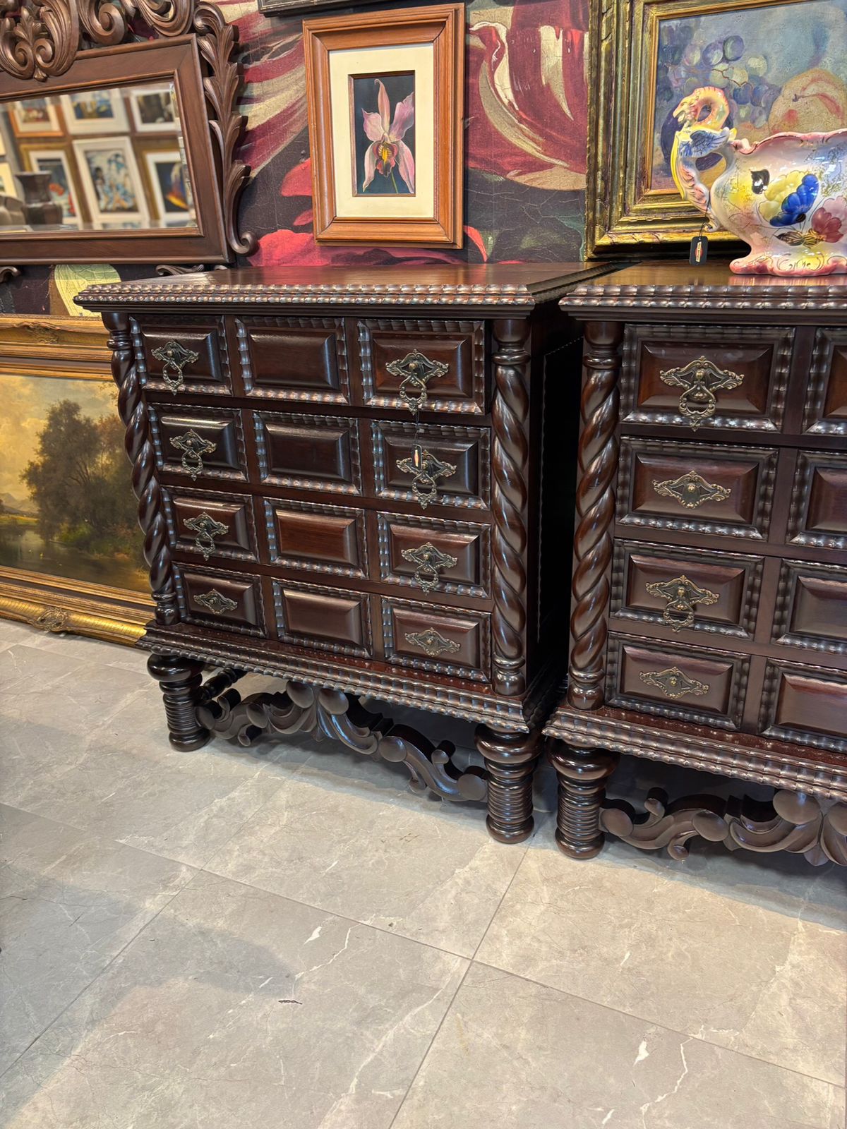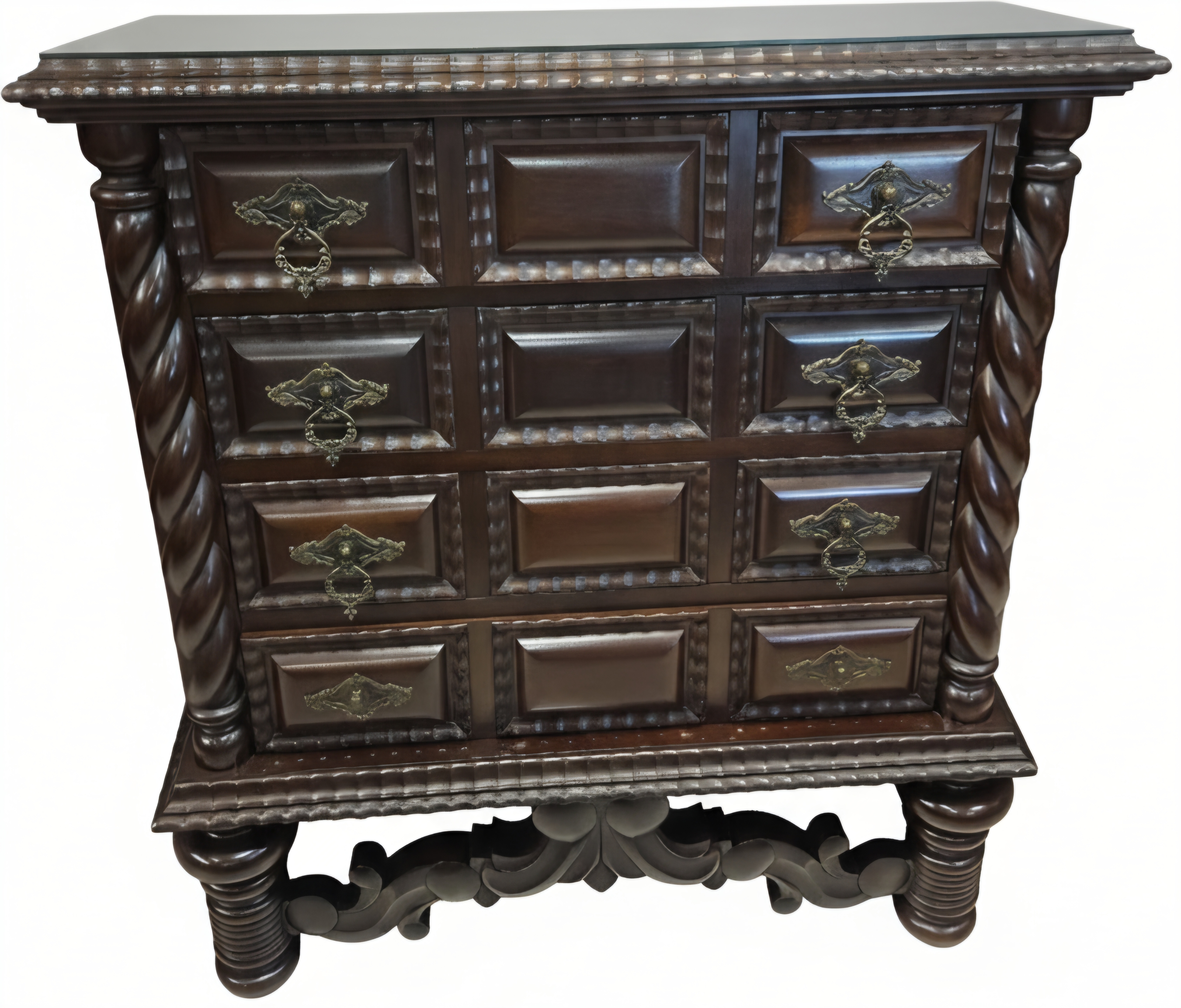 Apresentamos esta Cômoda Manuelino, verdadeira joia da marcenaria clássica. Confeccionada em Jacarandá da Bahia, a madeira mais cobiçada do mobiliário brasileiro de luxo, esta peça é o ponto focal de qualquer ambiente de prestígio.