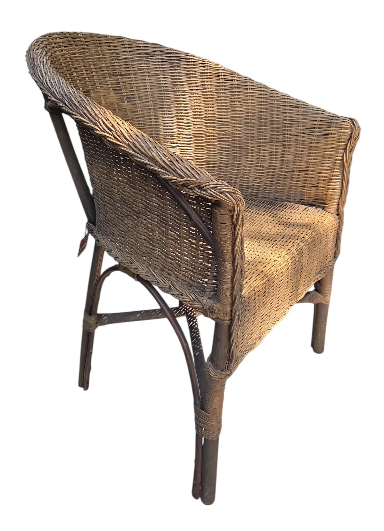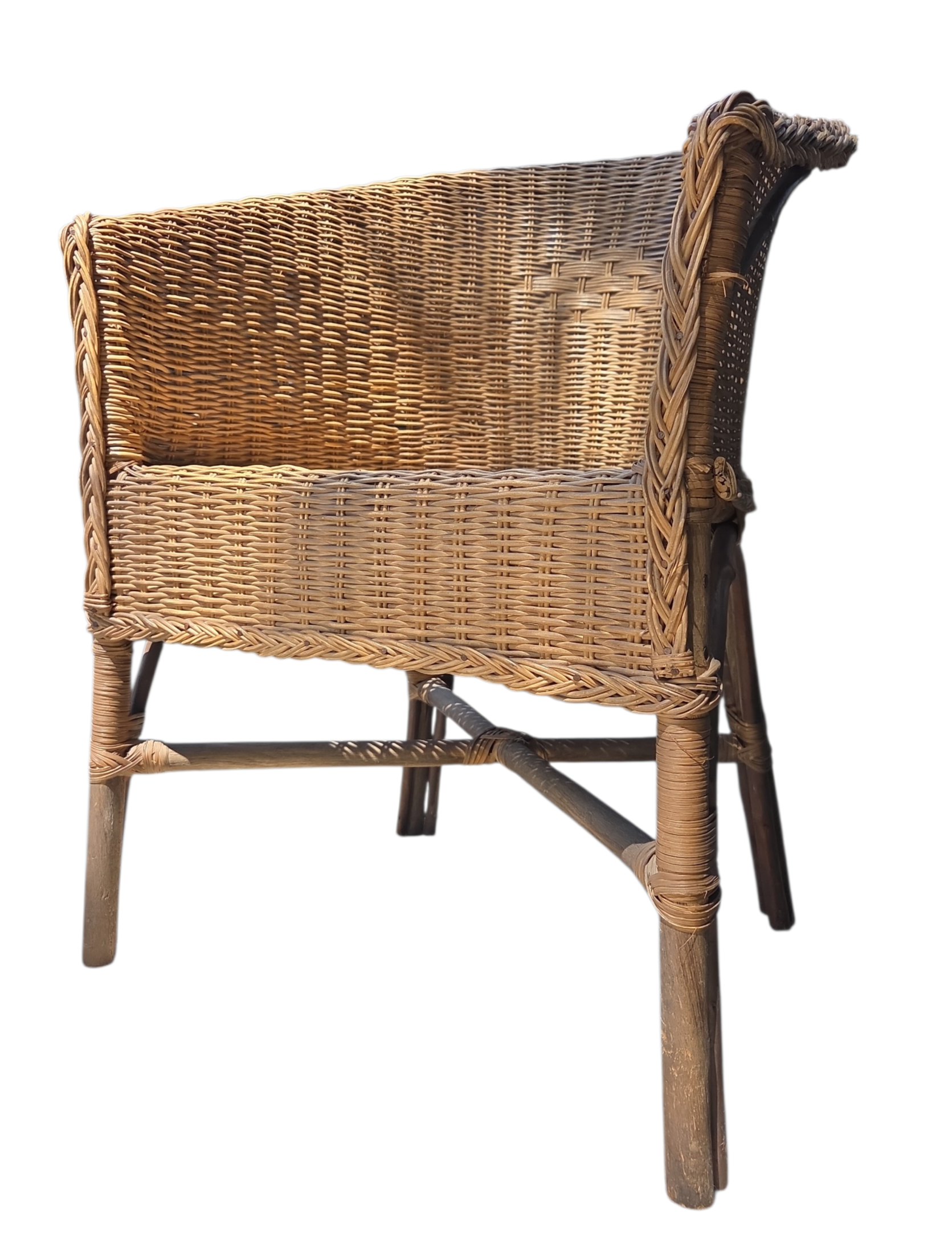 Esta peça é um exemplo clássico de mobiliário em fibra natural, combinando a robustez da estrutura com a leveza visual do trabalho artesanal. Com um design envolvente e ergonômico, esta cadeira de braços transita perfeitamente entre ambientes internos, varandas cobertas e jardins de inverno.