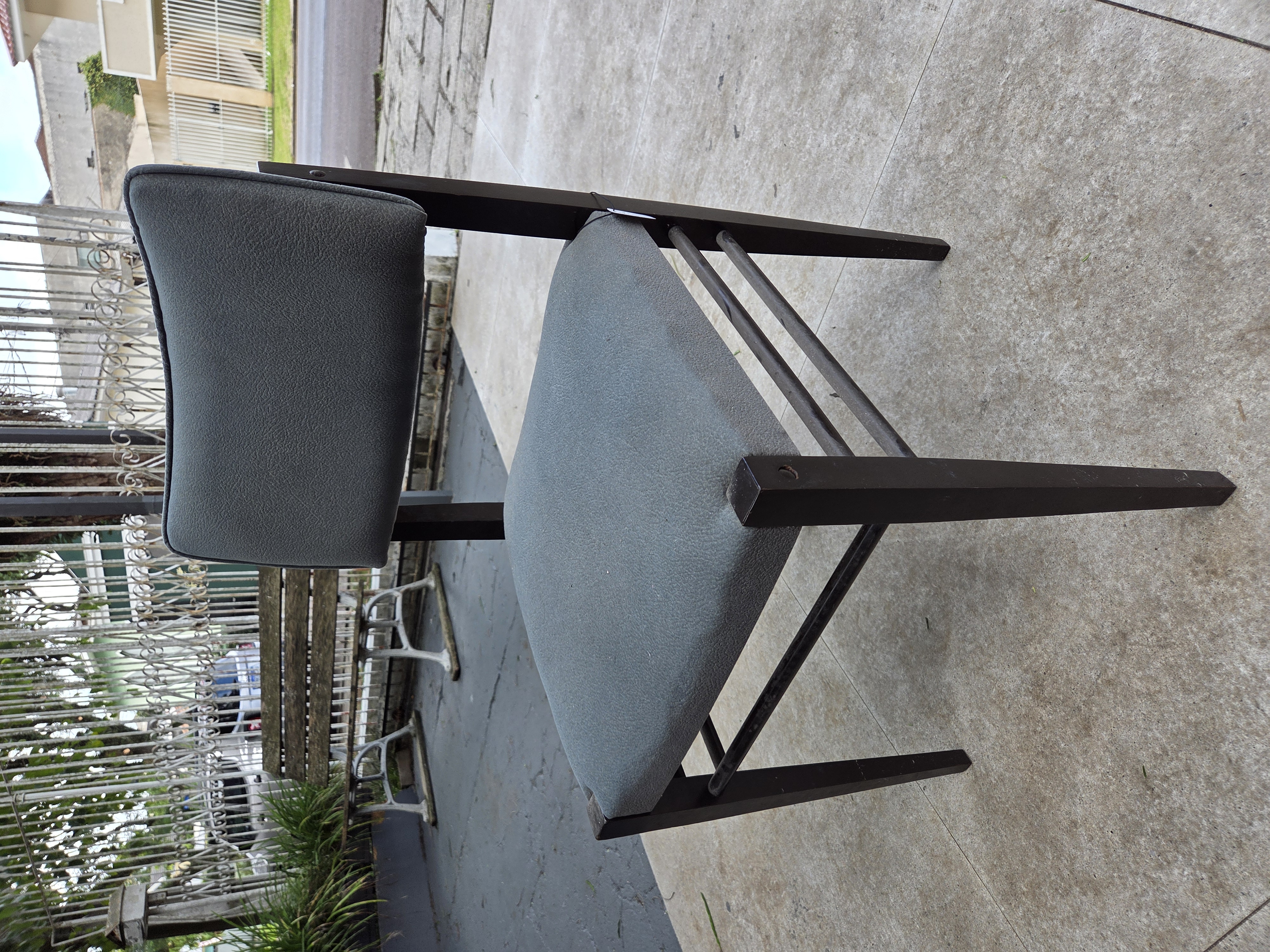 Cadeira com estrutura em madeira maciça, de linhas retas e design atemporal. Possui assento e encosto estofados, oferecendo conforto e firmeza no uso diário. O acabamento escuro da madeira contrasta elegantemente com o tecido em tom cinza, tornando a peça versátil para salas de jantar, escritórios, recepções ou ambientes comerciais. Estrutura resistente, visual sóbrio e funcionalidade garantida.