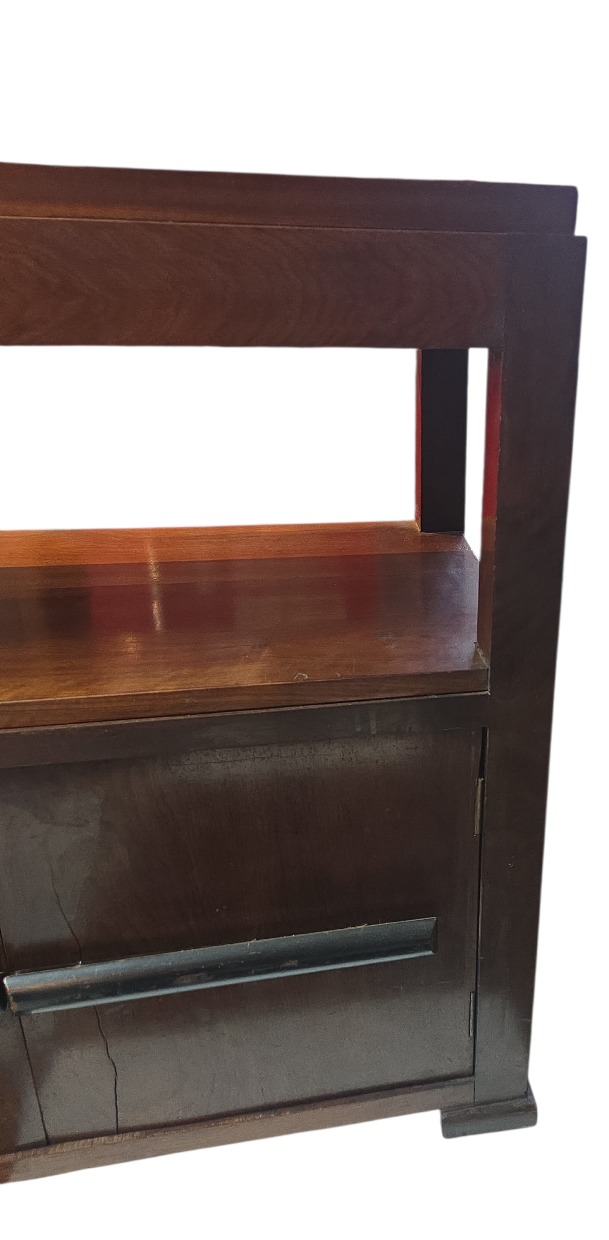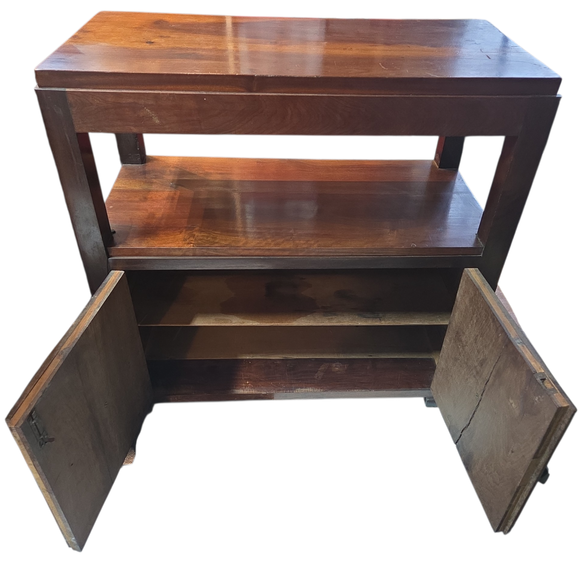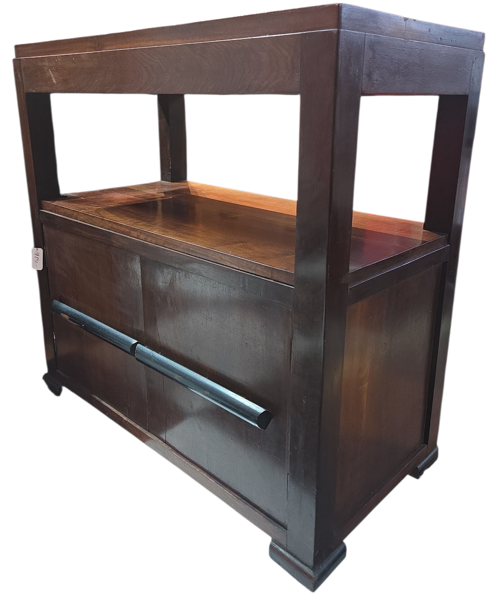 Apresentamos uma peça autêntica do mobiliário brasileiro de meados do século XX. Esta mesa de cabeceira, confeccionada em imbuia — madeira nobre conhecida por sua durabilidade e veios marcantes — é o equilíbrio perfeito entre o design clássico e a funcionalidade moderna.