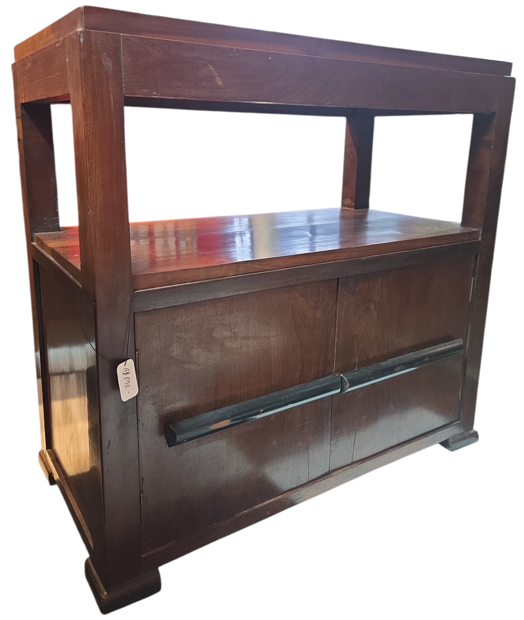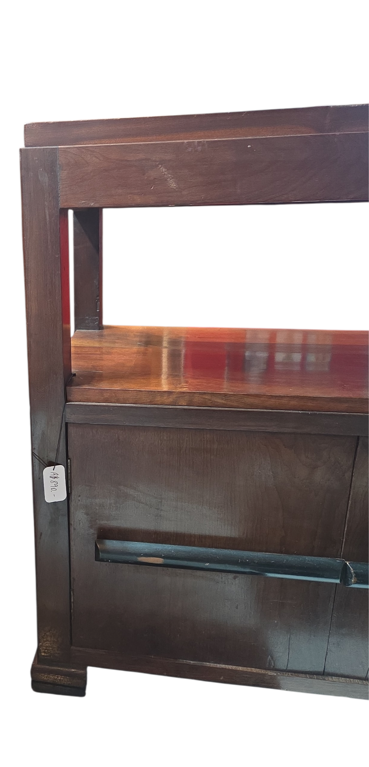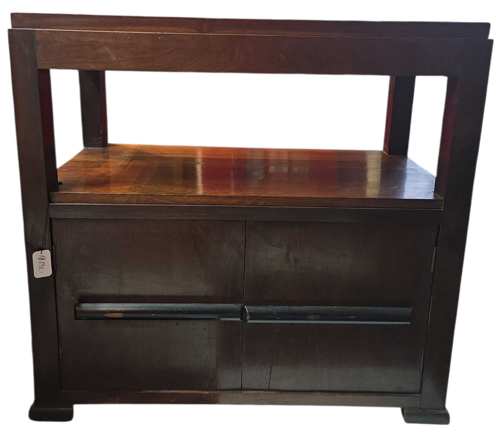 Apresentamos uma peça autêntica do mobiliário brasileiro de meados do século XX. Esta mesa de cabeceira, confeccionada em imbuia — madeira nobre conhecida por sua durabilidade e veios marcantes — é o equilíbrio perfeito entre o design clássico e a funcionalidade moderna.