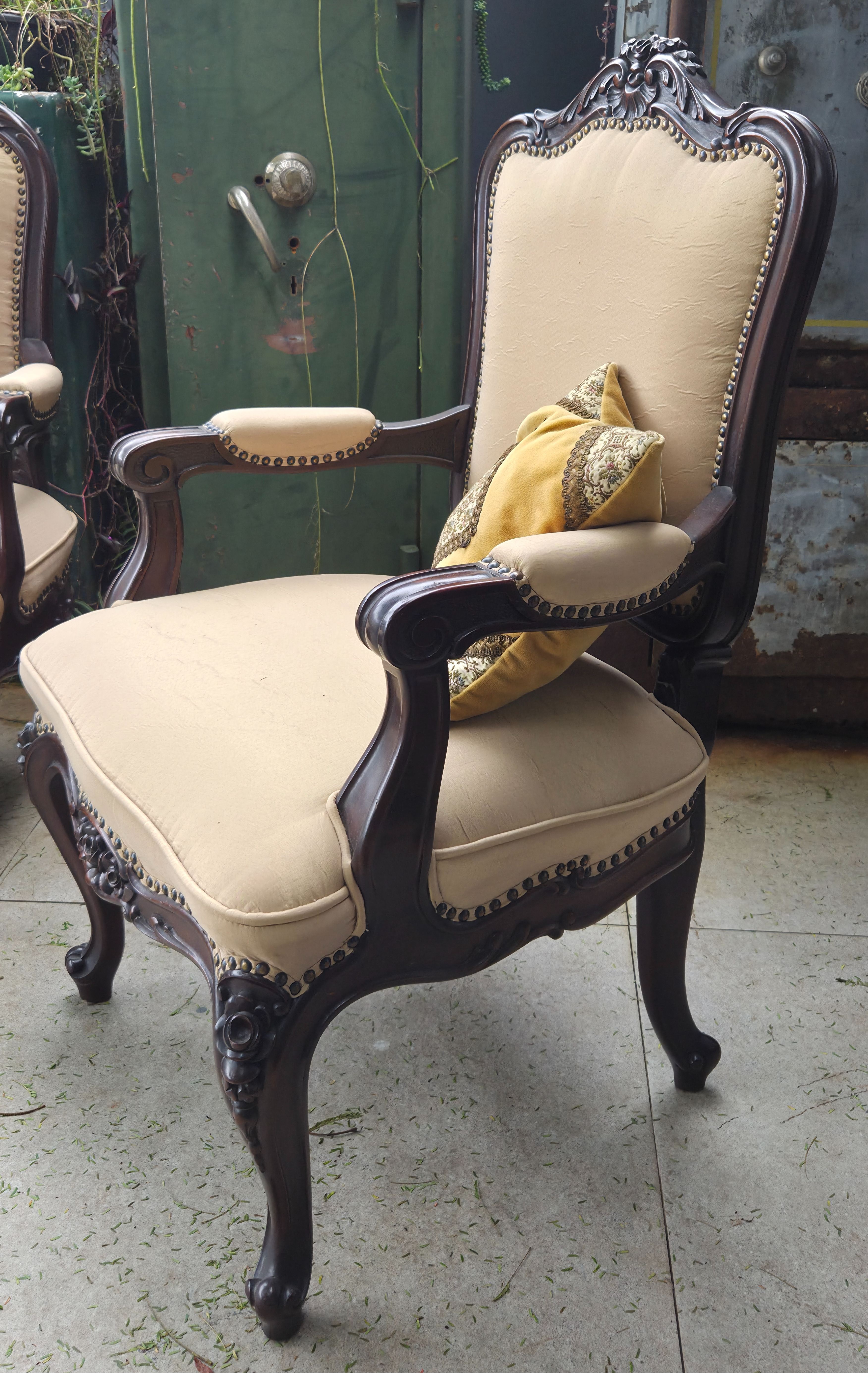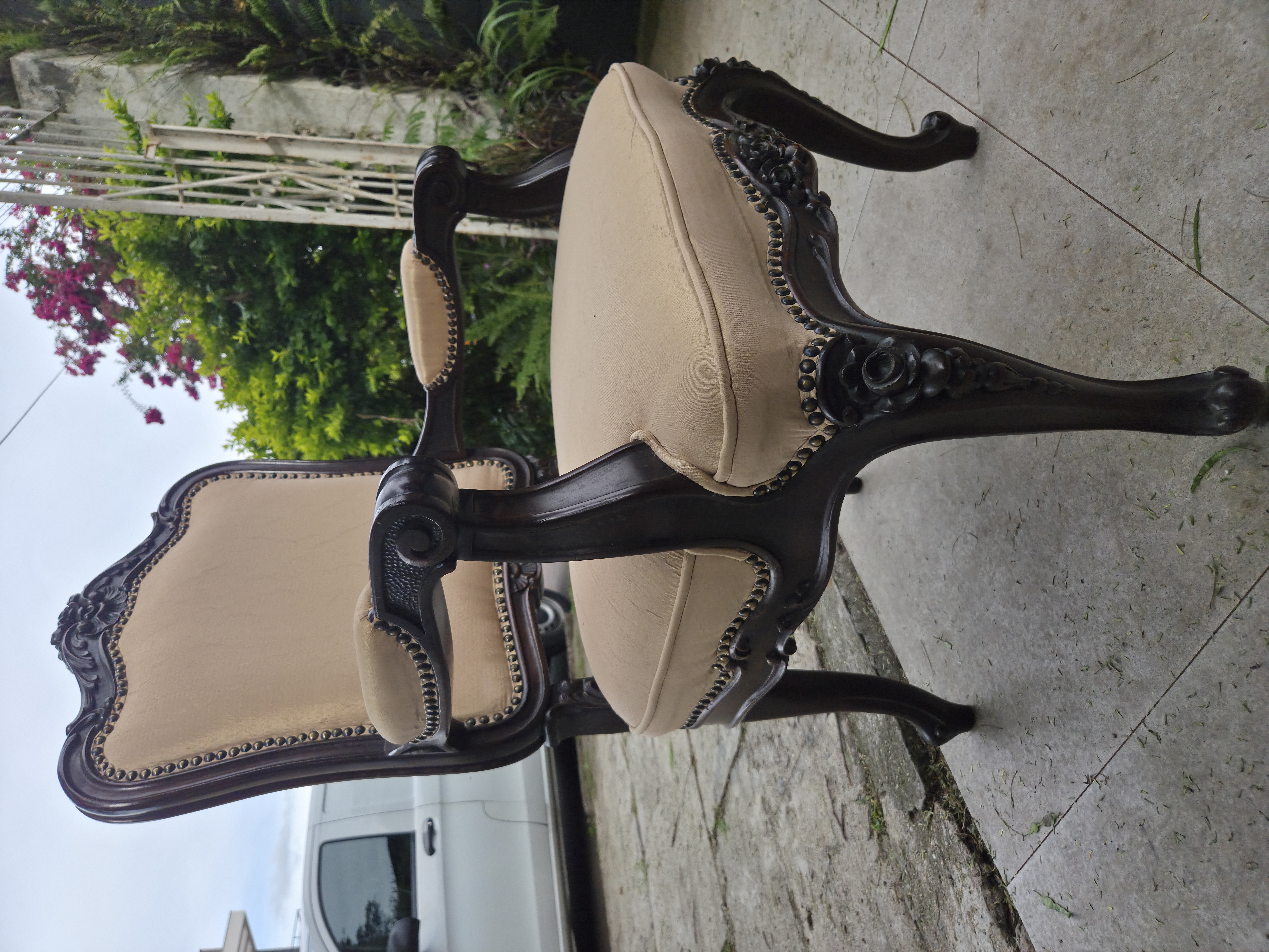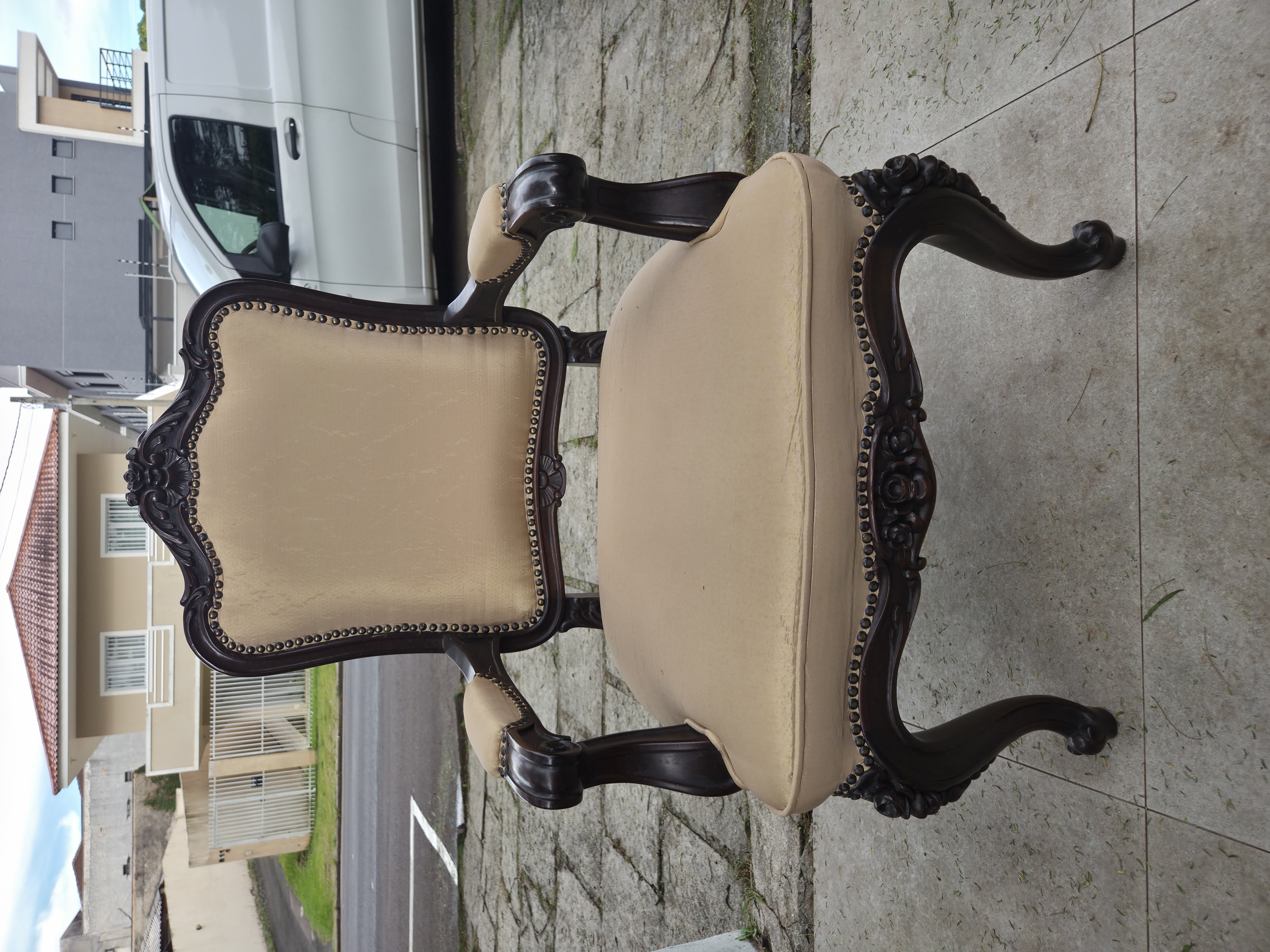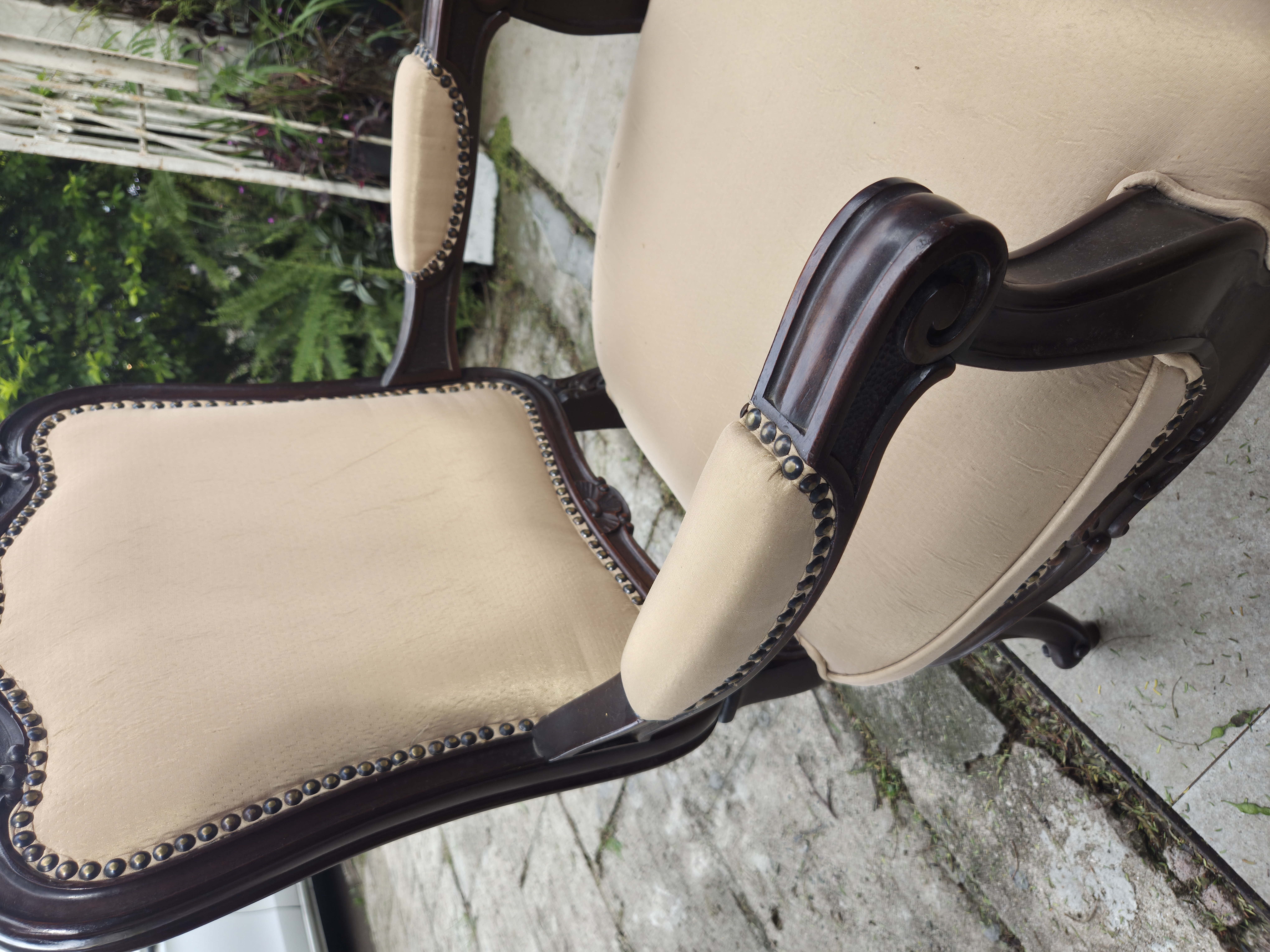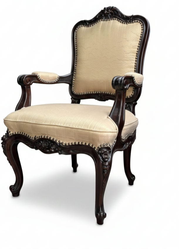 Poltrona Luis XV. Unindo o charme do estilo clássico ao conforto contemporâneo, esta peça é perfeita para transformar salas de estar, quartos ou closets em ambientes dignos da realeza.