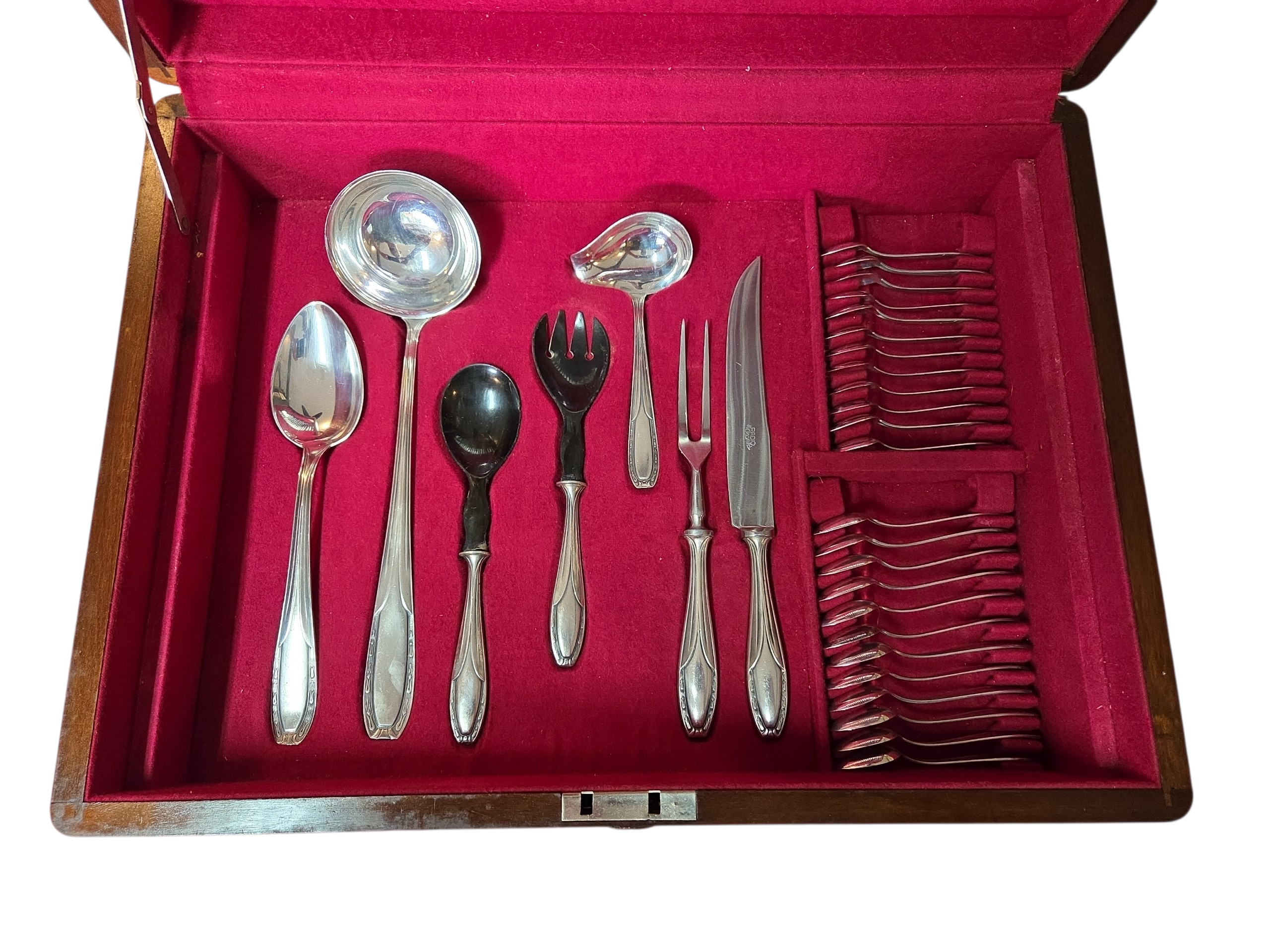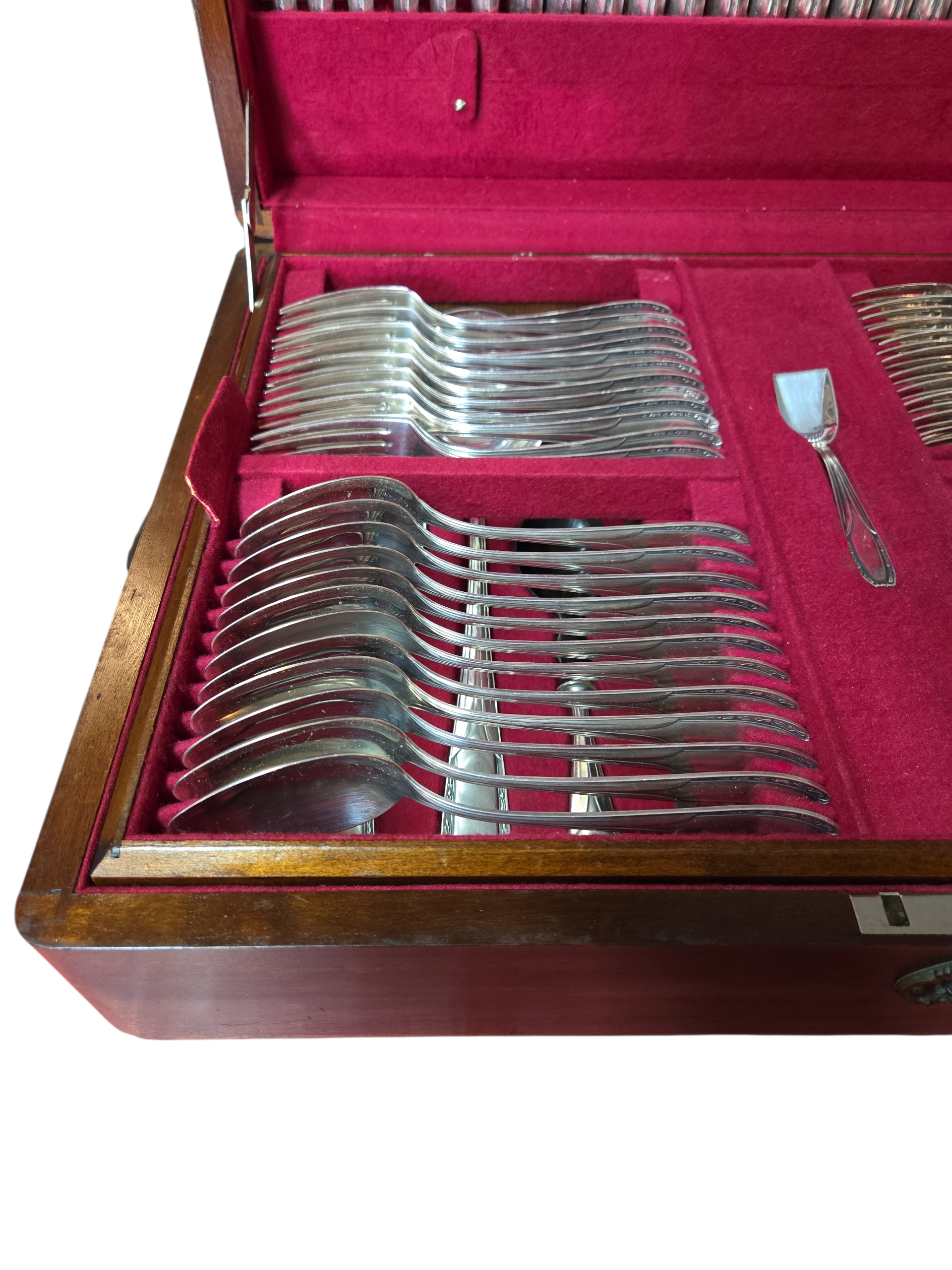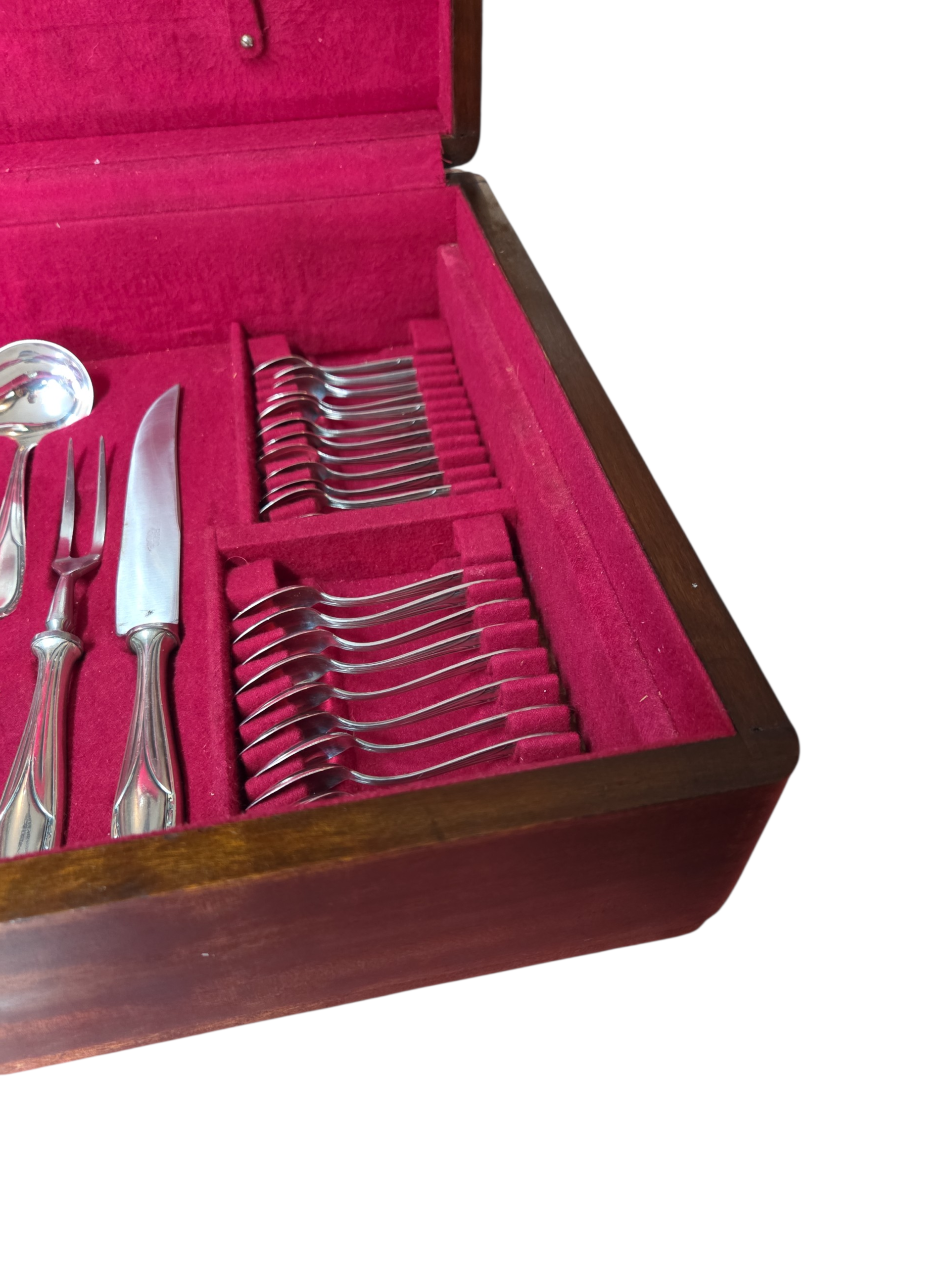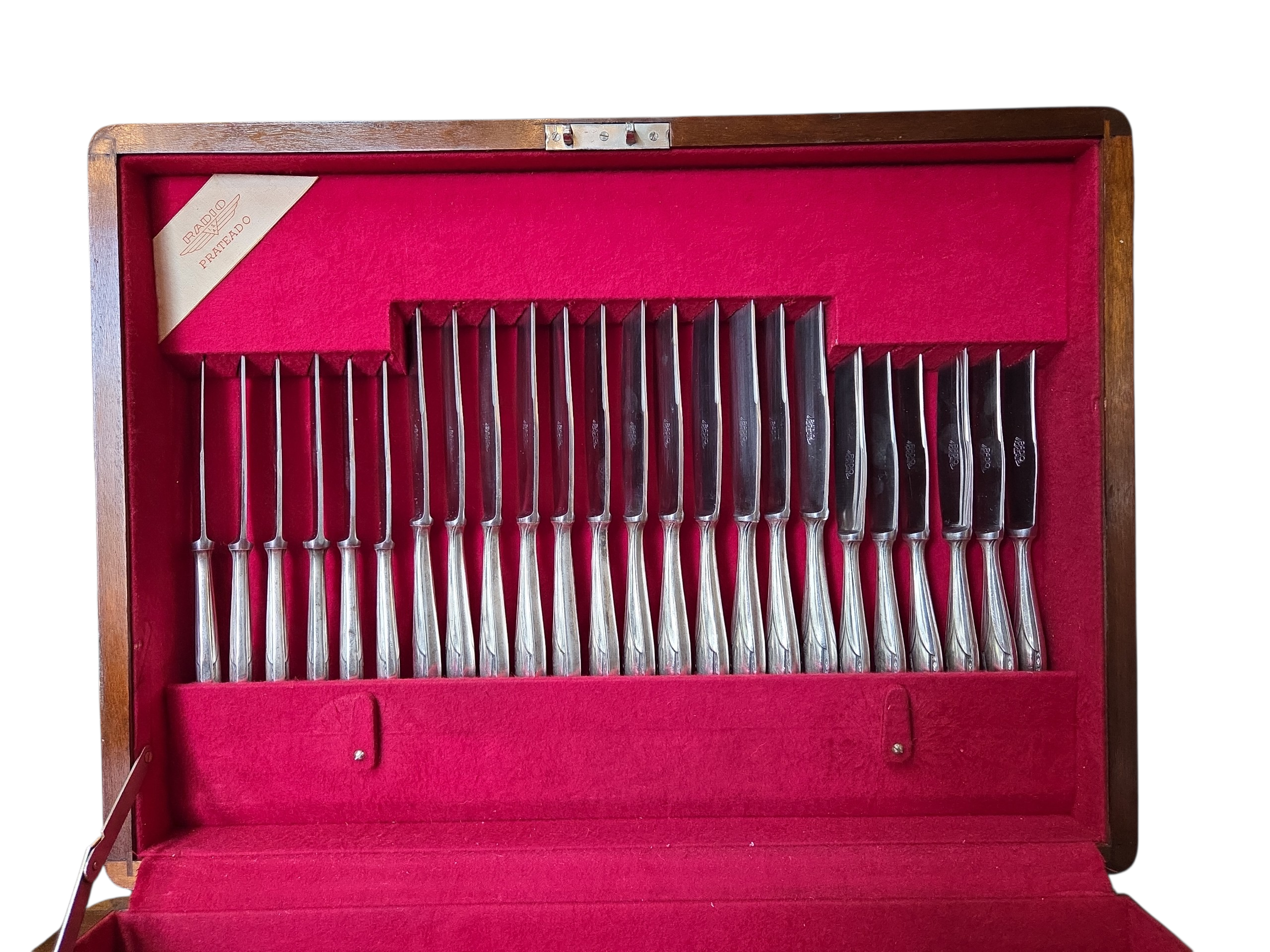 Para quem busca uma mesa posta com presença e história, este faqueiro Modelo Radio é a escolha definitiva. Com 104 peças, ele oferece o serviço completo para até 12 pessoas, garantindo que da entrada ao cafezinho, tudo esteja em perfeita harmonia.