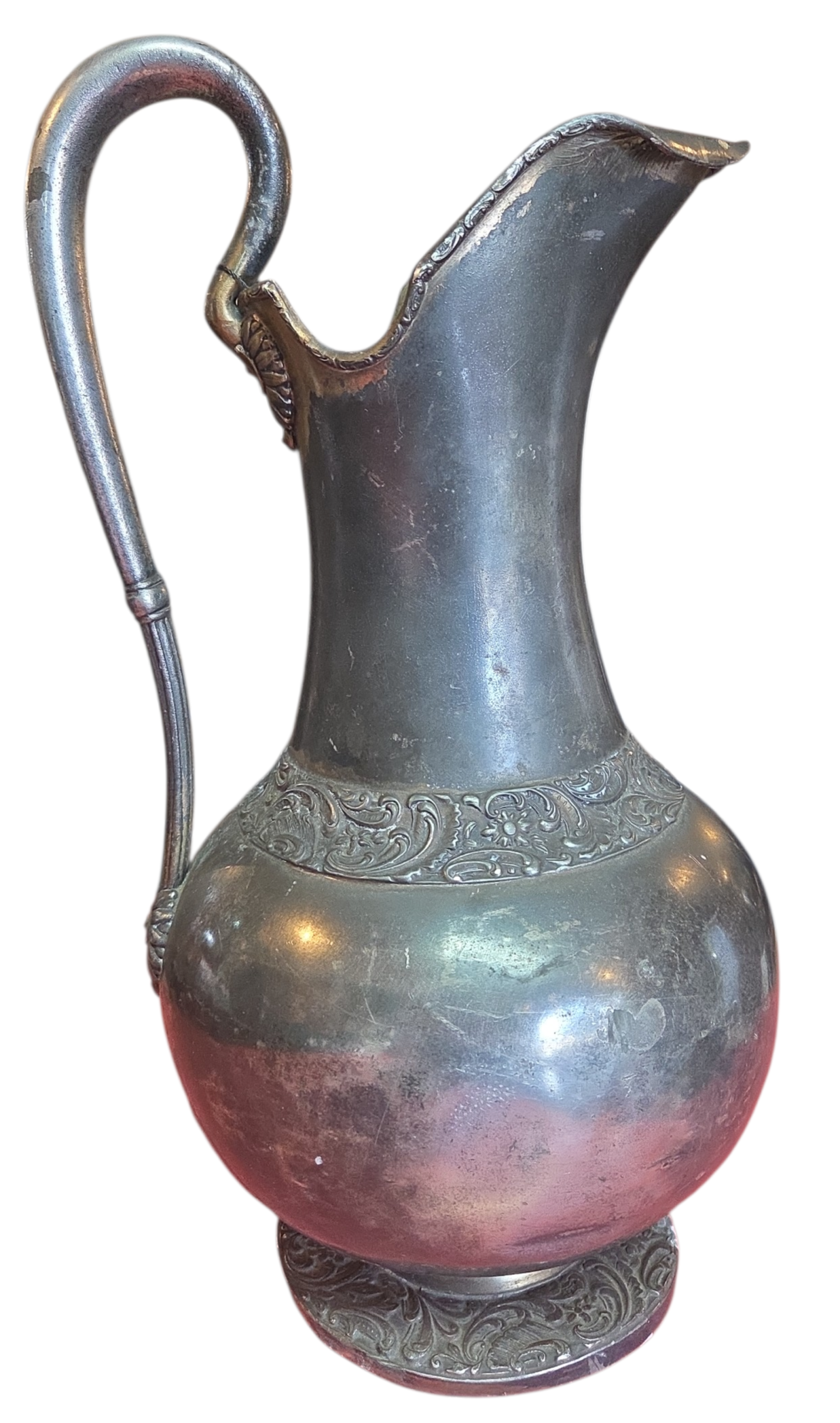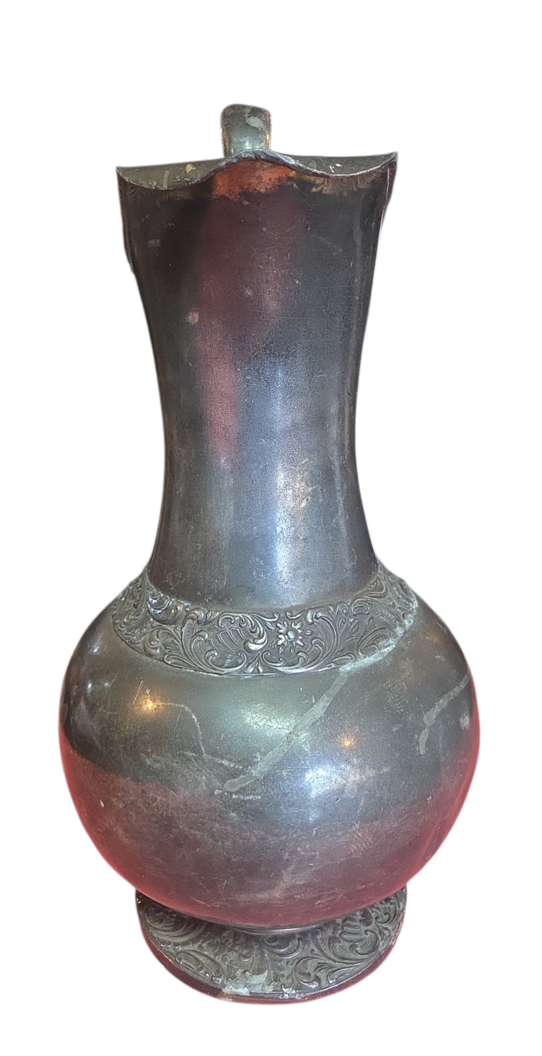 Esta imponente jarra em estanho é um exemplar autêntico do século XIX, apresentando o design clássico e a robustez característica da época. É uma peça que carrega a marca do tempo, ideal para colecionadores de prataria e metais antigos que buscam itens com história e personalidade.