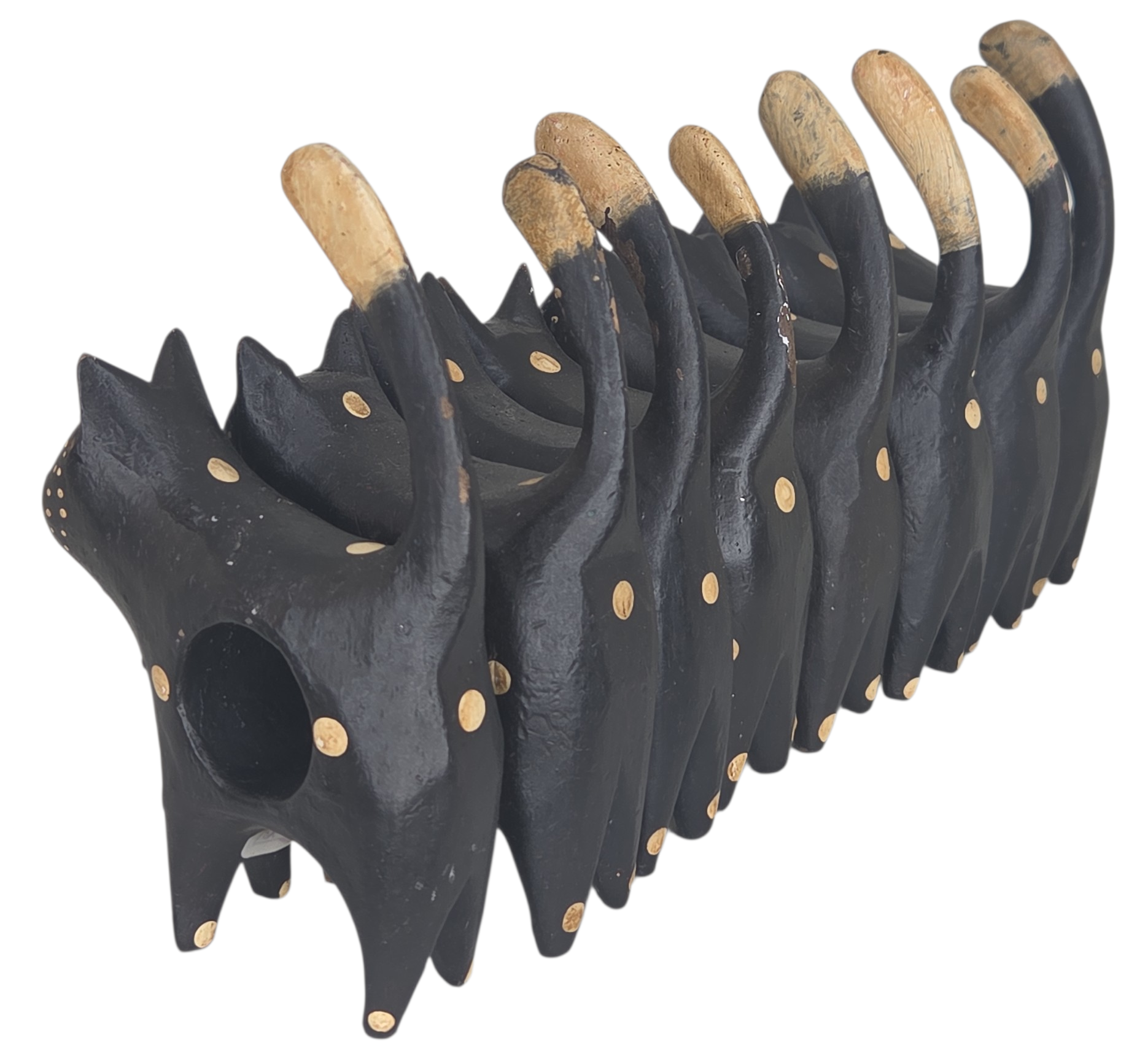 Adicione um toque de personalidade e descontração à sua mesa com este exclusivo conjunto de porta-guardanapos em formato de gatos. Feitos de forma artesanal, eles trazem o estilo da arte popular, sendo perfeitos para quem ama felinos ou busca uma decoração com pegada rústica e criativa.