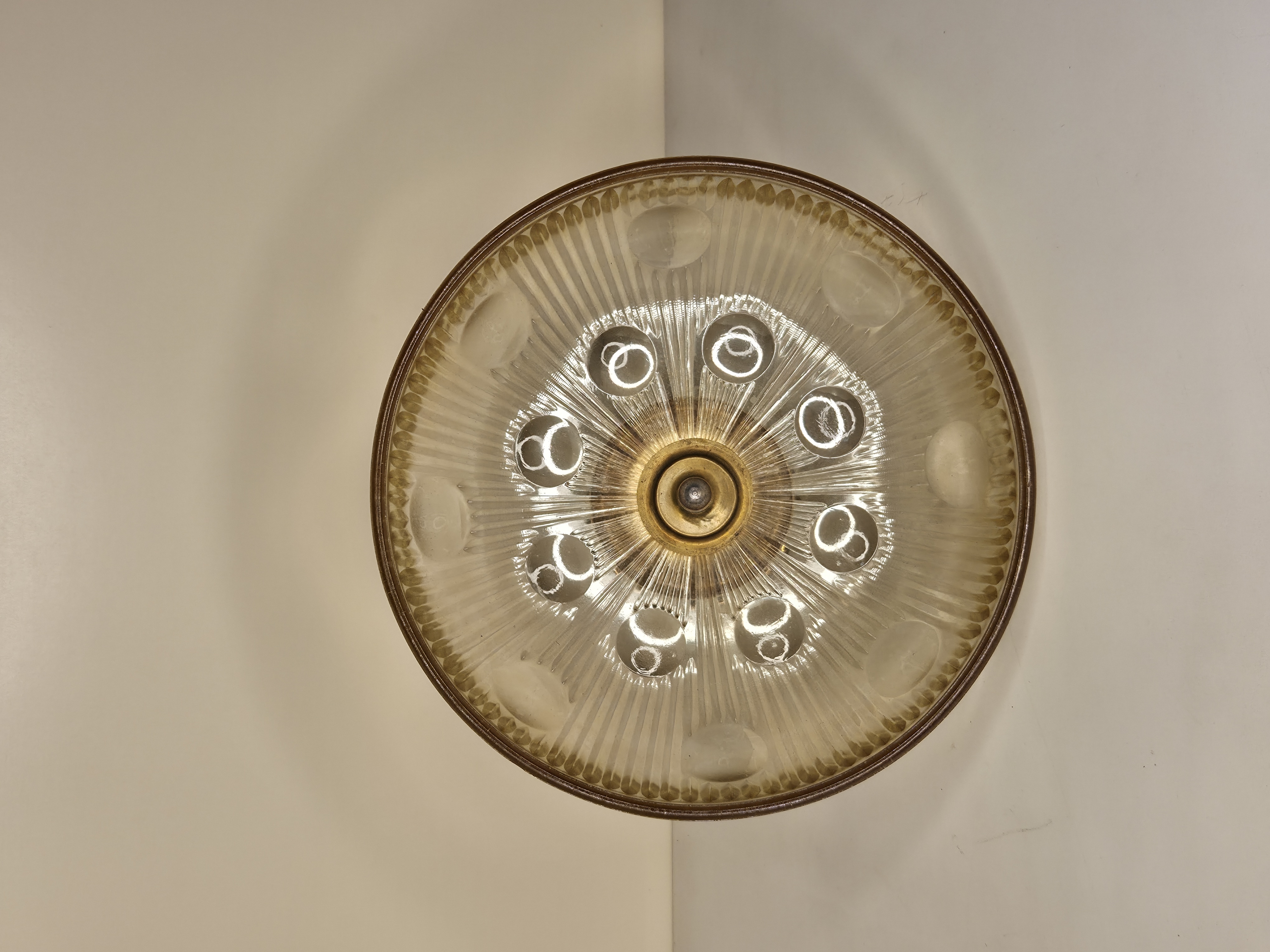 Uma peça de presença que redefine a elegância da sua sala de jantar. Este centro de mesa combina a robustez e o brilho eterno do bronze com a delicadeza translúcida do vidro em tom âmbar. O contraste entre o metal trabalhado e o calor da cor âmbar cria um jogo de luz hipnotizante, tornando-o a peça central perfeita para mesas de madeira nobre ou superfícies espelhadas.