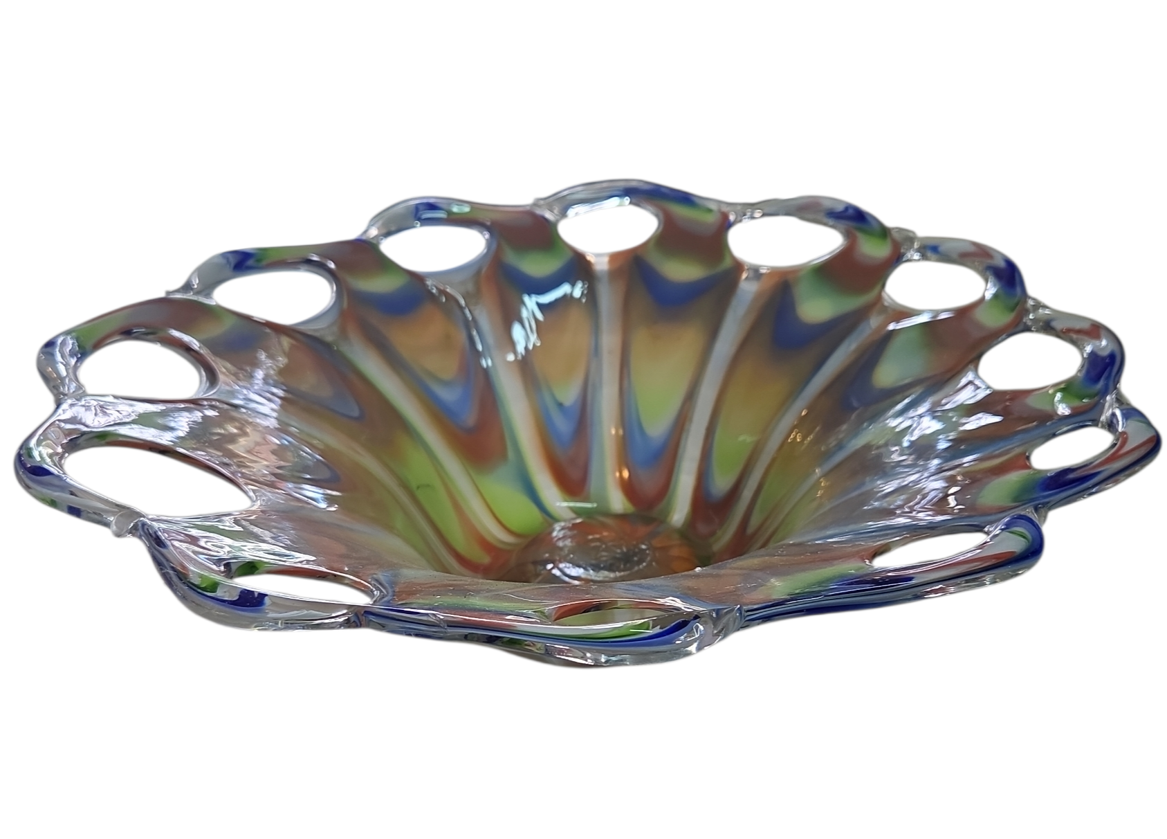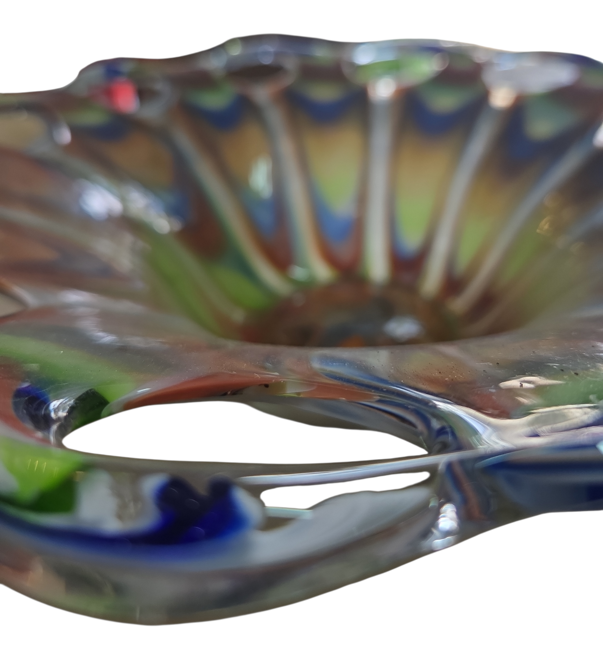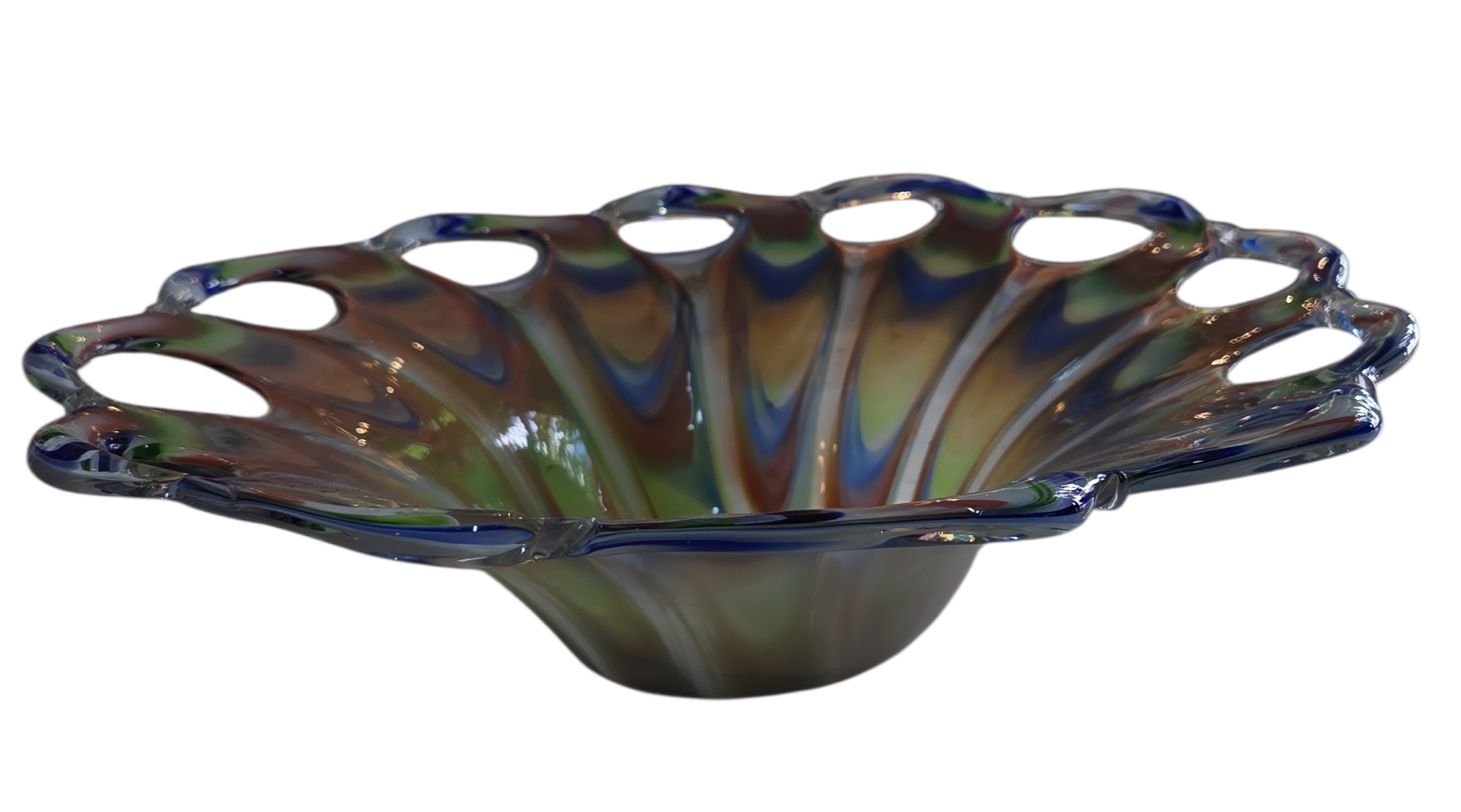 O equilíbrio perfeito entre força e delicadeza. Este centro de mesa em Murano utiliza a técnica de sobreposição de cores, criando um efeito visual de profundidade fascinante. Com linhas fluidas e design contemporâneo, é a peça ideal para decorar aparadores, mesas de centro ou escritórios que prezam pela alta estética e originalidade.