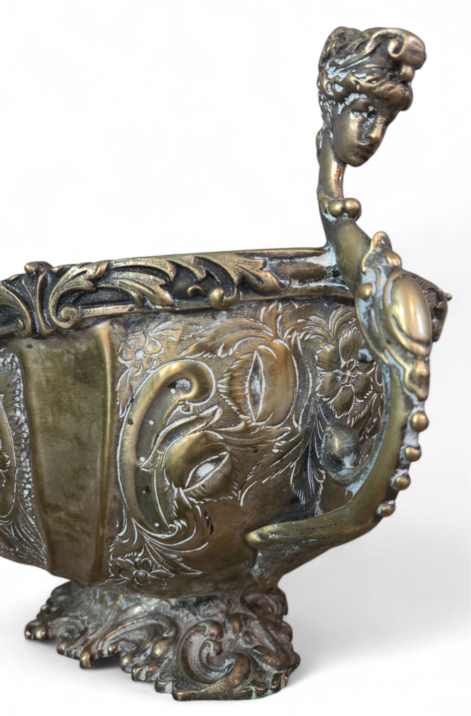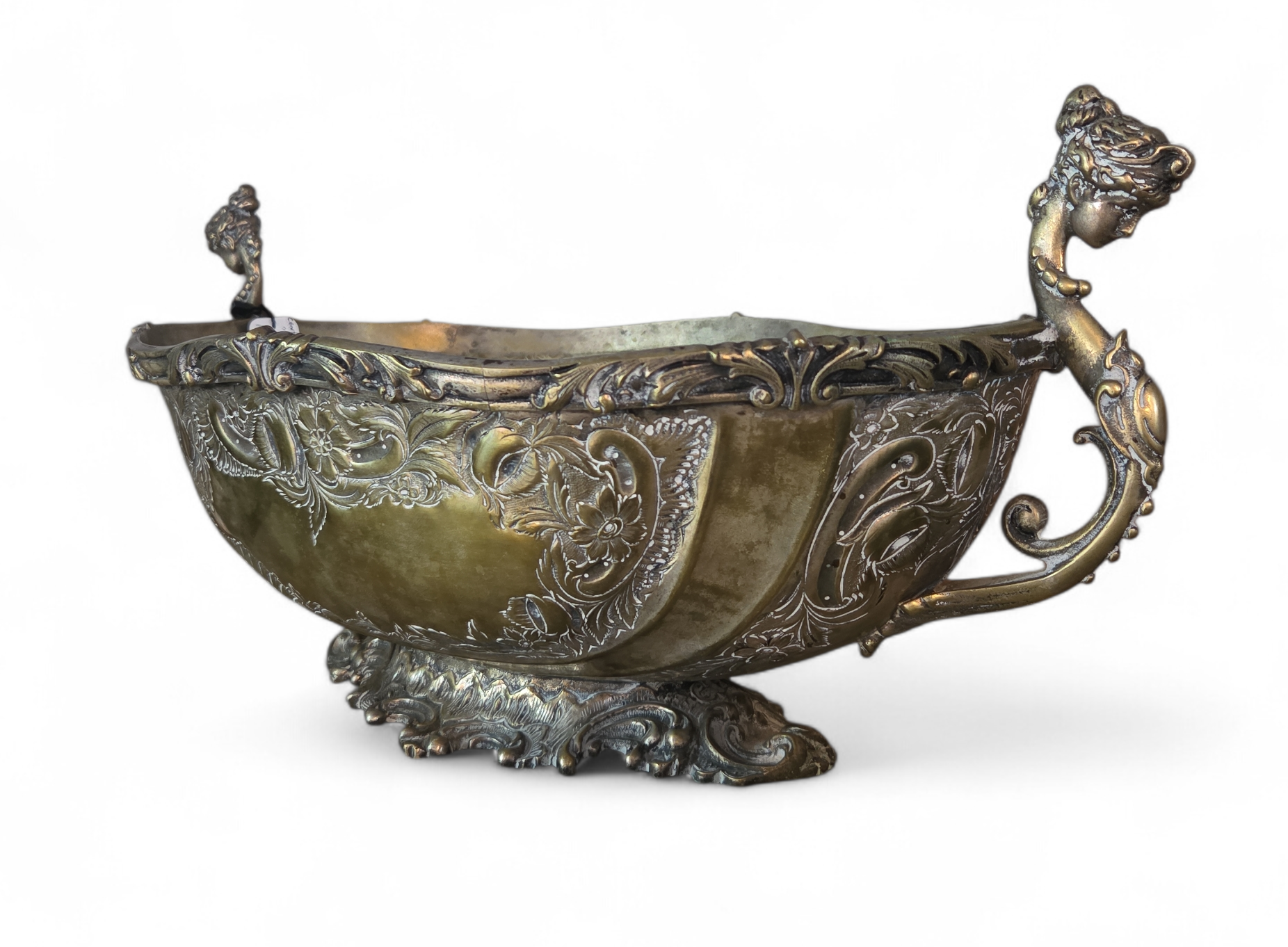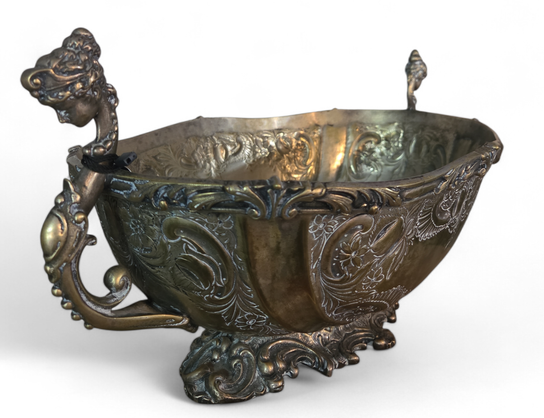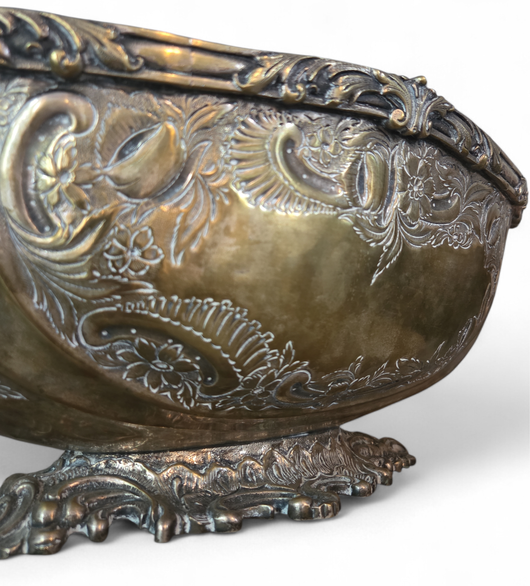 Detentor de uma elegância que atravessa gerações, este centro de mesa português é uma peça centenária de extrema sofisticação. A base em latão garante durabilidade, enquanto o banho de prata confere o brilho clássico das grandes casas europeias.