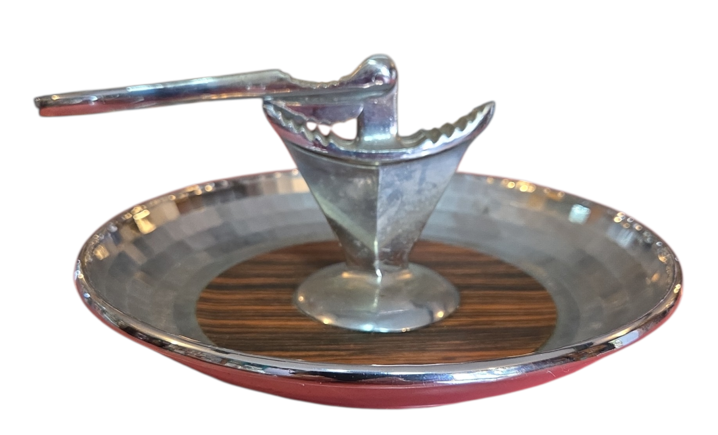 Este quebra-nozes não é apenas uma ferramenta, mas uma peça de decoração que evoca o charme das décadas de 1950 e 1960. Com um design inovador, ele combina funcionalidade com um estilo mid-century modern refinado, ideal para quem aprecia itens de época na composição da mesa de jantar ou buffet.