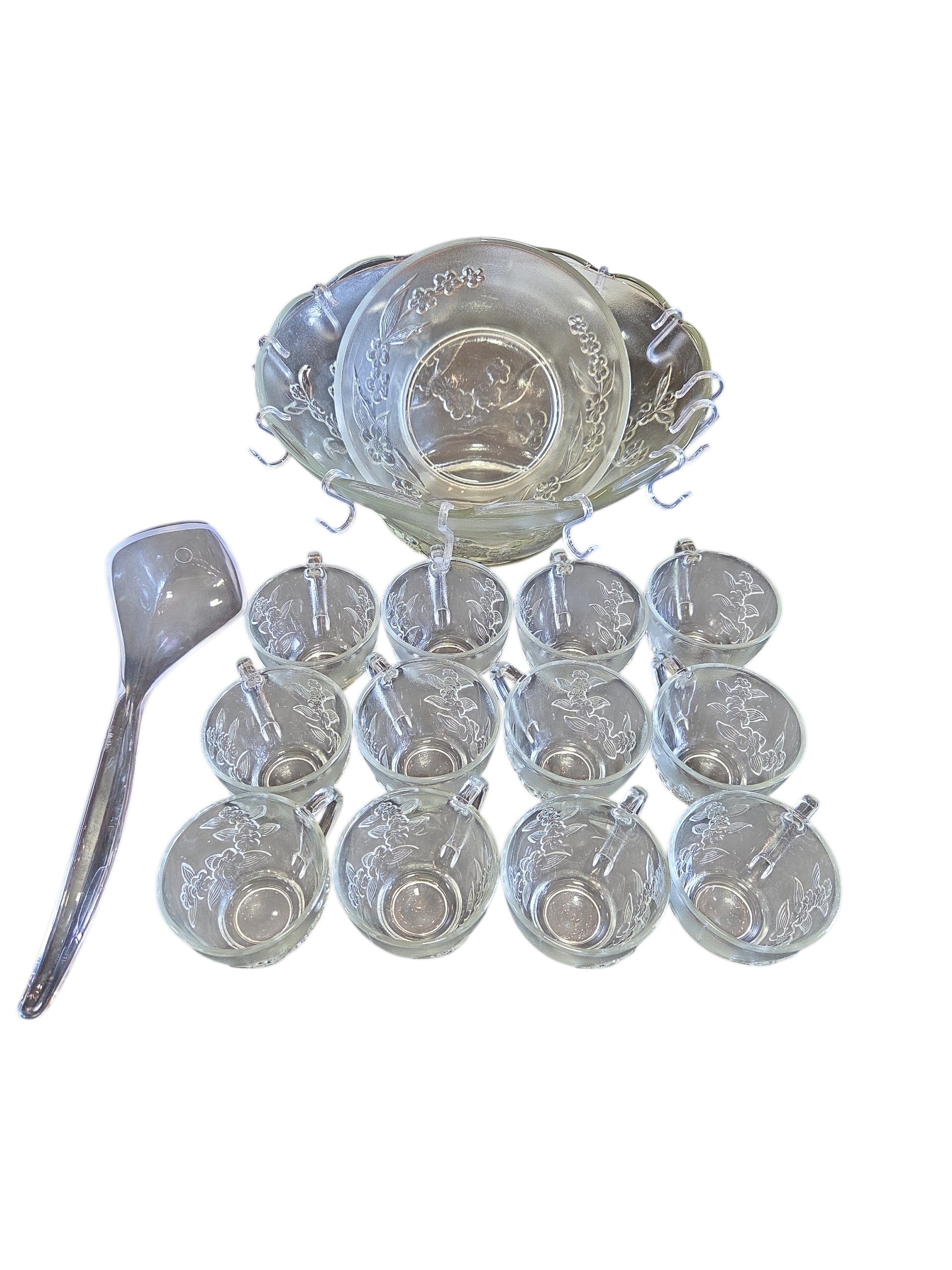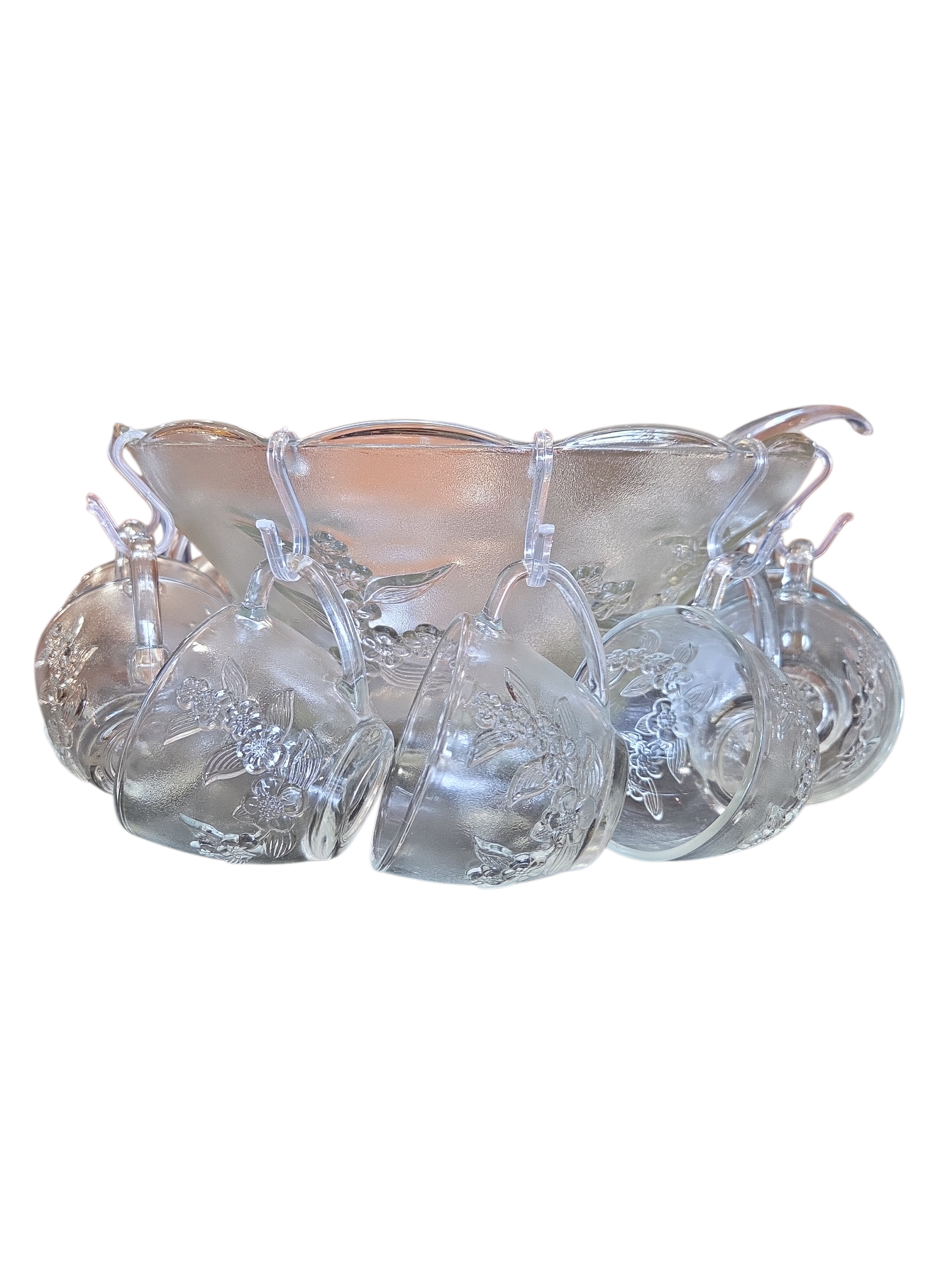 12 Ganchos de Plástico: Utilizados para pendurar os copos na borda da poncheira, facilitando a organização e o serviço.
